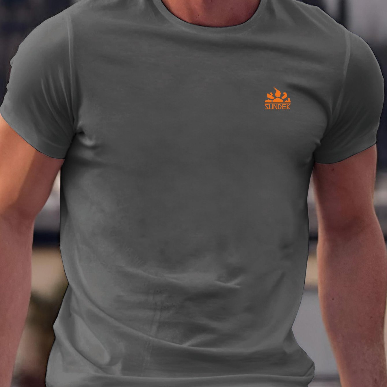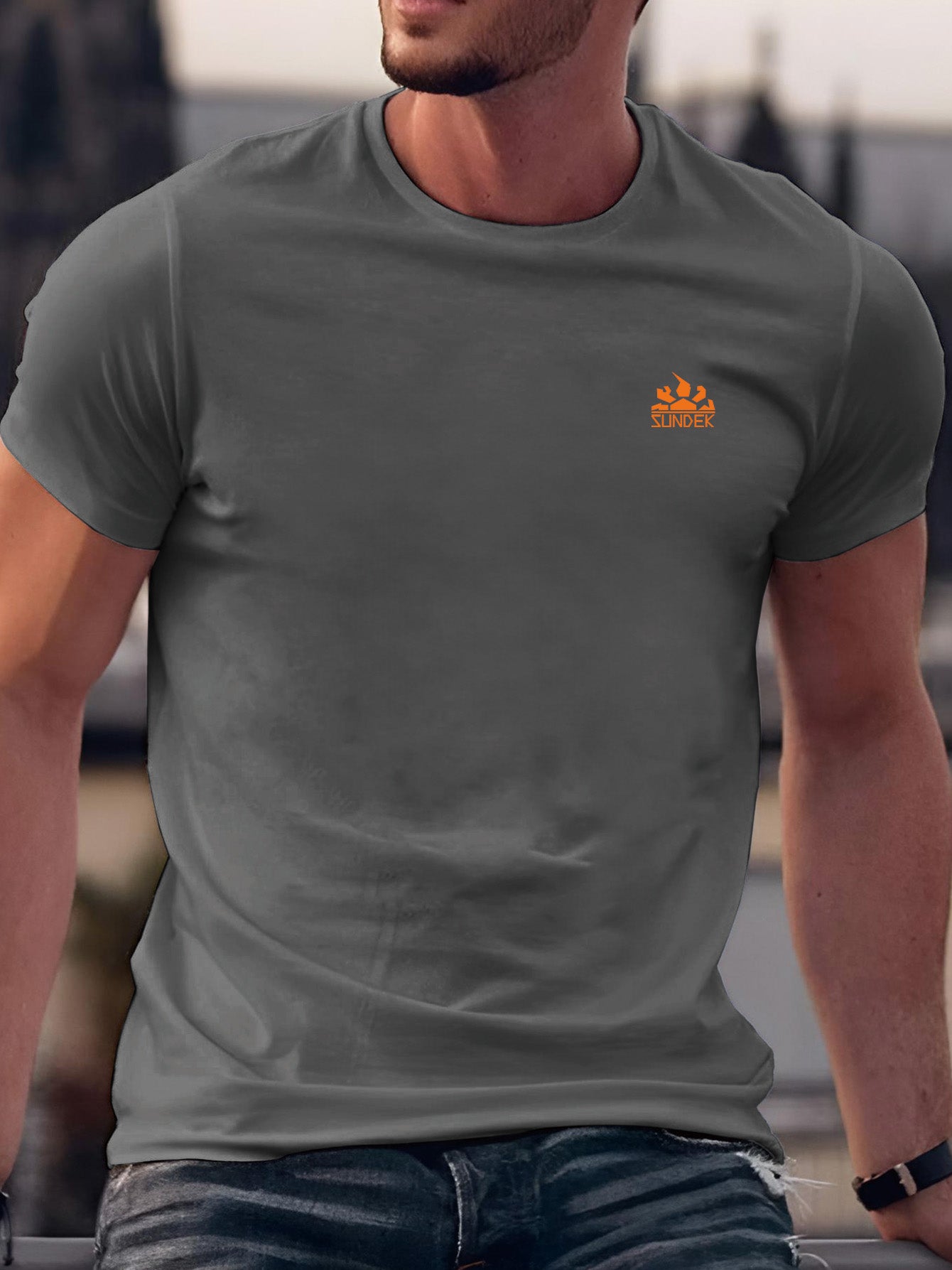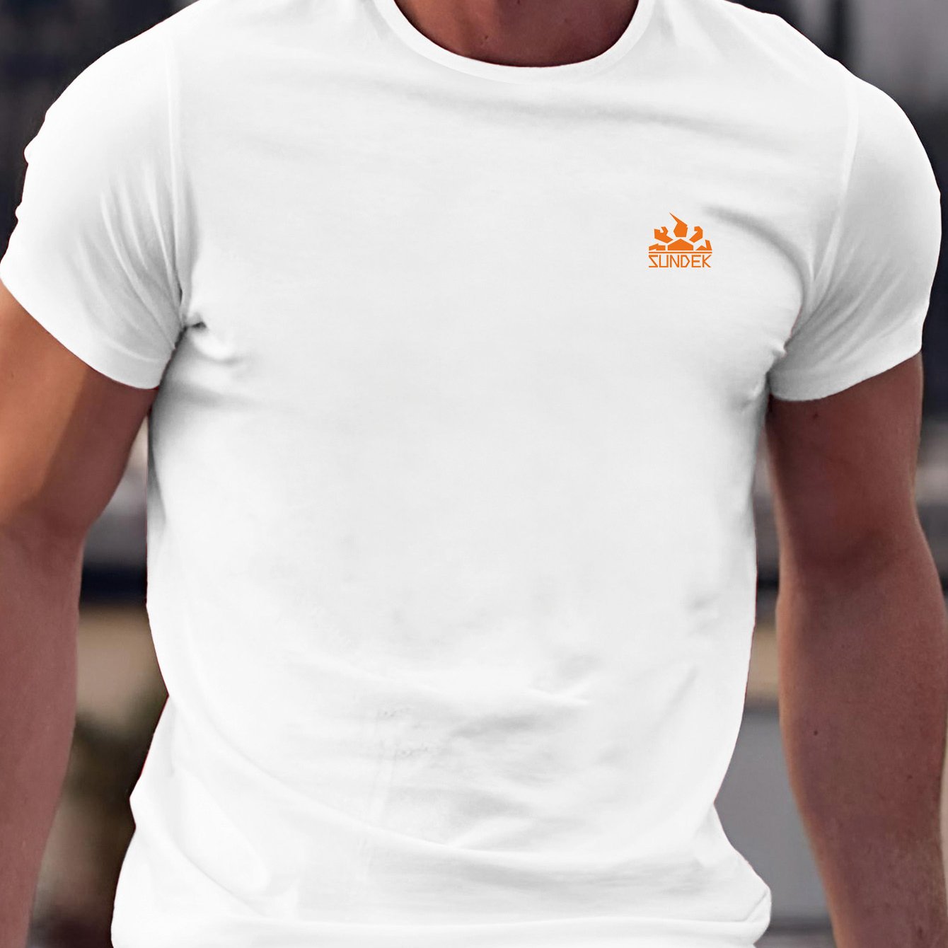 T-shirt nera con stampa del logo "SUNDEK" per uomo - Casual, a maglia larga, maniche corte, scollo rotondo, tessuto in poliestere resistente, per tutti i giorni | Abbigliamento casual alla moda | Abbigliamento confortevole