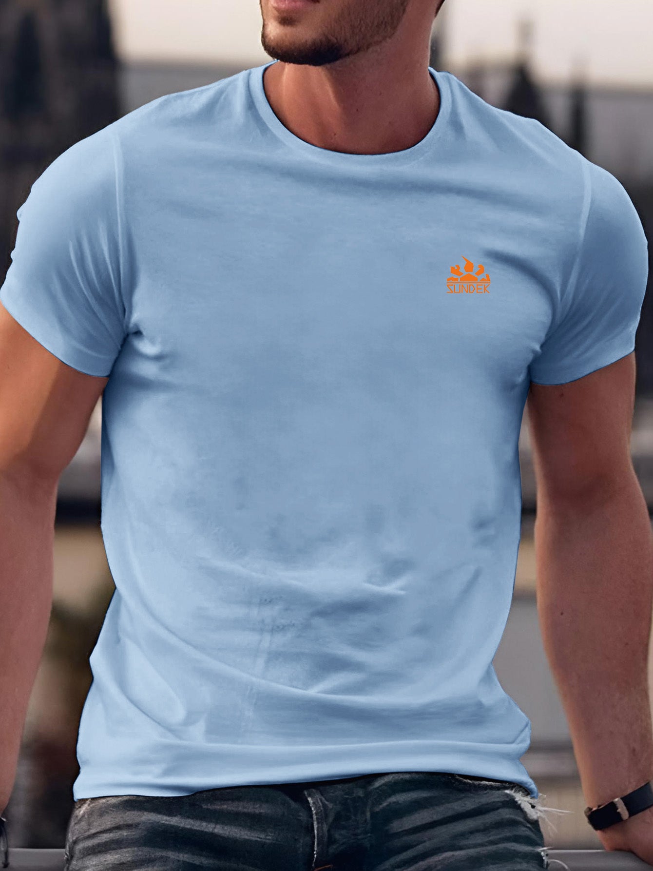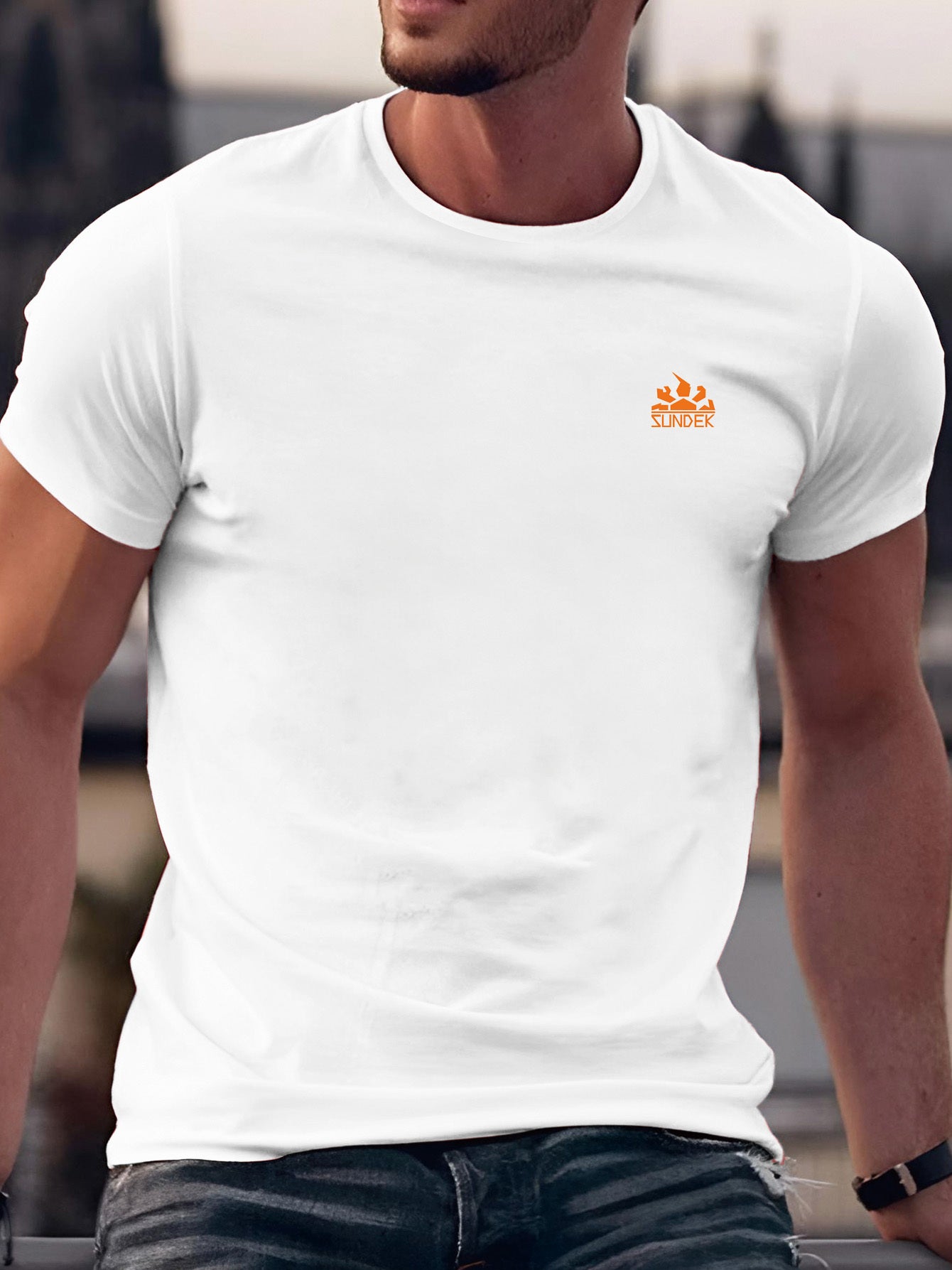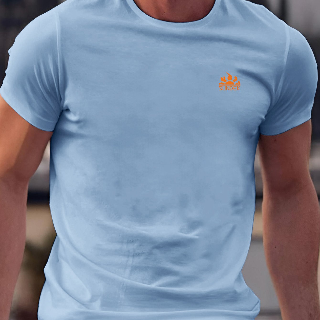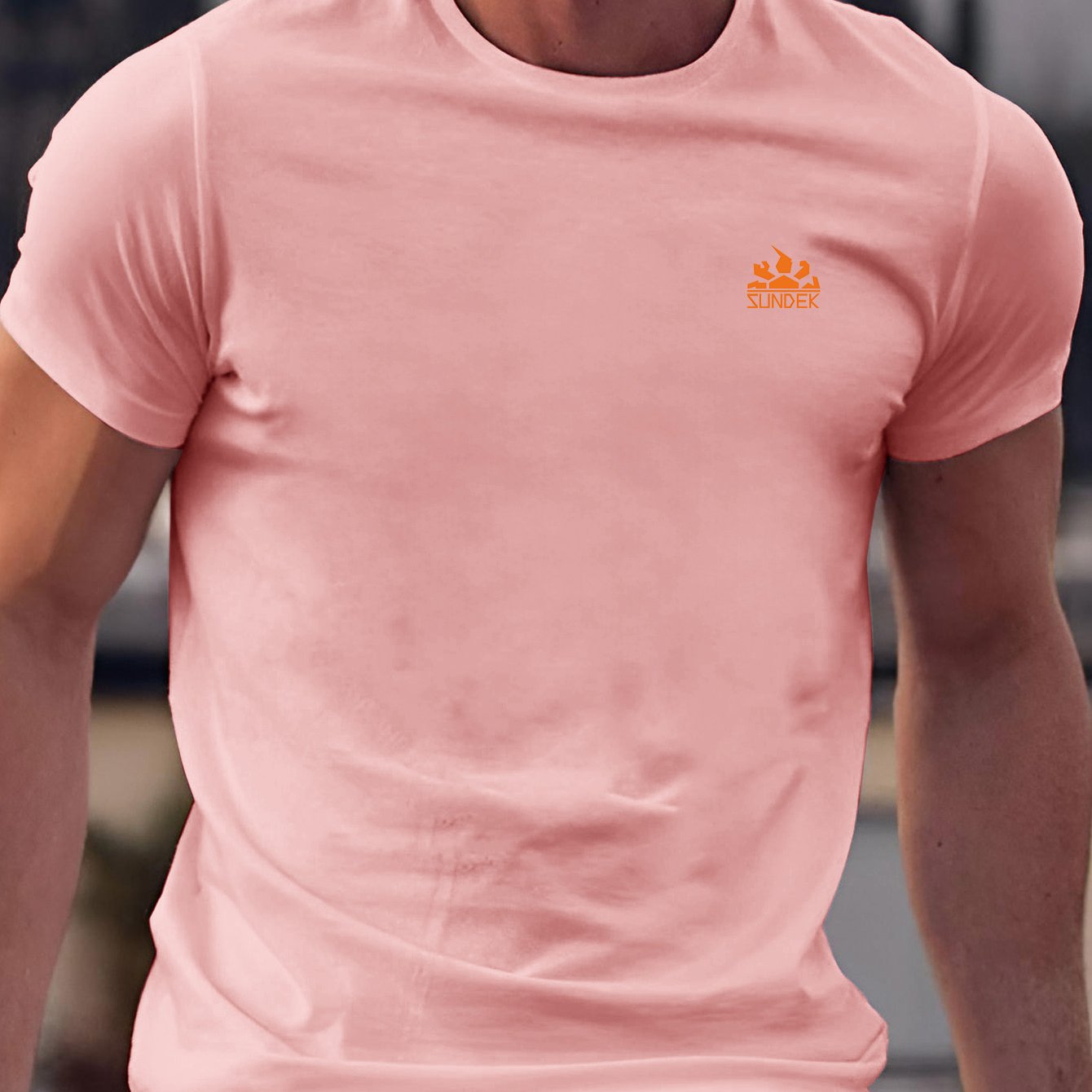 T-shirt nera con stampa del logo "SUNDEK" per uomo - Casual, a maglia larga, maniche corte, scollo rotondo, tessuto in poliestere resistente, per tutti i giorni | Abbigliamento casual alla moda | Abbigliamento confortevole