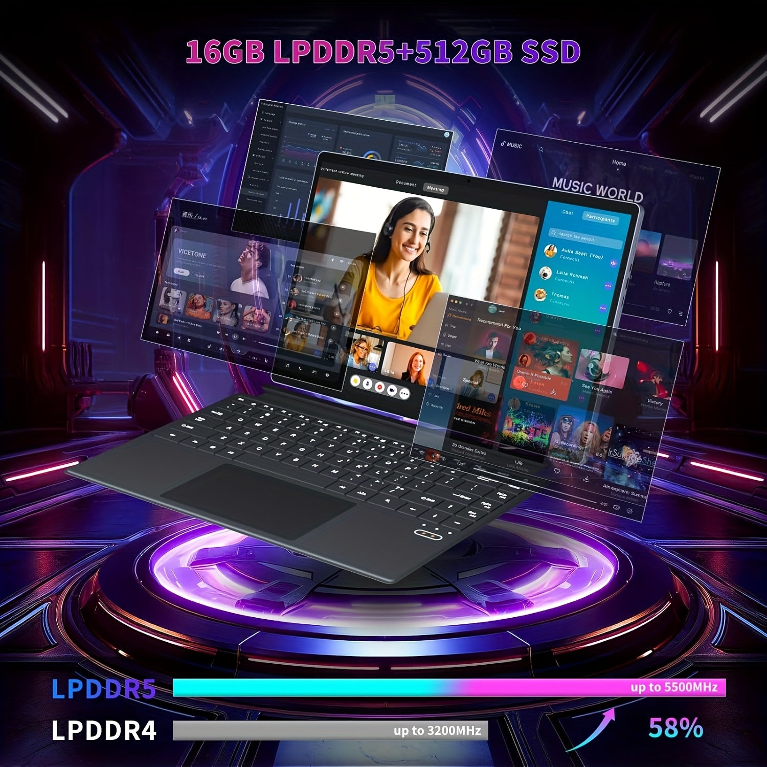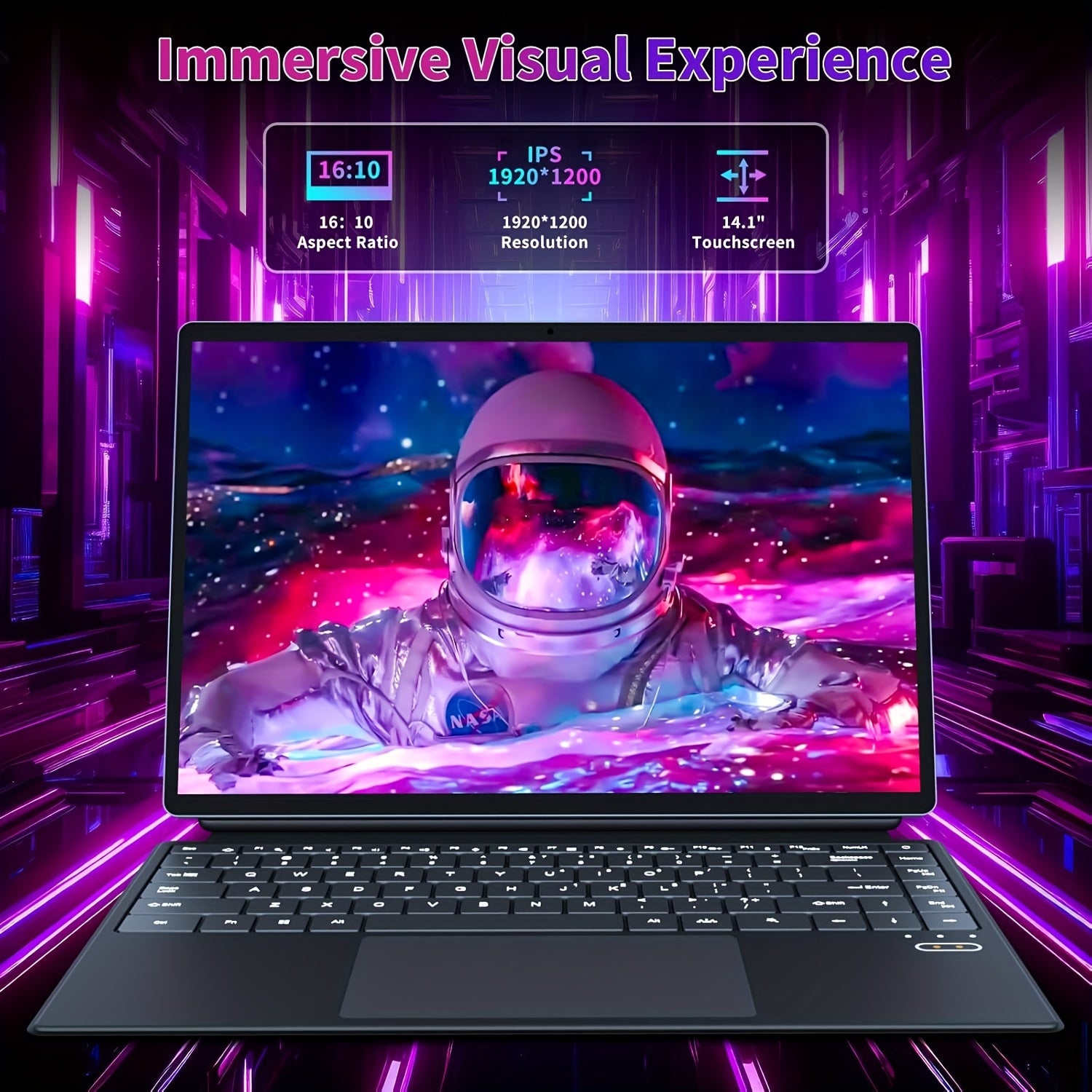 Tablet con Processore N100 da 14 Pollici 2 in 1, Tastiera Retroilluminata e Due Fotocamere per Ufficio - 16GB LPDDR5 RAM, 512GB SSD