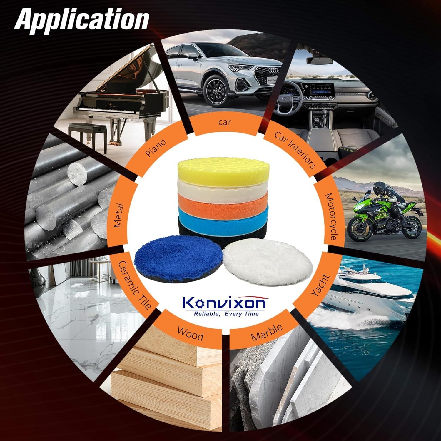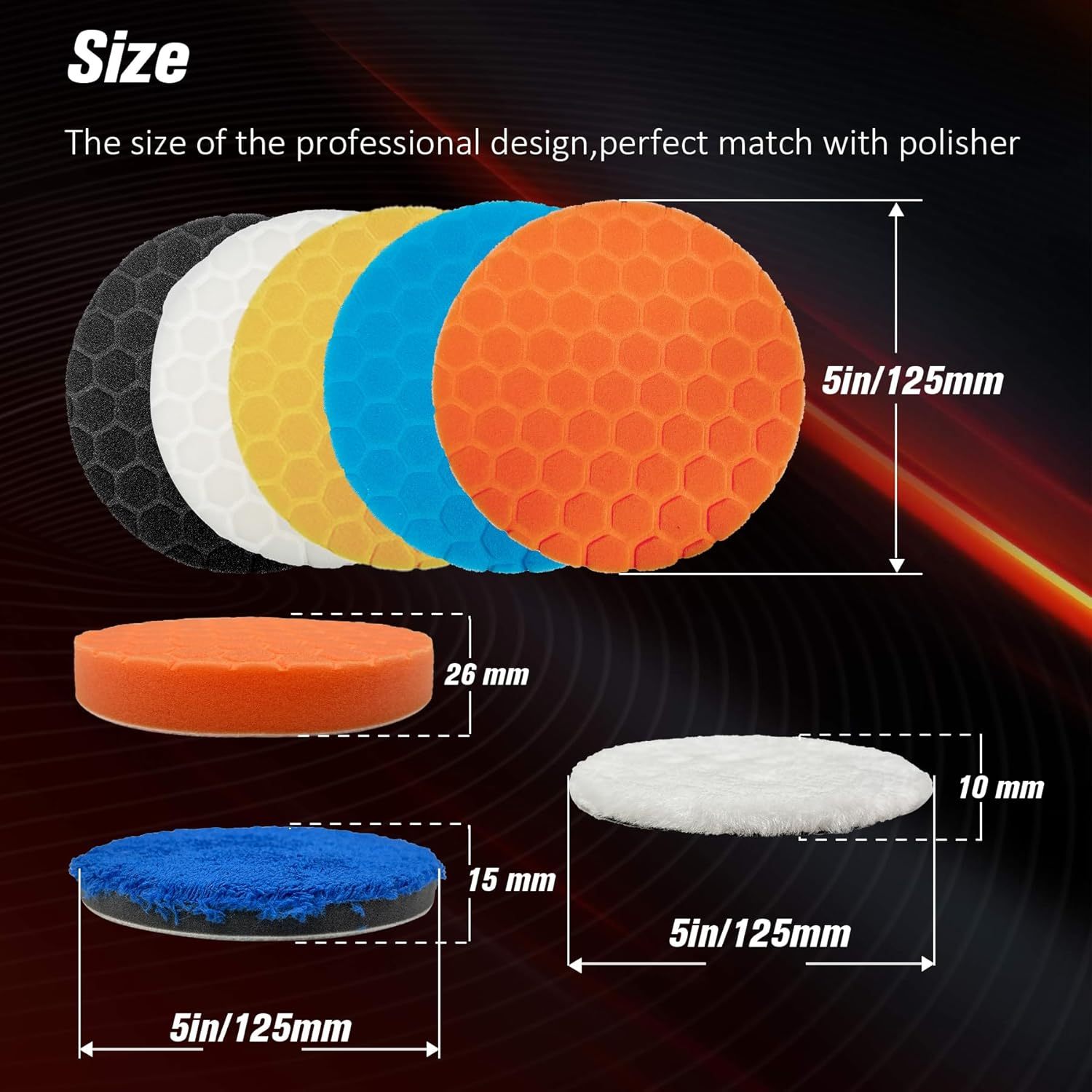 Tampone lucidatura lucidatura 12,7 cm - 7 pezzi 125 mm Faccia per 12,7 cm 125 mm Piastra di supporto, Tampone lucidatura per auto Spugna lucidatura e Kit tampone lucidatura in lana per lucidatura e ceratura auto
