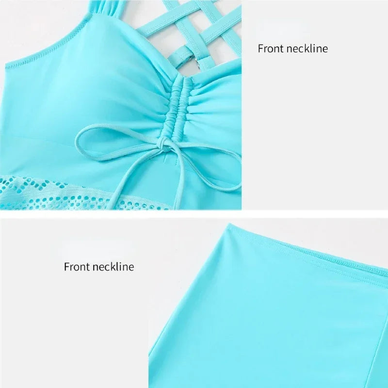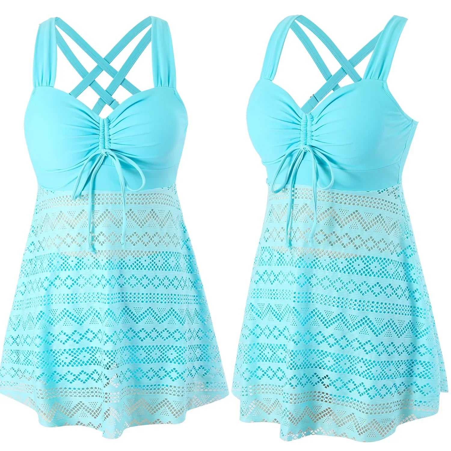 Tankini Swimsuits Women Solid Blue Plus Size Swimdress Large Swimwear Big Biquine Brasileiro Bikini 2024 Mujer Bathing Suit 4XL