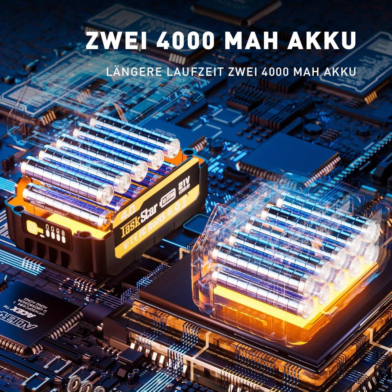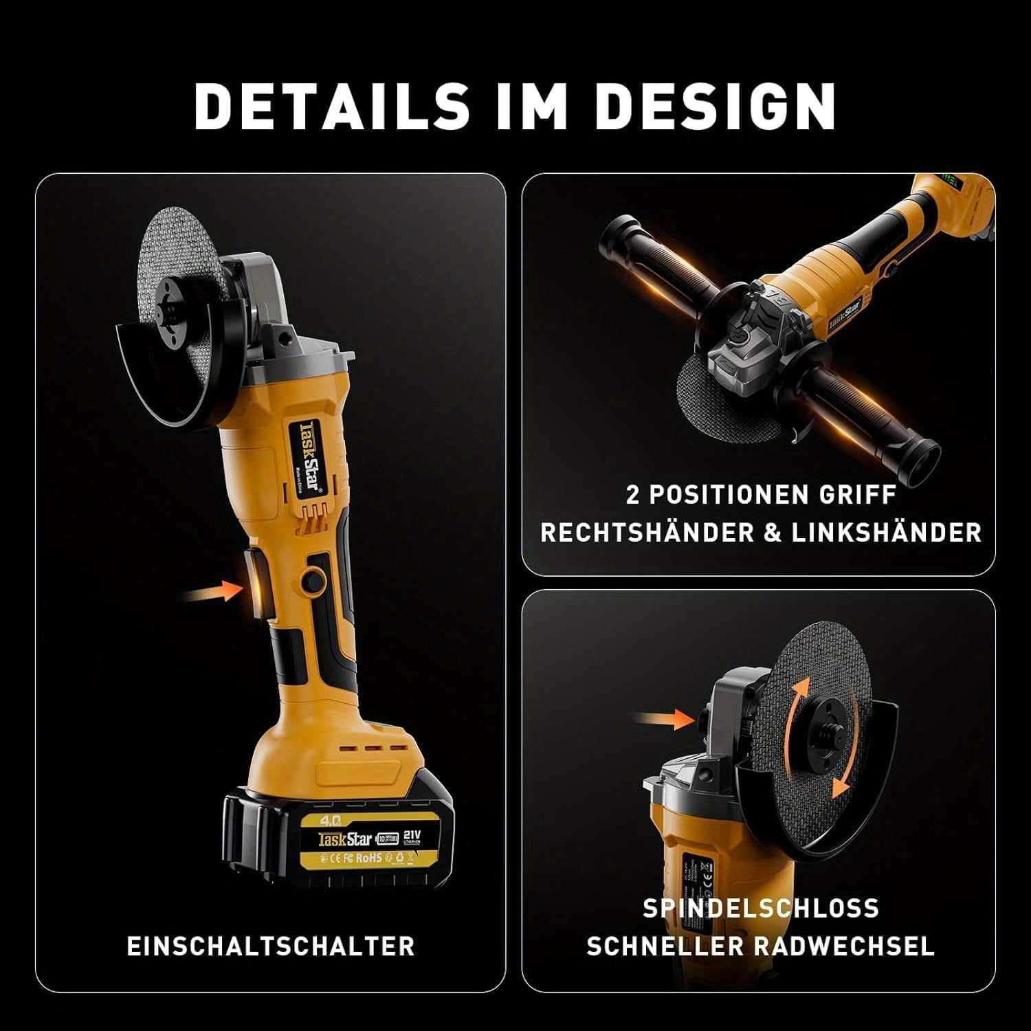 TaskStar Smerigliatrice Angolare Compatibile con Batteria Makita 18V, 9500 giri/min, Smerigliatrice Professionale Senza Spazzole per Levigatura e Lucidatura, con 2 Batterie da 4000mAh, Lunga Durata