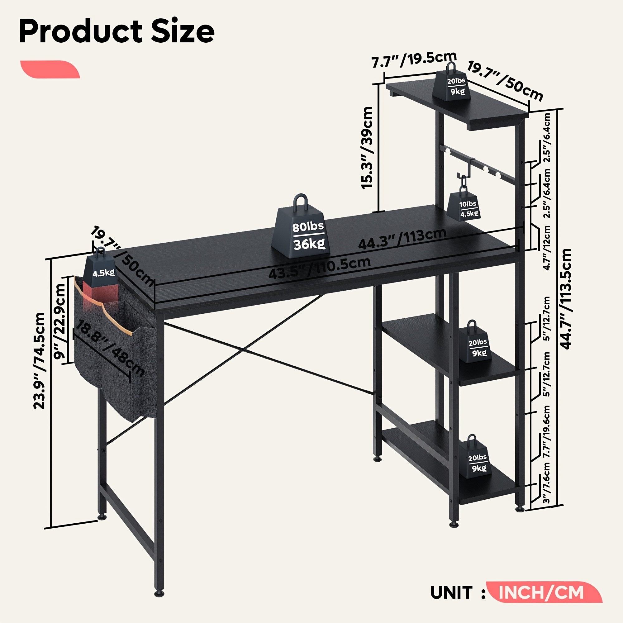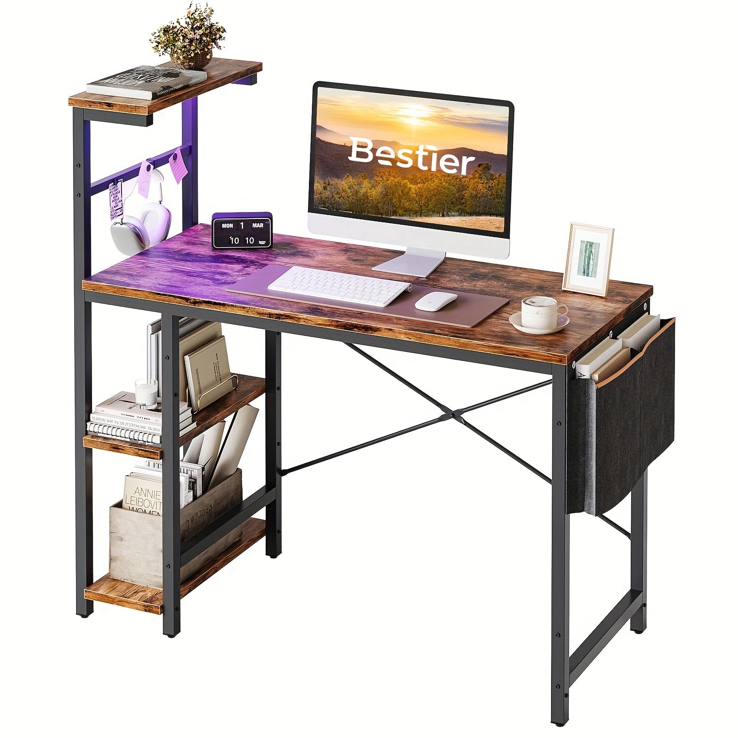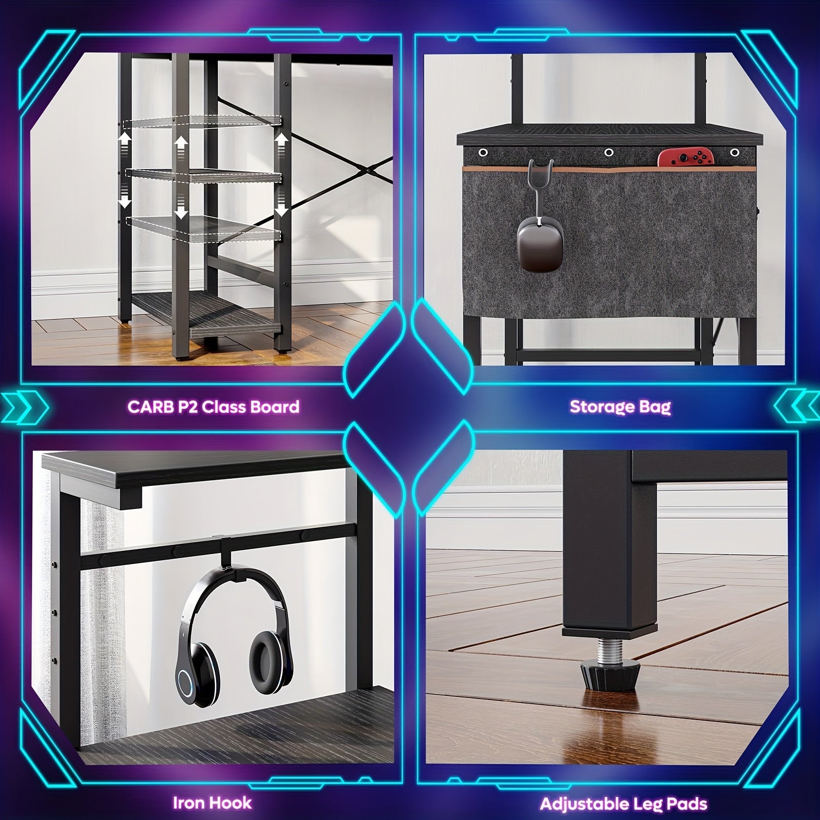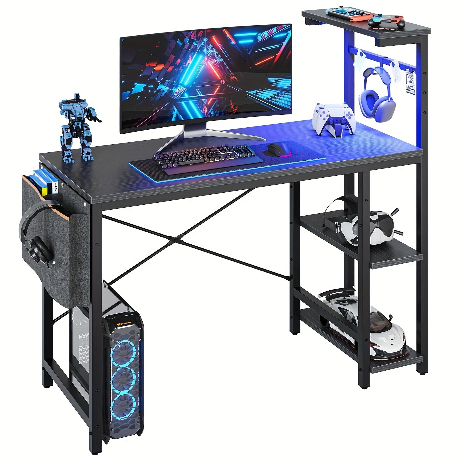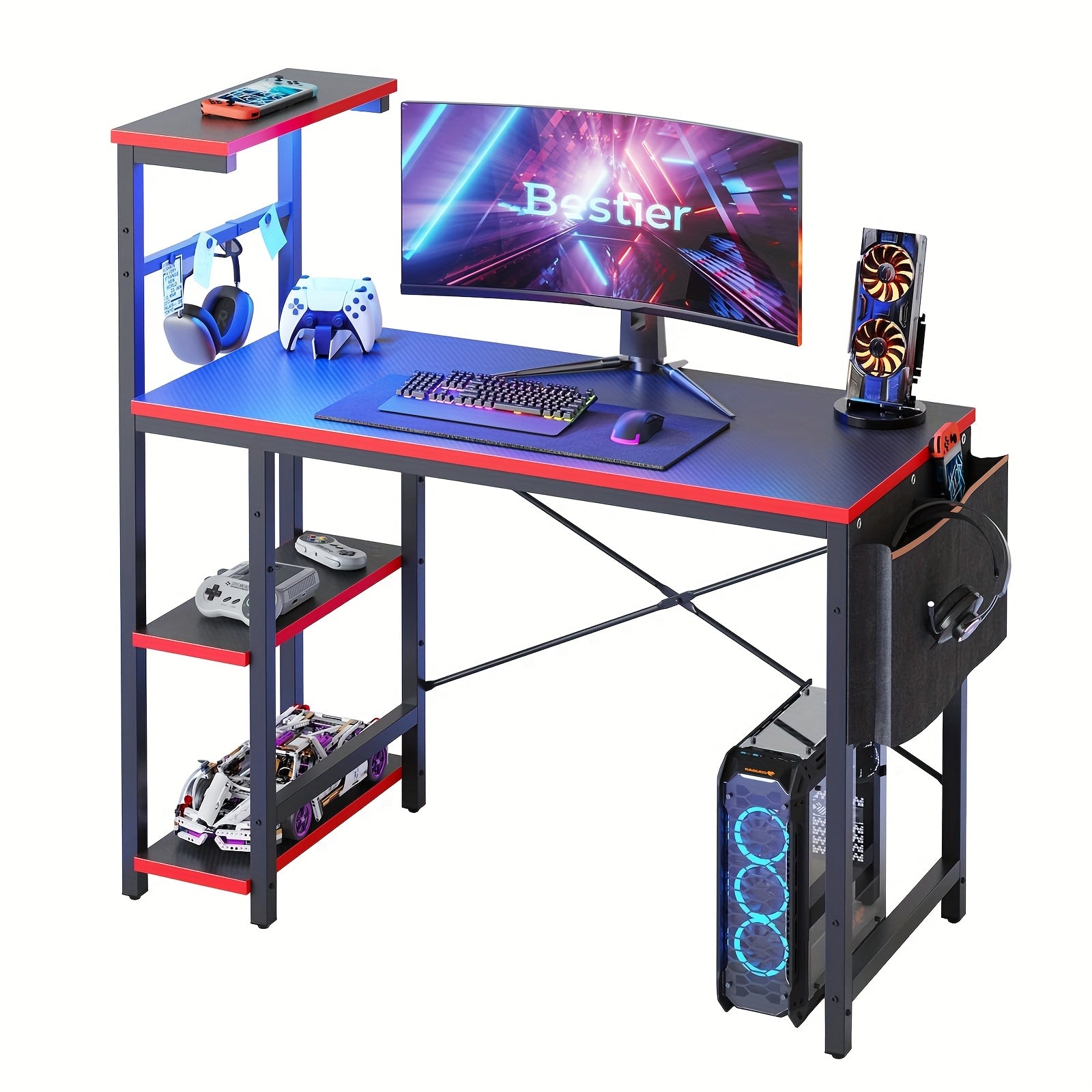 Tavolo da gaming con ripiano, scrivania per computer 113×113×50 cm con gancio per cuffie, adatta per ufficio e piccoli spazi