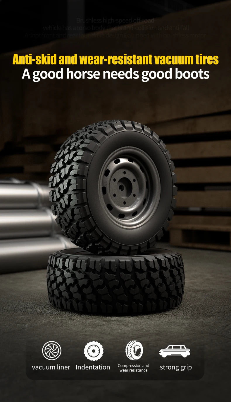 3.Quattro ruote motrici: assorbimento degli urti a molla verticale anteriore e posteriore, sistema di sospensione indipendente a doppio braccio oscillante;