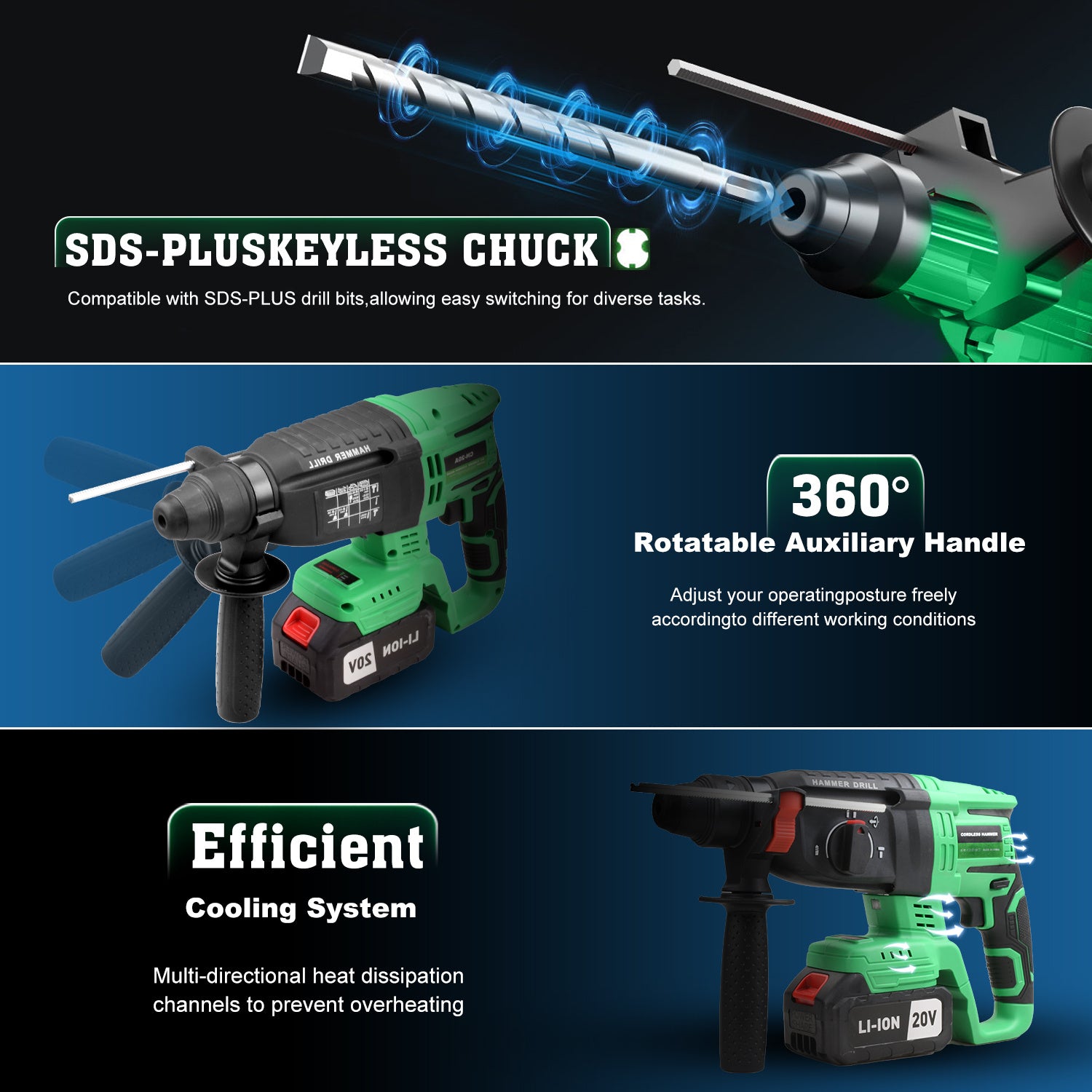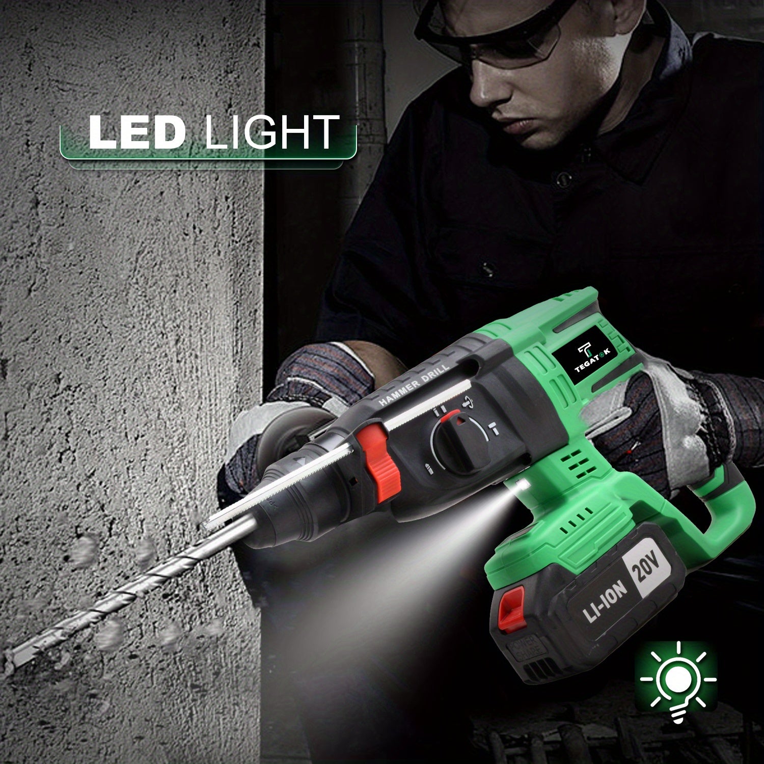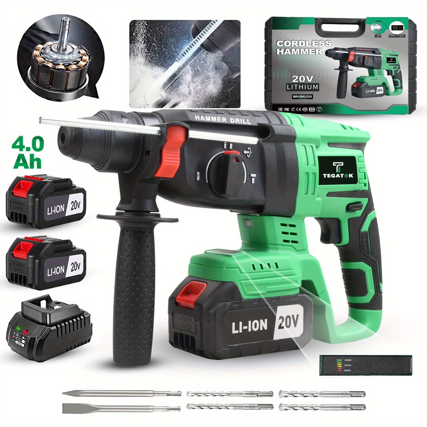 Tegatok Trapano Rotante Senza Spazzole 20V Motore Senza Spazzole Senza Fili con Batteria Al Litio da 4 0Ah Caricabatterie Rapido Manico Ausiliario per Progetti di Costruzione e Casa