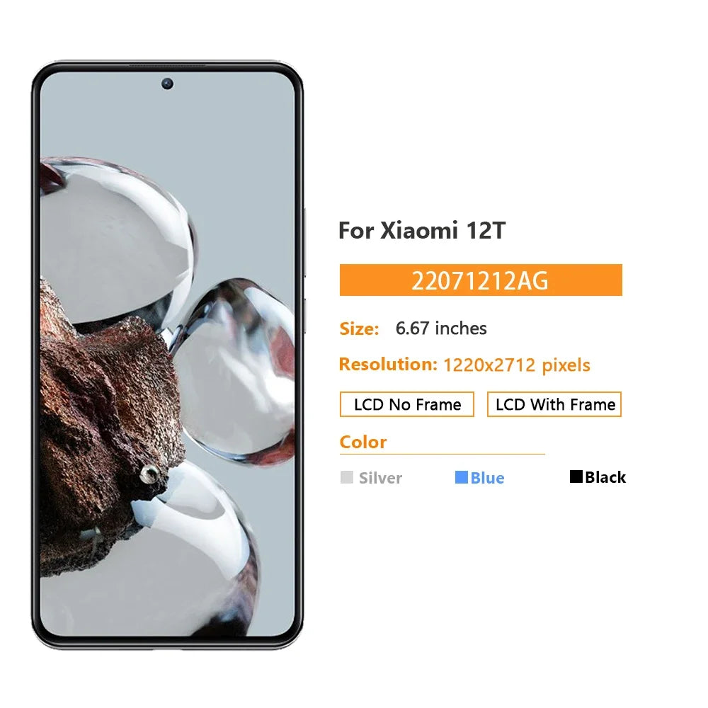 Testato al 100% 6.67 ''LCD Per Xiaomi 12T Display LCD Touch Screen Digitizer Per Xiaomi 12T 22071212AG Sostituzione Dello Schermo LCD