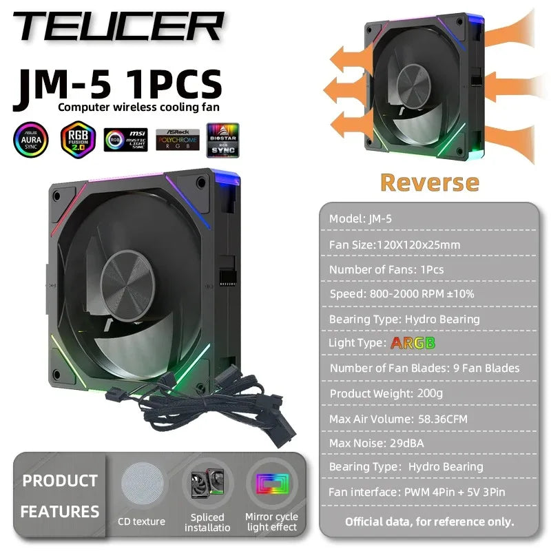 [Efficient Cooling] Don't sleep on the cooling power! This fan is designed to deliver exceptional airflow, keeping your components running cool and stable even under heavy loads. Whether you're gaming, streaming, or editing, this fan has you covered. Say goodbye to thermal throttling and hello to peak performance. This powerful cooling fan will exceed expectations, every single time. With this ARGB Cooling fan, your search for the ultimate fan ends now.