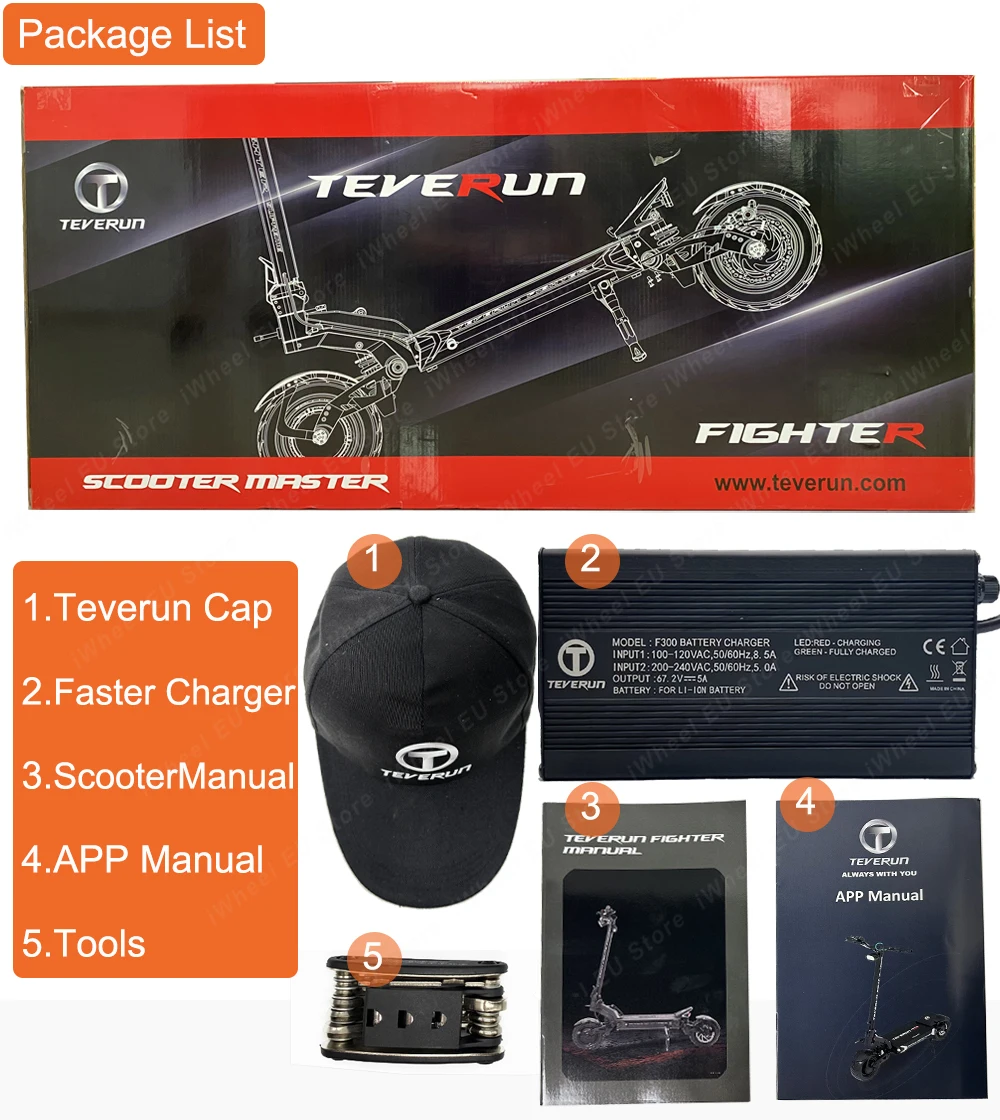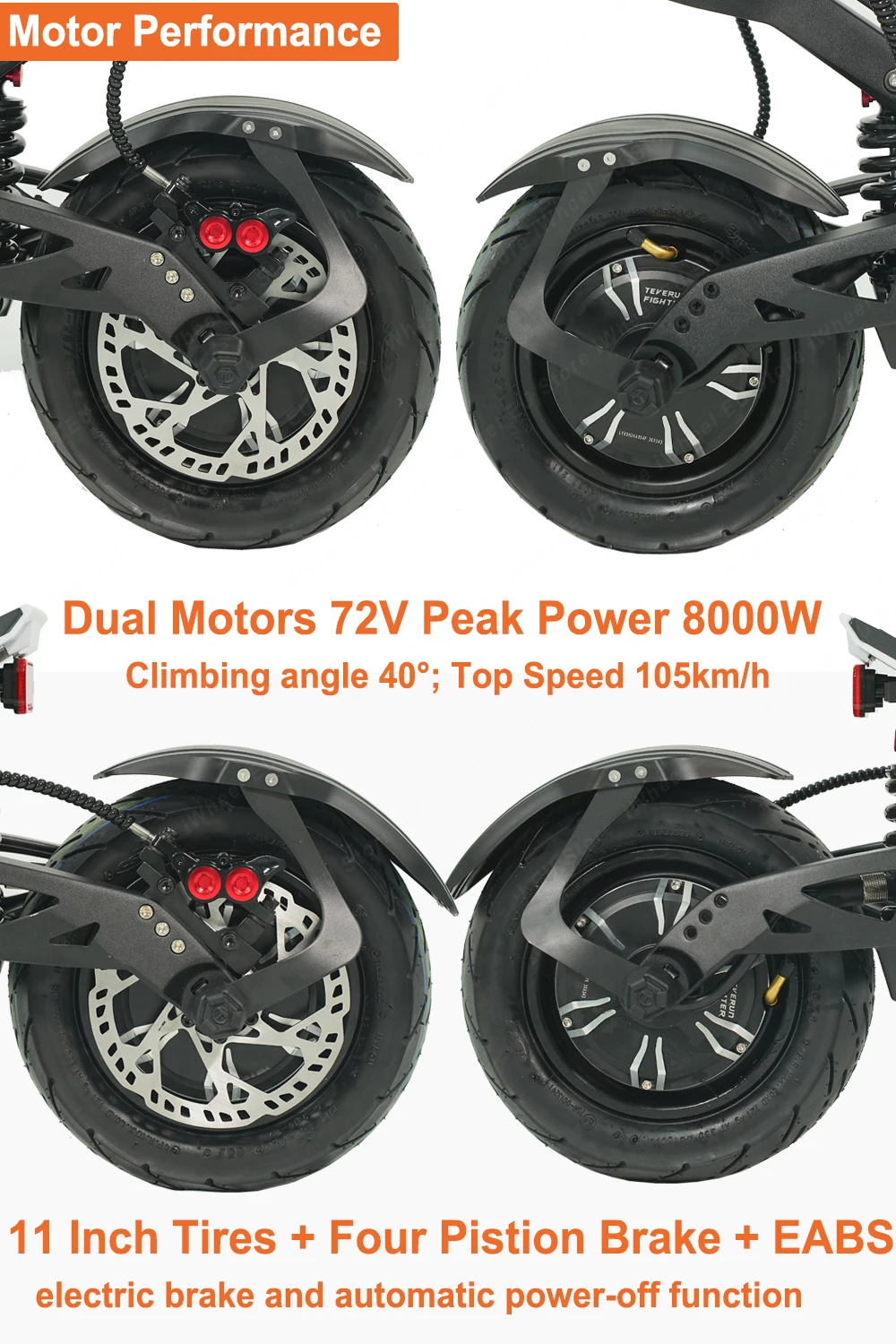 Teverun Fighter SUPRE ME Ultra 72V 60Ah SK Battery Dual Motor 8000W Top Speed 105km/h 11inch Tubeless Tire Teverun Scooter
