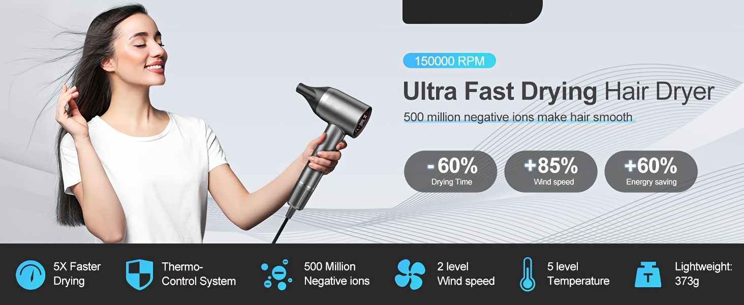 The Perfect Gift For SDKWDH Christmas! Digital Screen Hair Dryer - Negative Ions. 150000 RPM Motor, Fast, Quiet And Dry. Hd Display. Diffuser, Nozzle. Five Temperatures, Two Speeds. Compact, Smart. SMP-JYCFJ-1