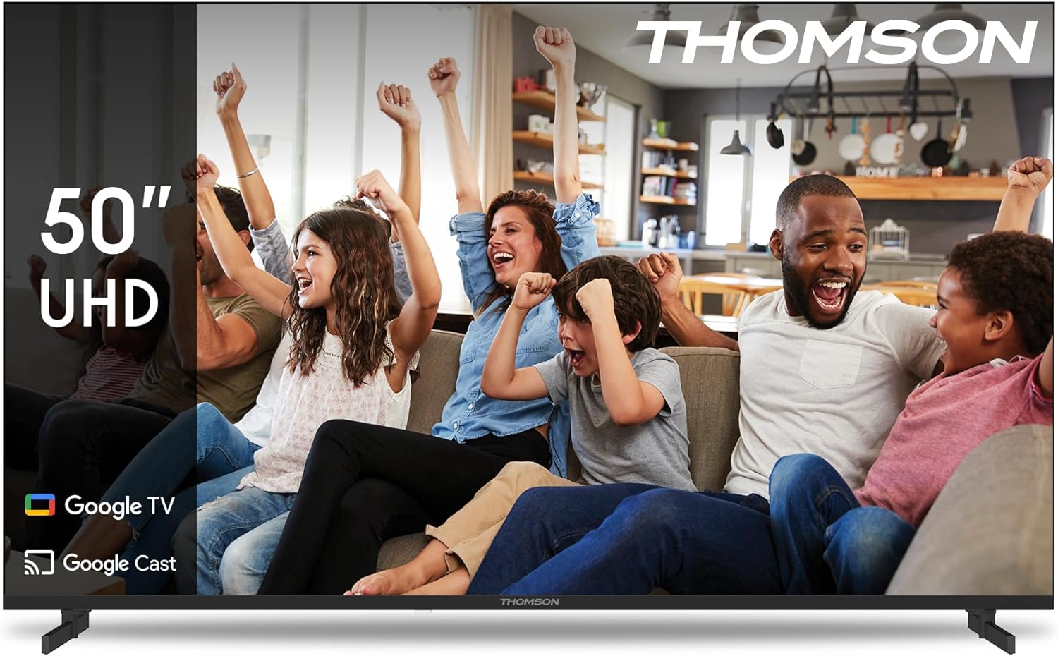 Thomson 50 Pollici (127cm) 4K Ultra HD Smart Google TV, Wi-Fi, Dolby Vision IQ, Dolby Atmos, HDR10, Bluetooth 5.1, Triple-Tuner (Cavo/Satellite/Antenna), HDMI, CI+, A+ Pannello - 50UG4S14