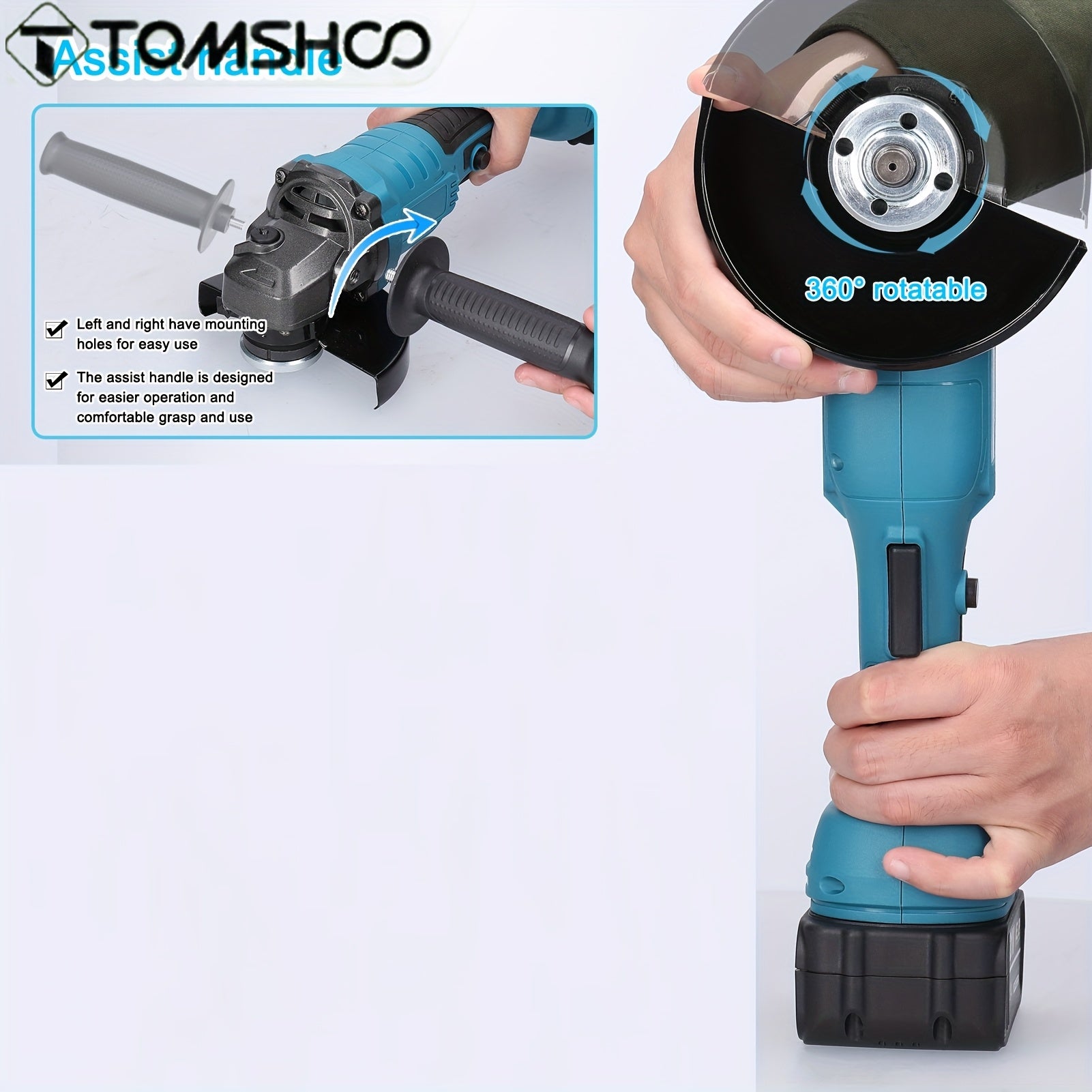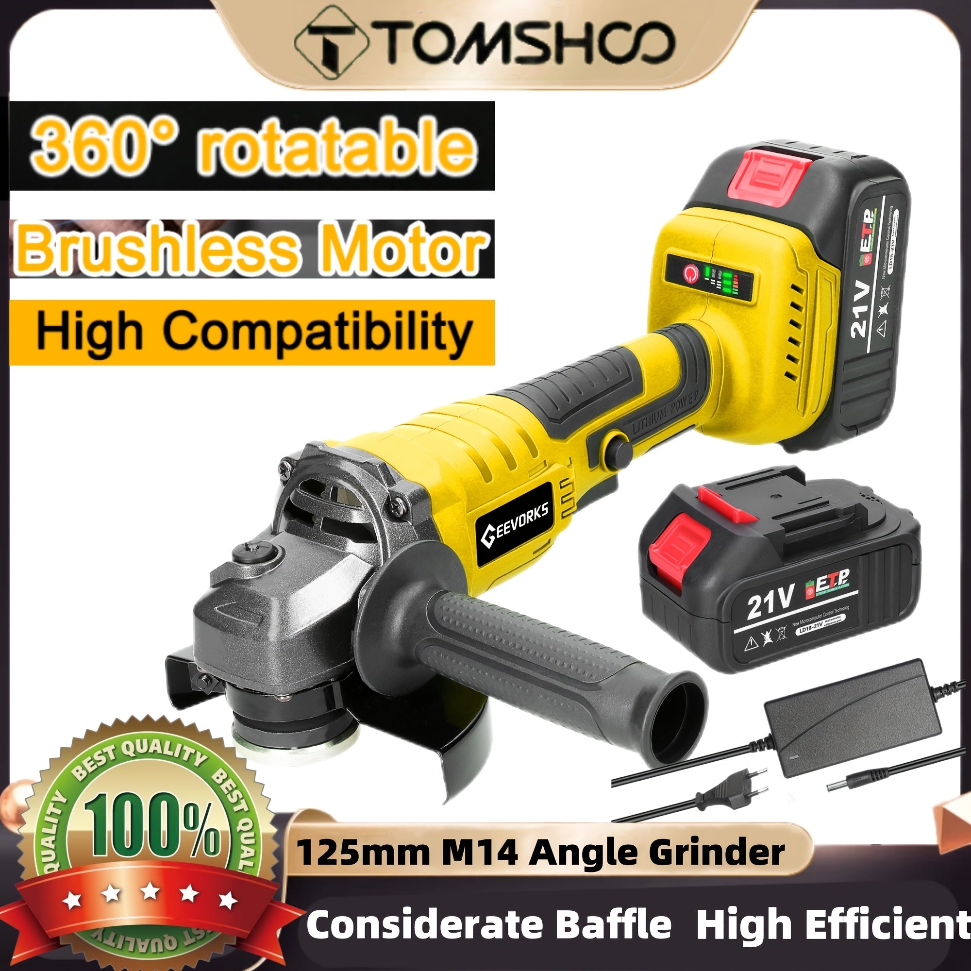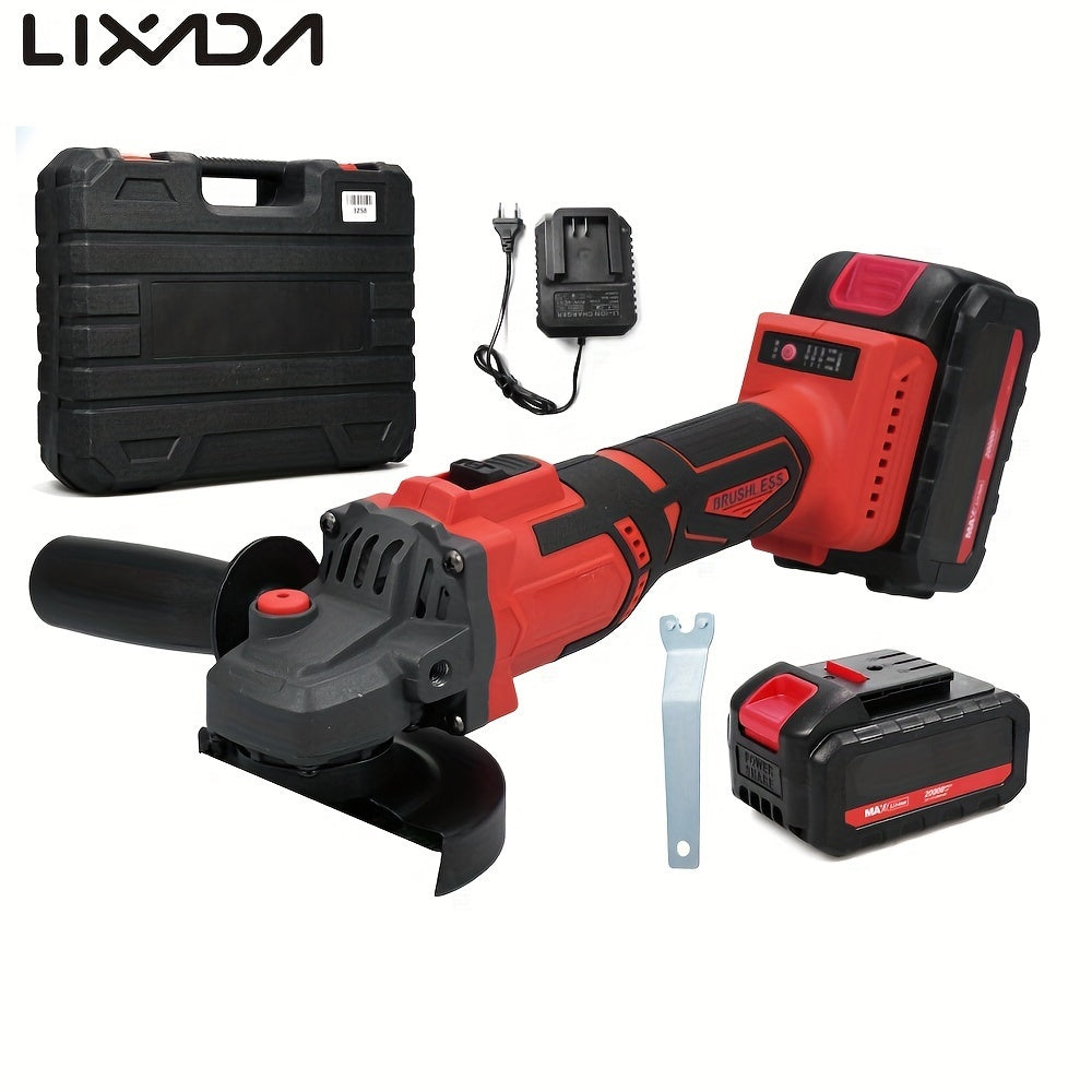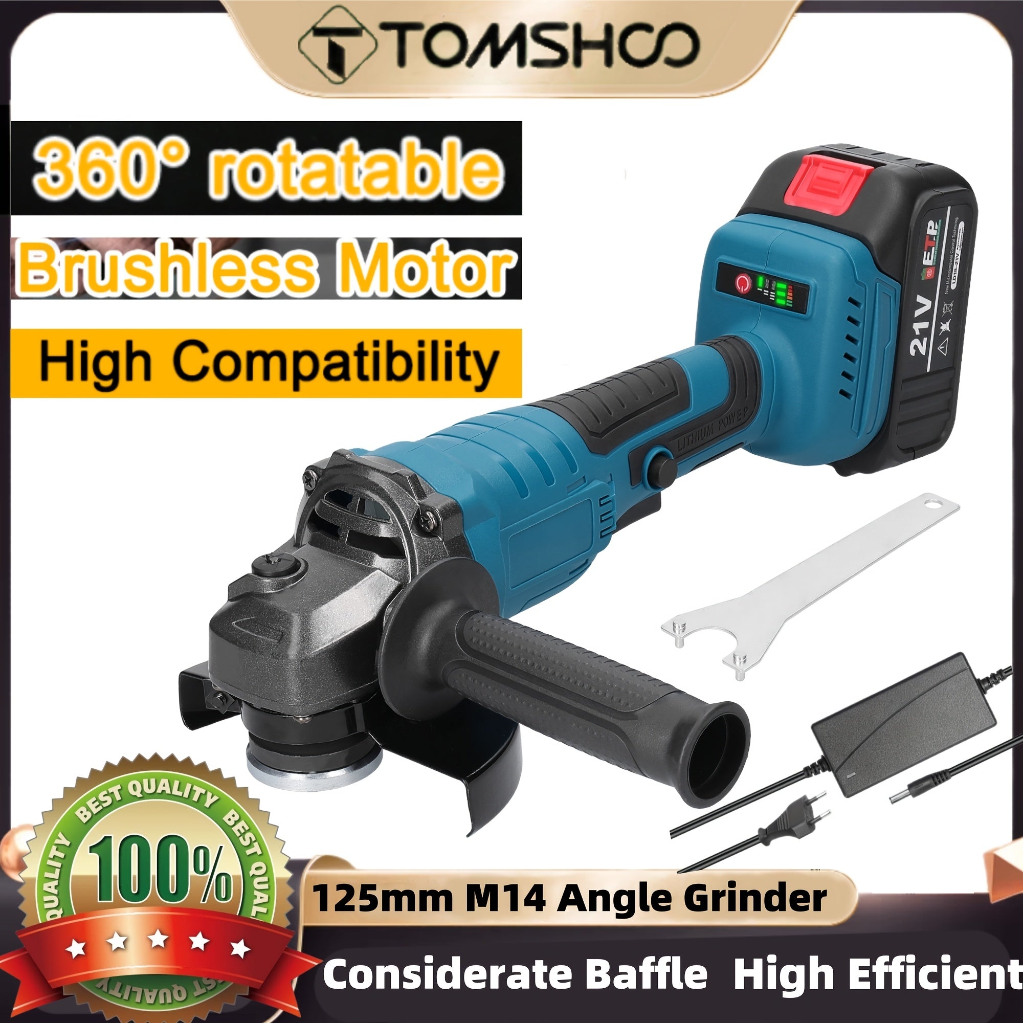 TOMSHOO 21V 125mm M14 Angolare senza spazzola, strumento di trapano ad alta efficienza alimentato da batteria al litio, corpo in ferro, leggero, con batterie ricaricabili, per lucidatura e trapano