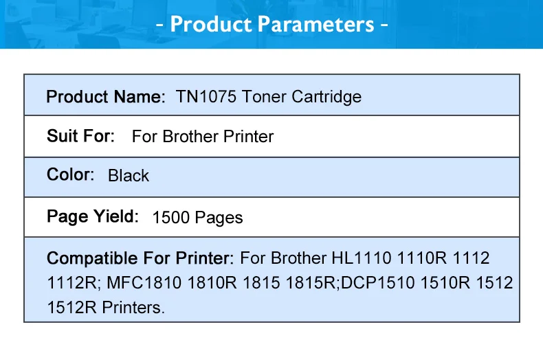 Toney King Toner Cartridge TN1075 TN 1075 Compatible for Brother HL-1110 1112 DCP-1510 1512R MFC-1810 Printer With Chip