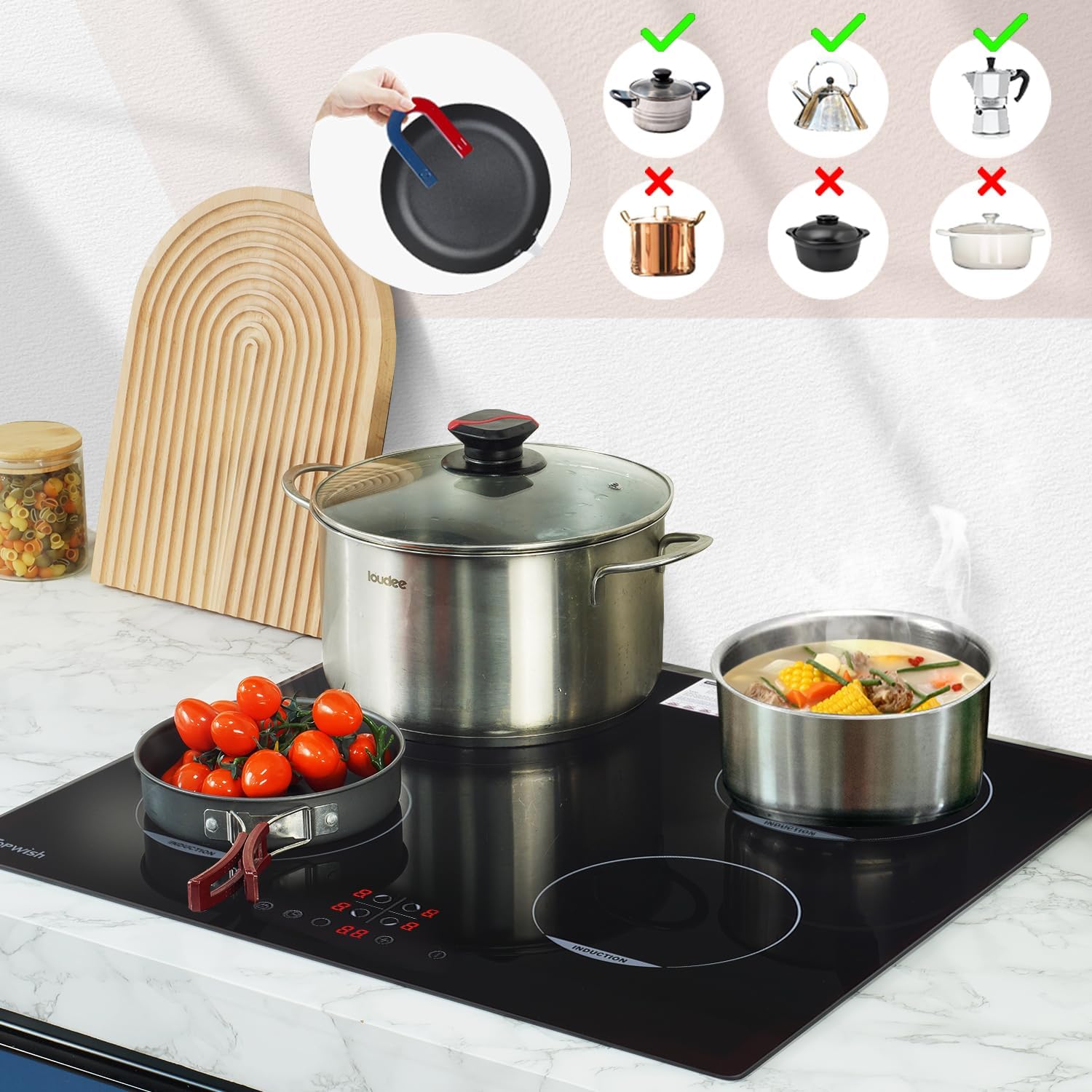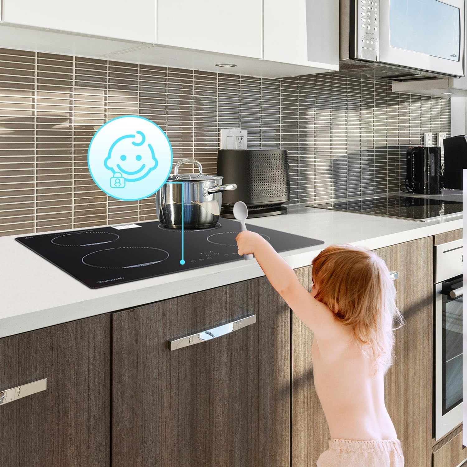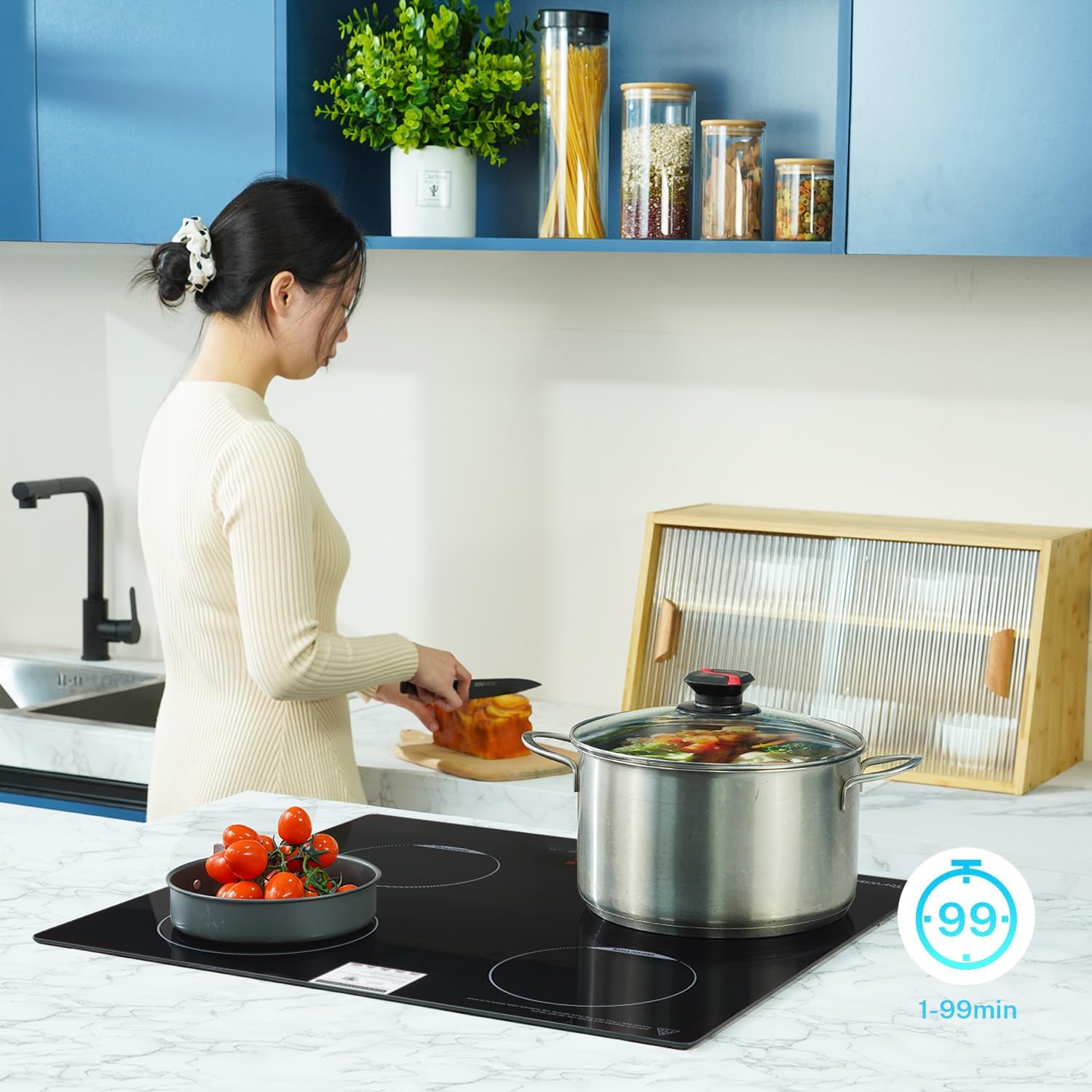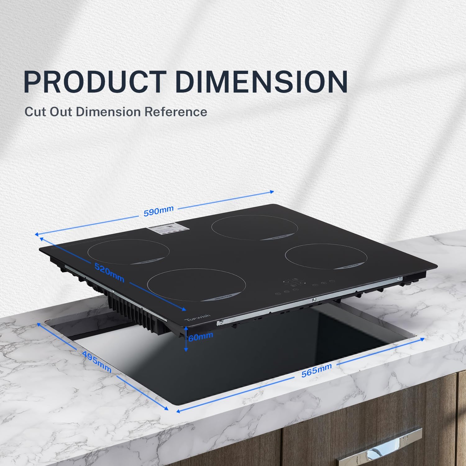 Topwish piano induzione, piano induzione 4 fuochi, piano cottura induzione, piastra induzione con sicurezza bambini, funzione boost, controllo touch, indicatore di calore residuo, timer, 59CM