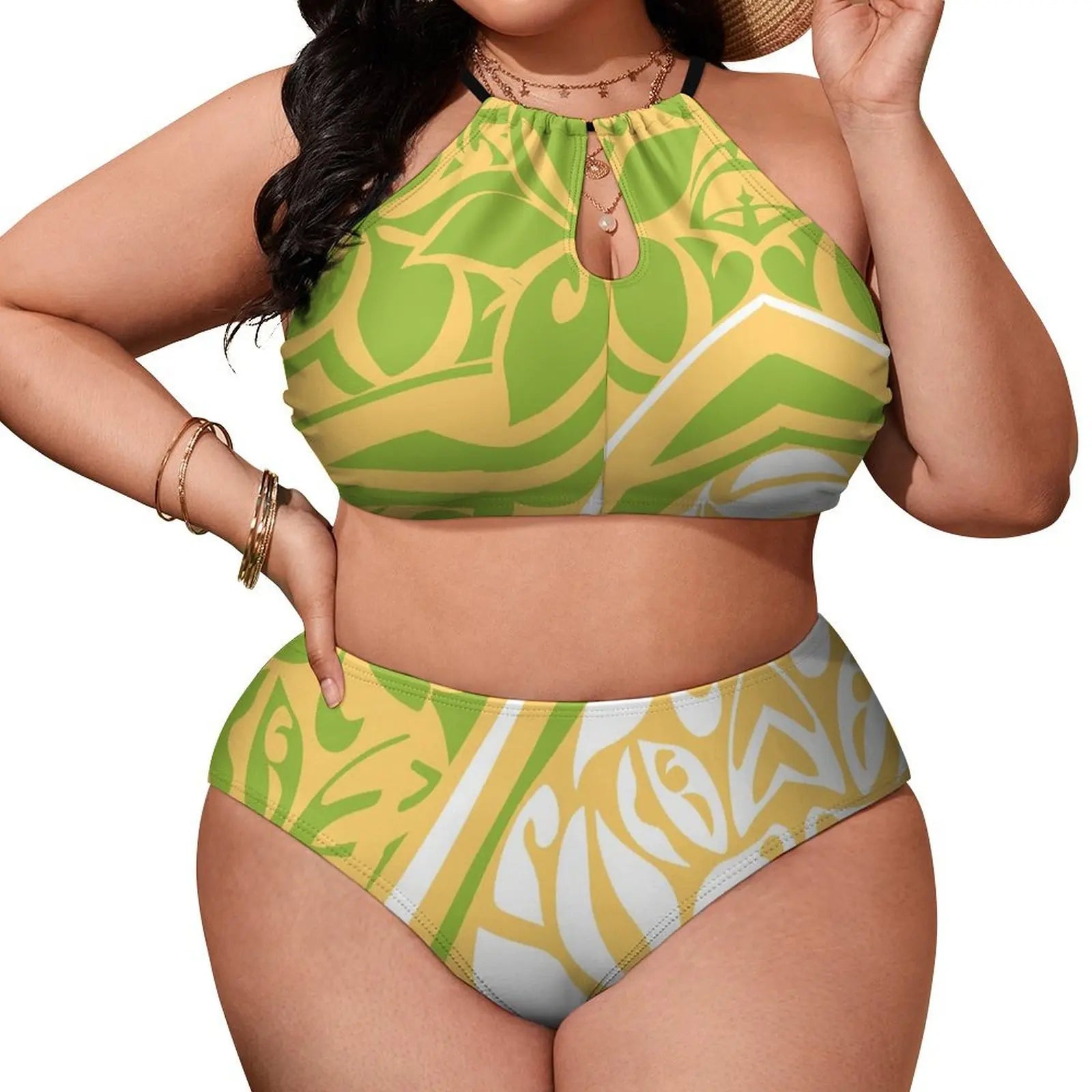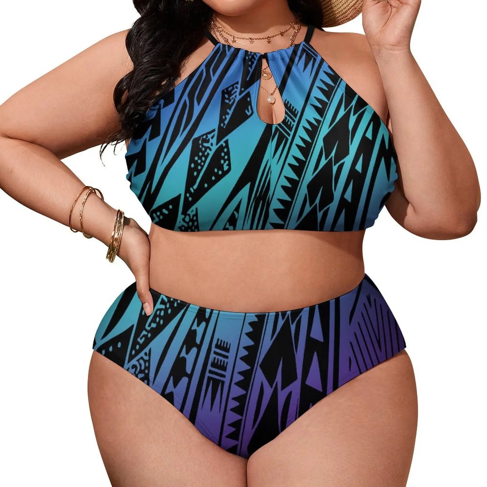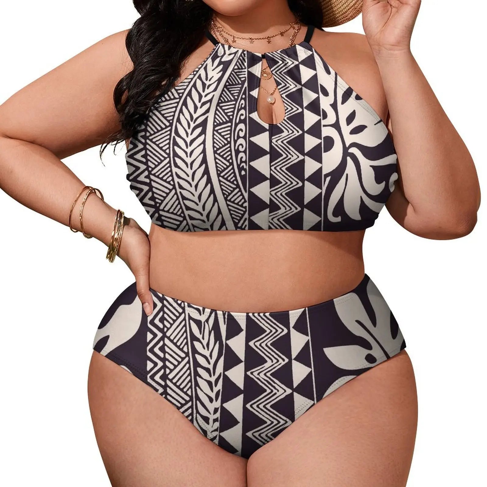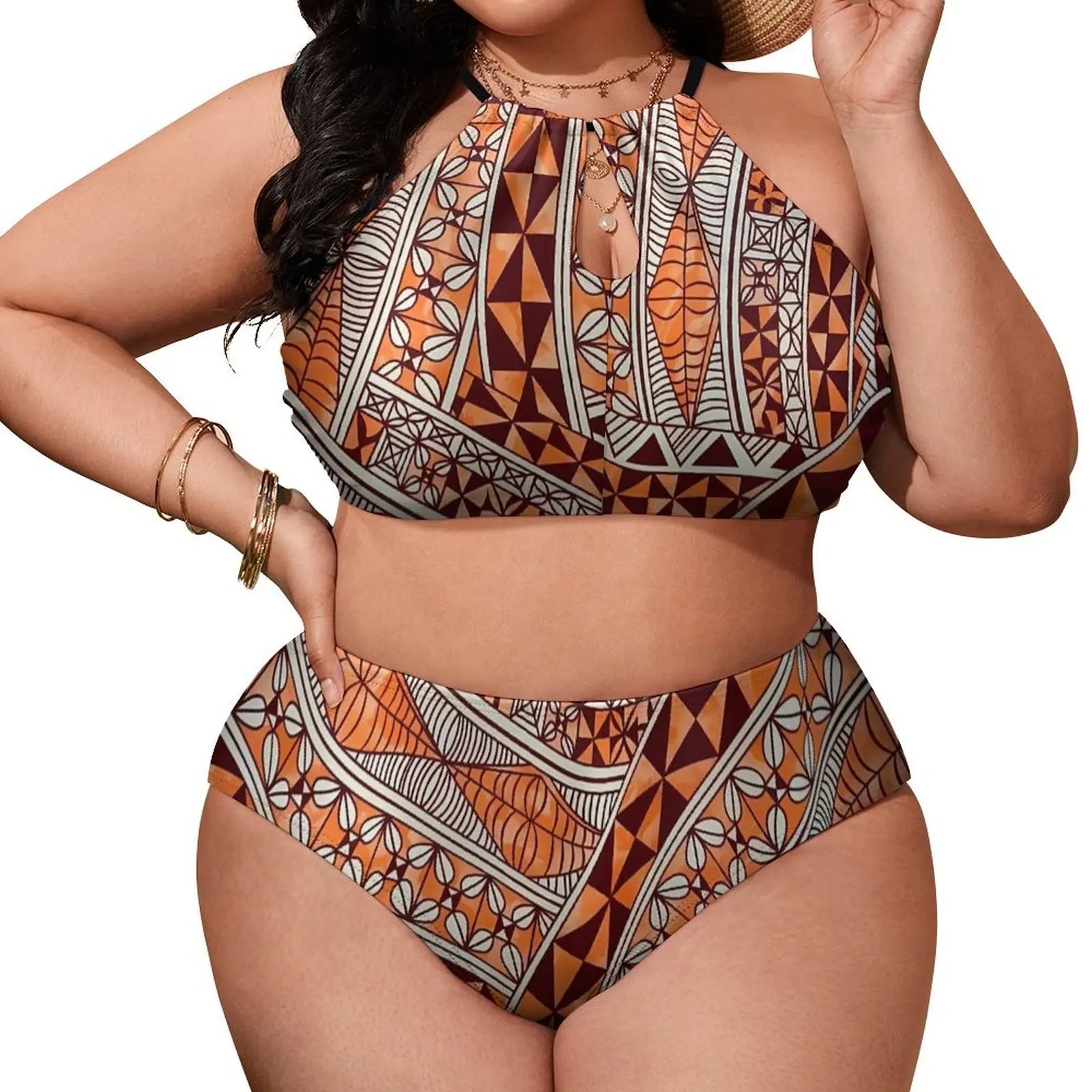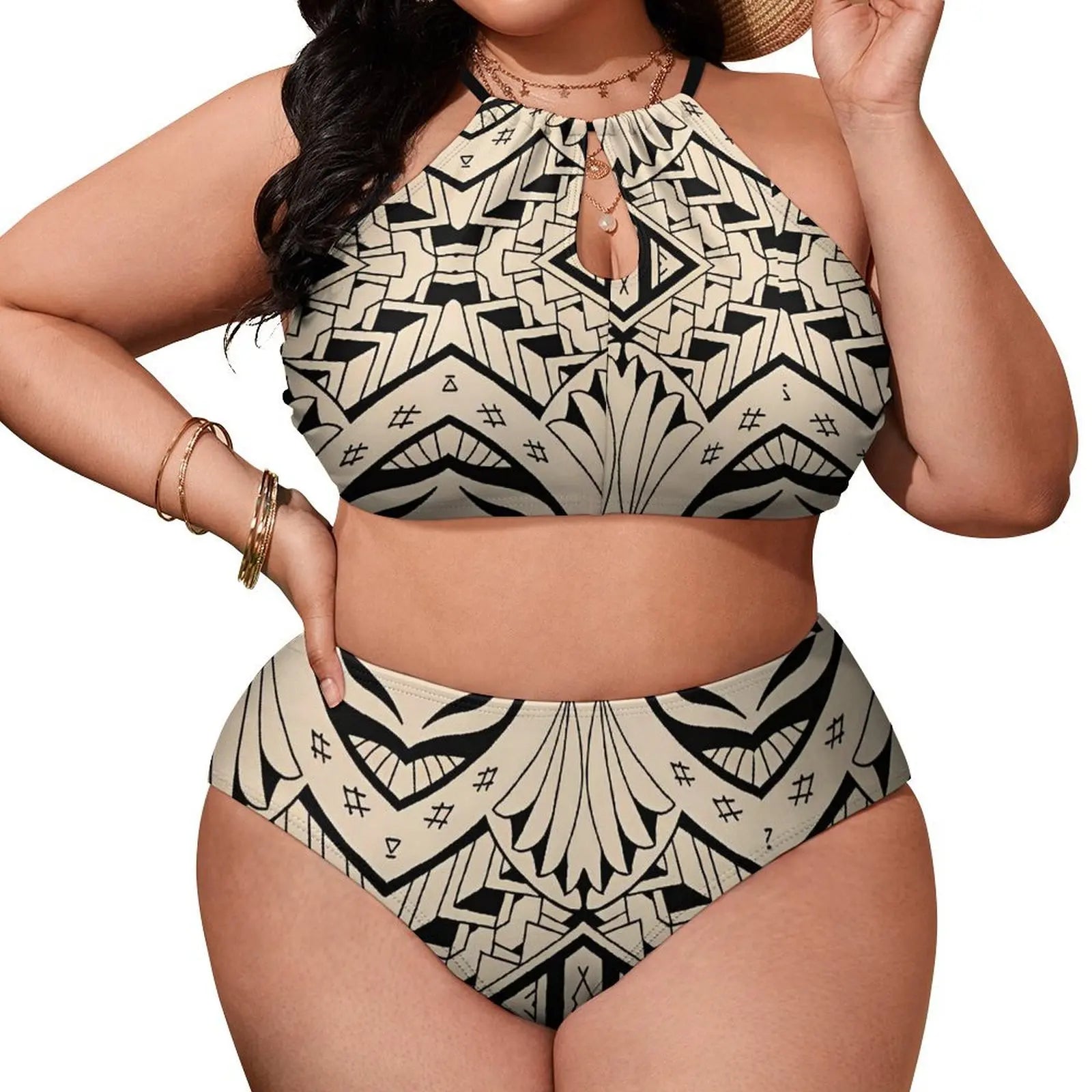 Traditional Polynesian Custom Design Plus Size Swimsuit Samoa-Fiji Art Print Halter Top Triangle Swimsuit Plus Size Bikini