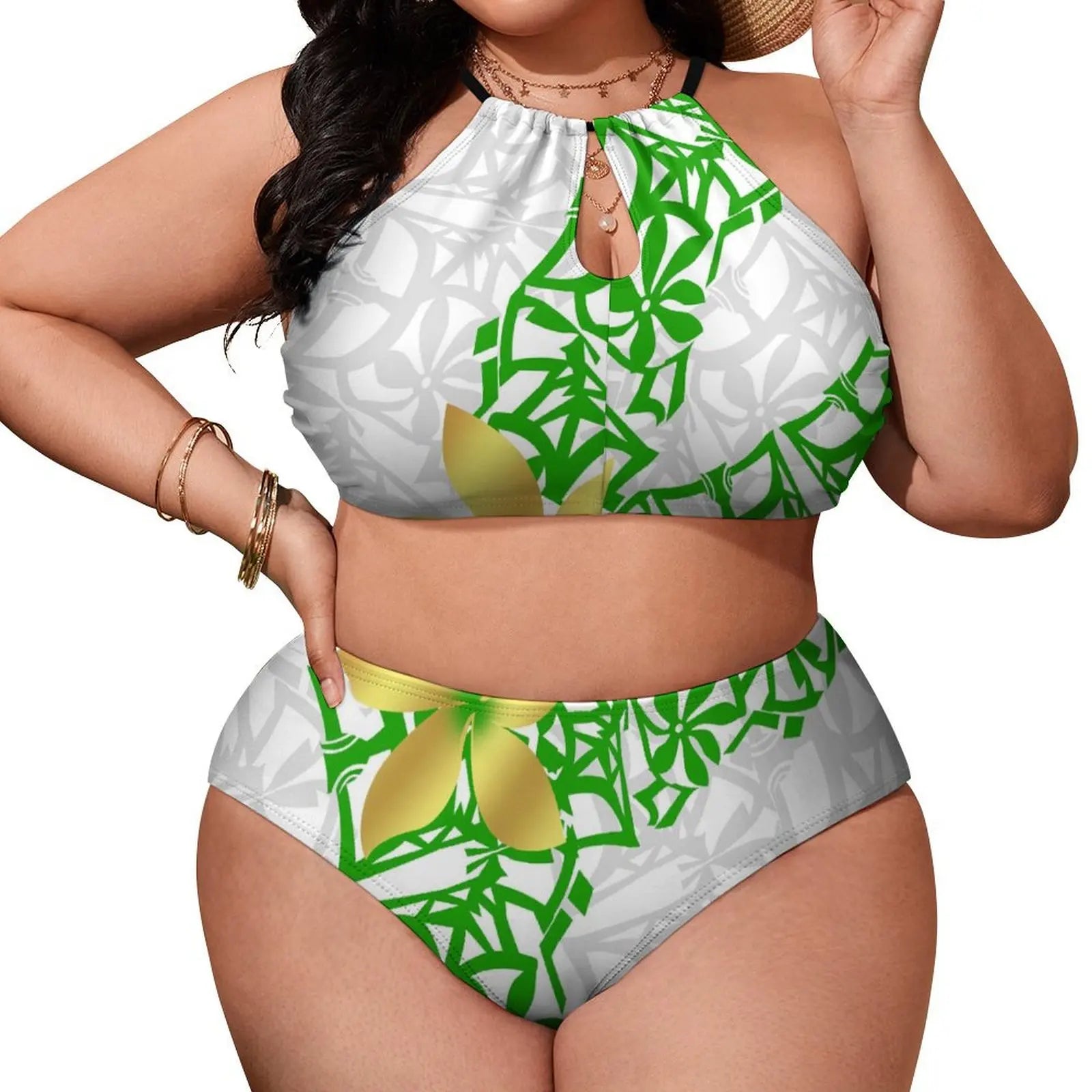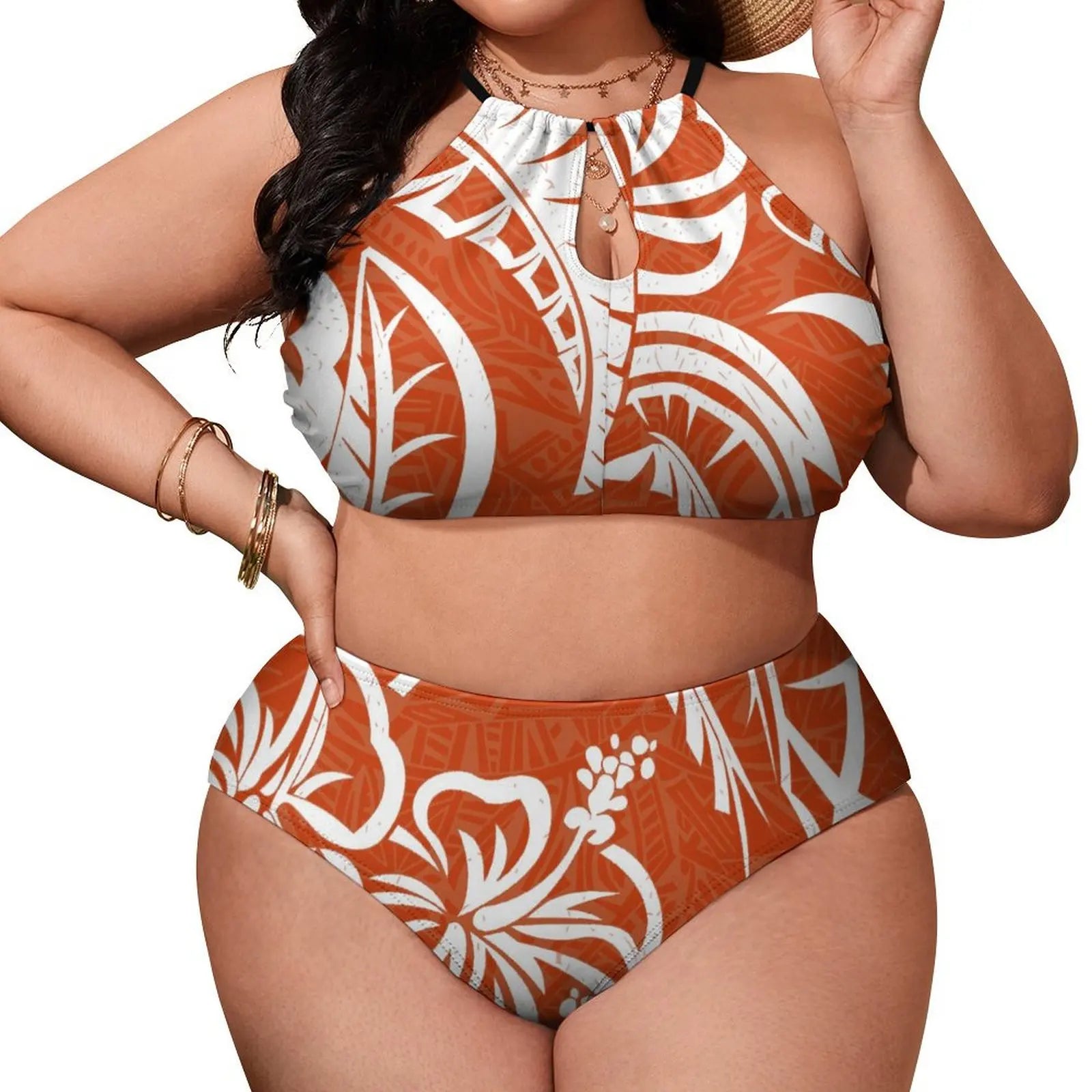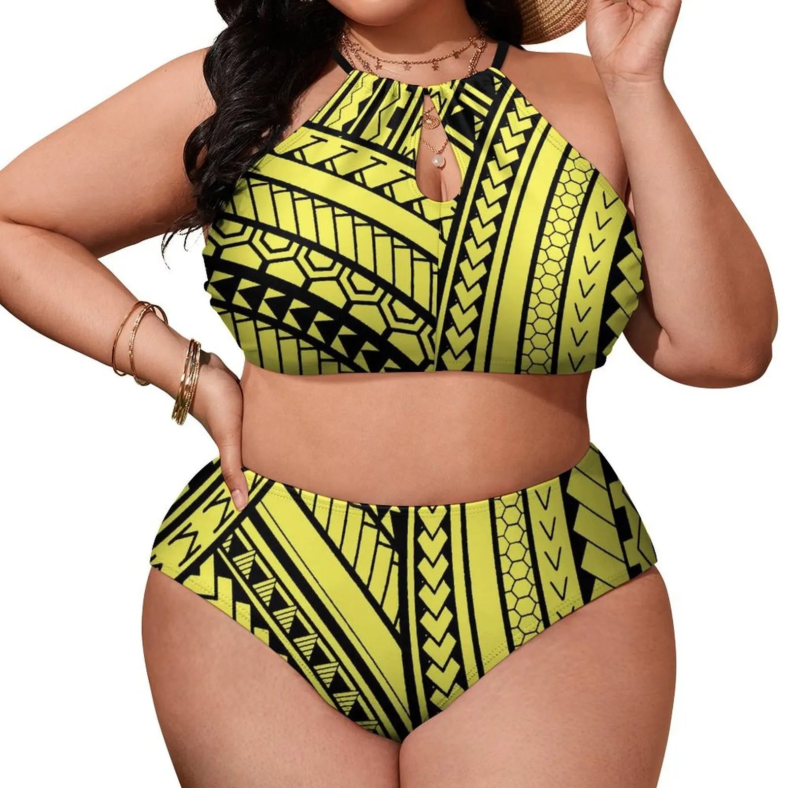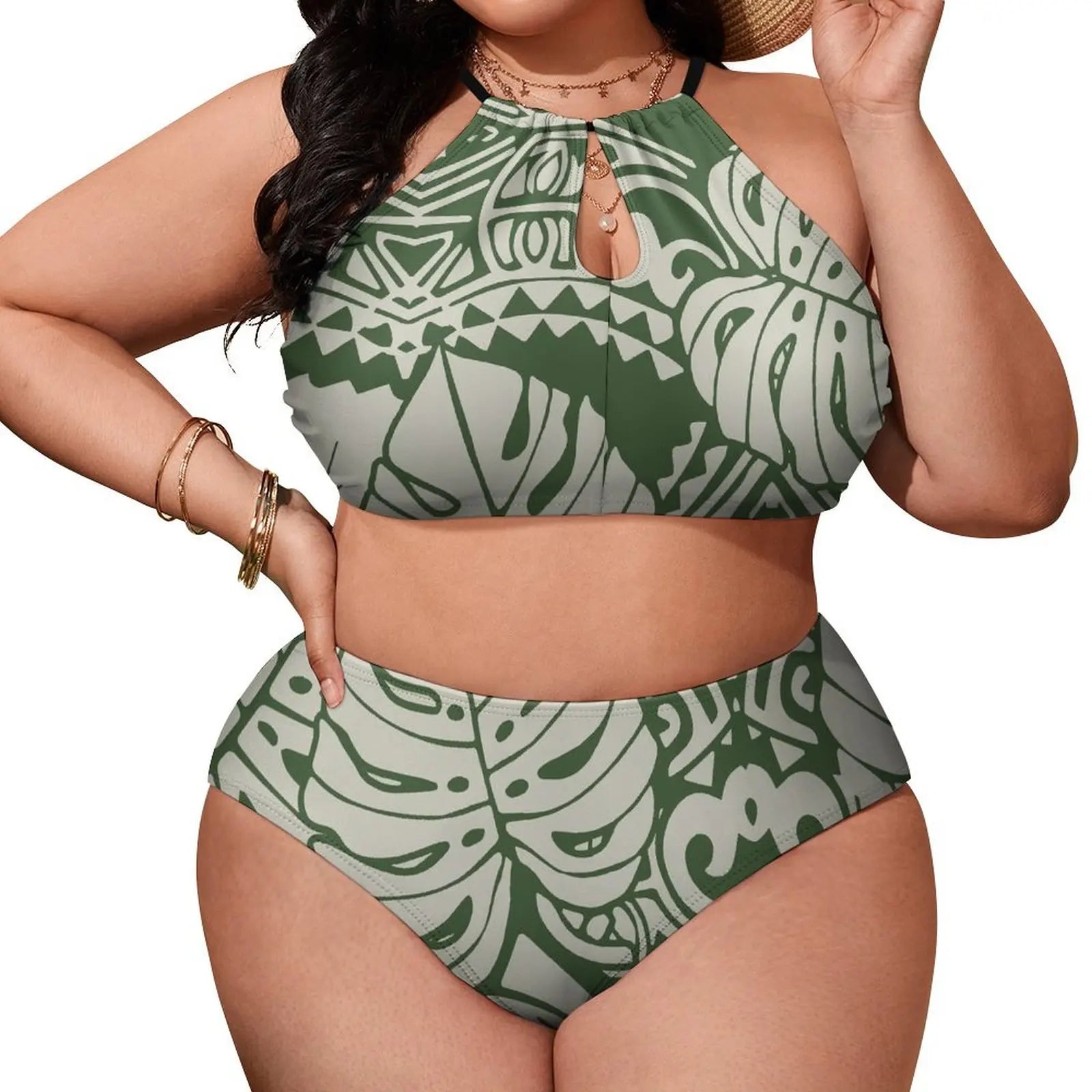 Traditional Polynesian Custom Design Plus Size Swimsuit Samoa-Fiji Art Print Halter Top Triangle Swimsuit Plus Size Bikini