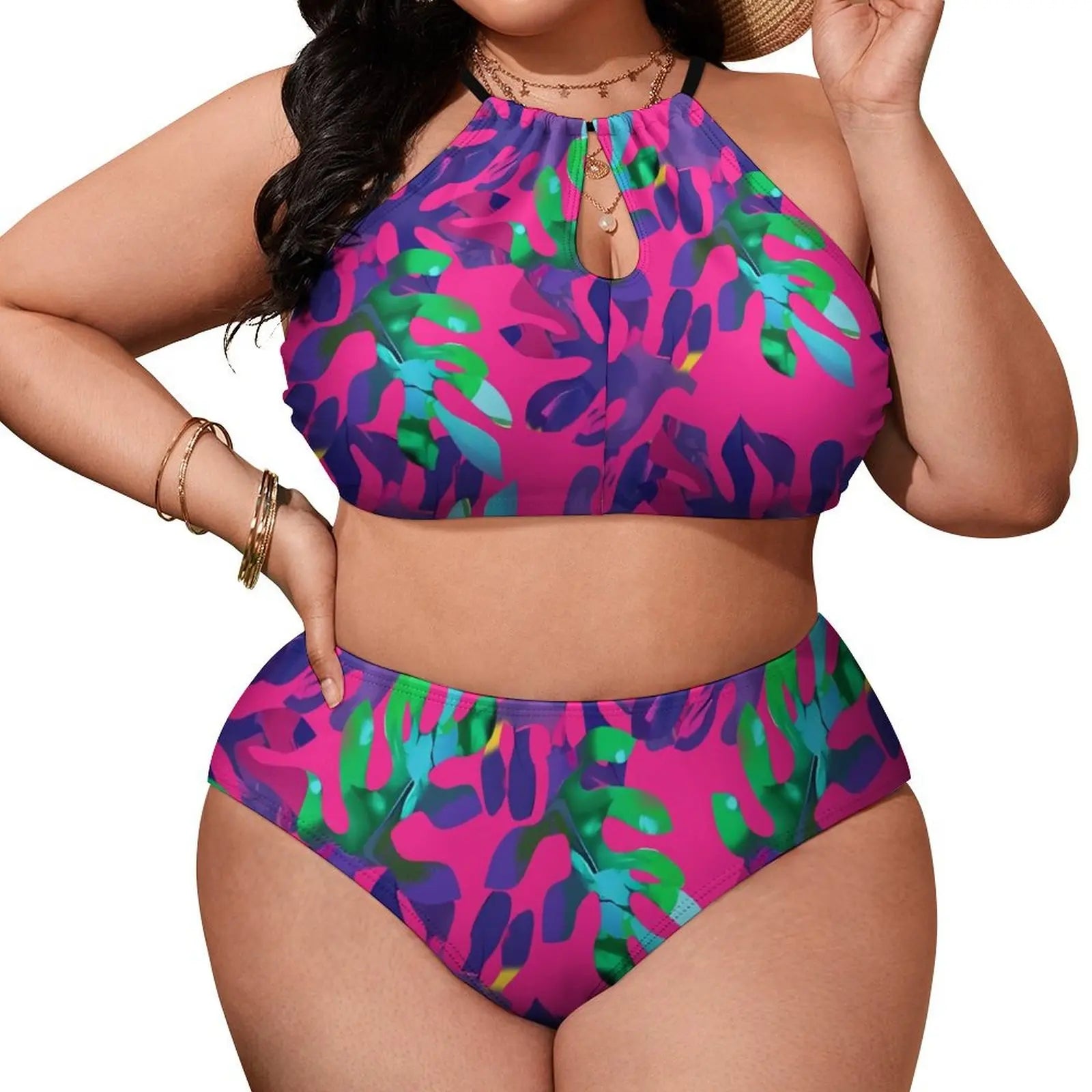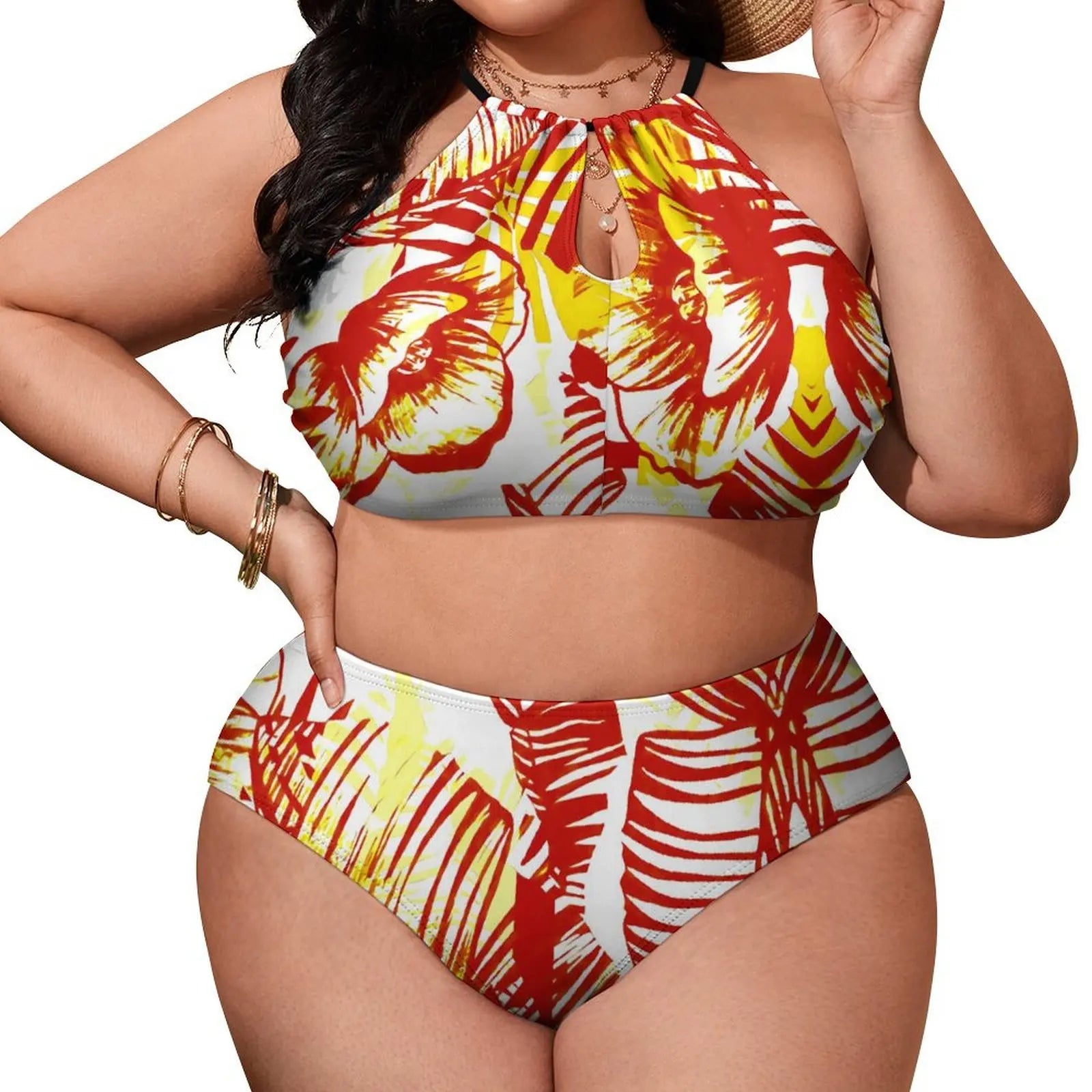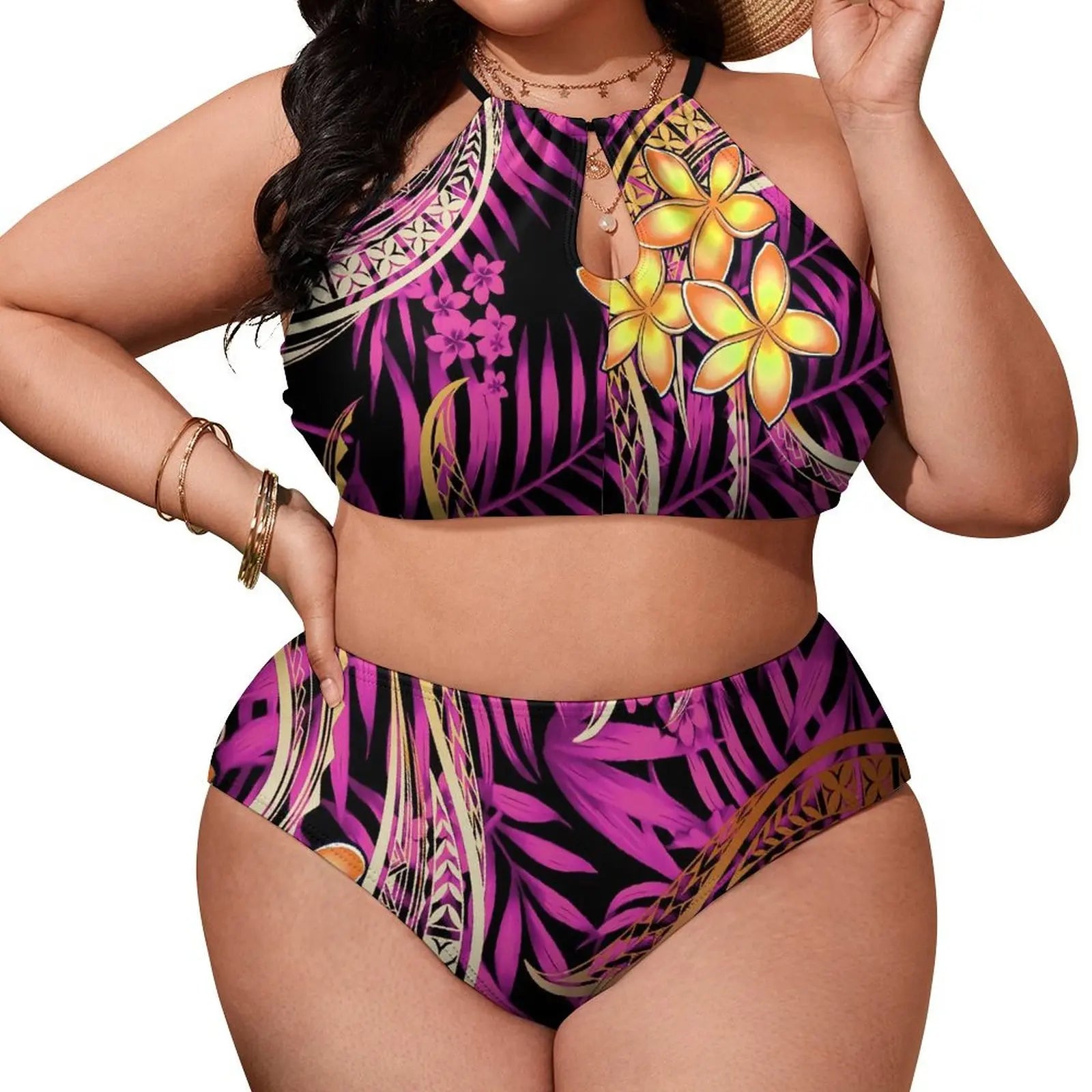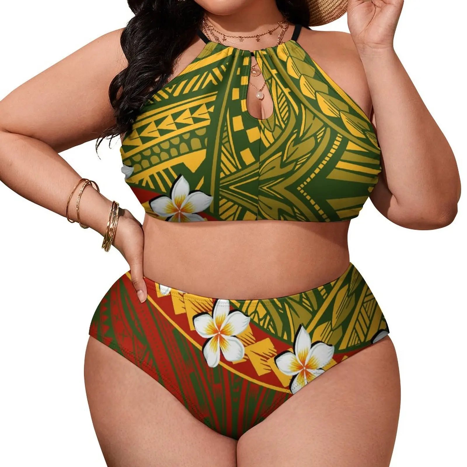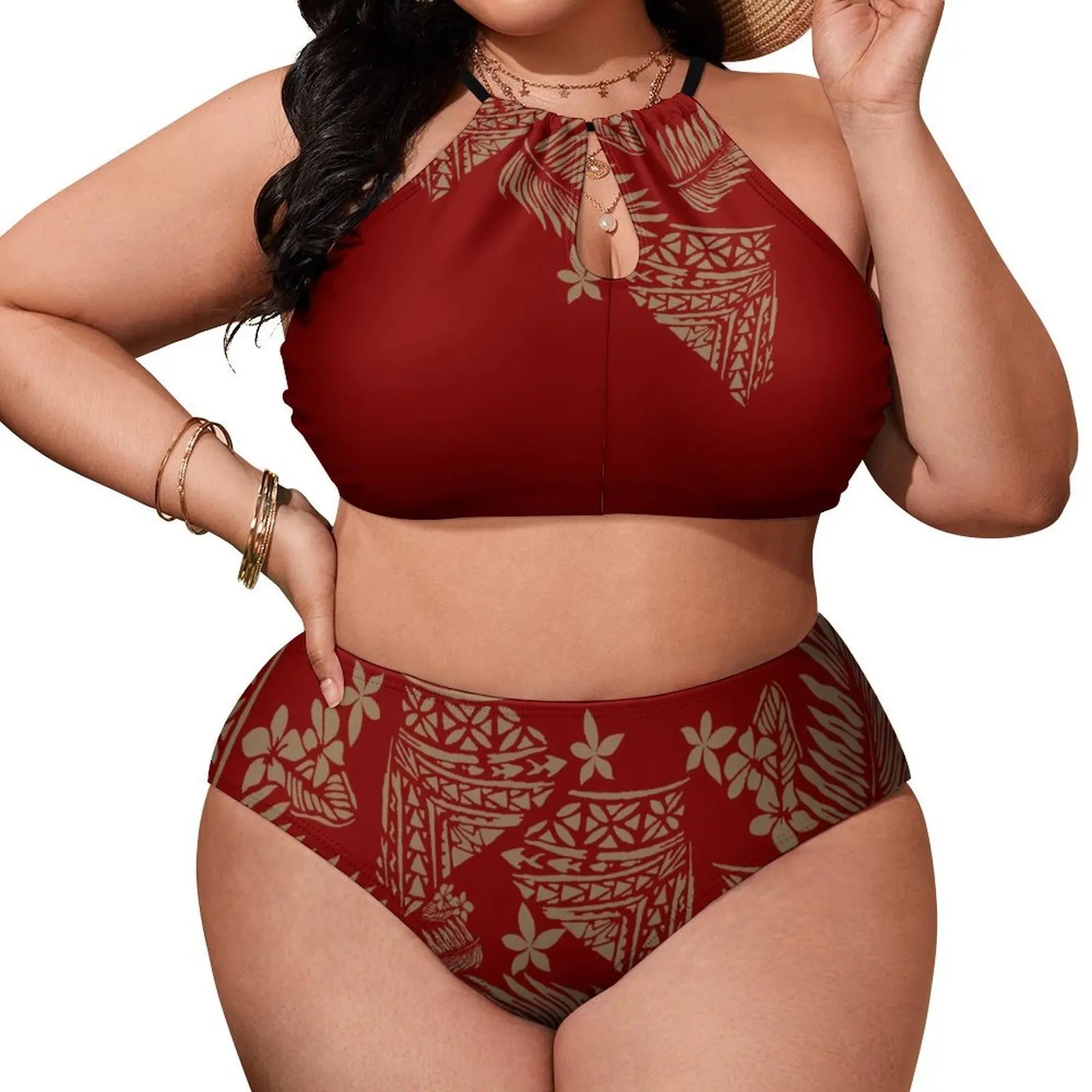 Traditional Polynesian Custom Design Plus Size Swimsuit Samoa-Fiji Art Print Halter Top Triangle Swimsuit Plus Size Bikini