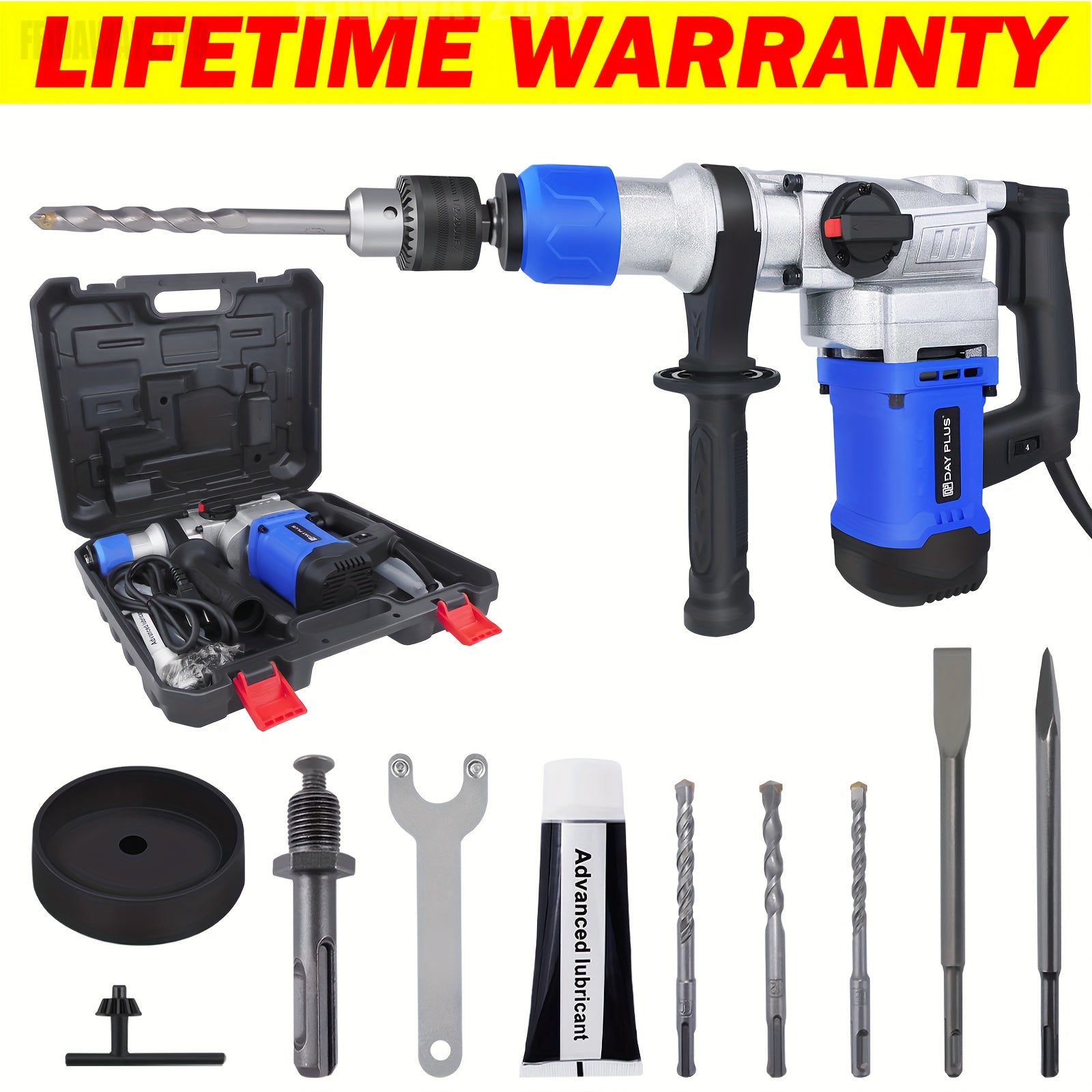 Trapano a Percussione Elettrico con Funzione Rotazione Arrestabile | Kit Completo con 3 Punta da Trapano e Scalpello | Ideale per Mattone, Legno, Acciaio, Calcestruzzo e Muratura