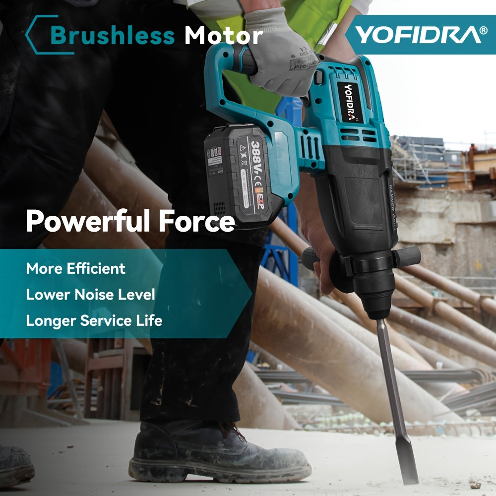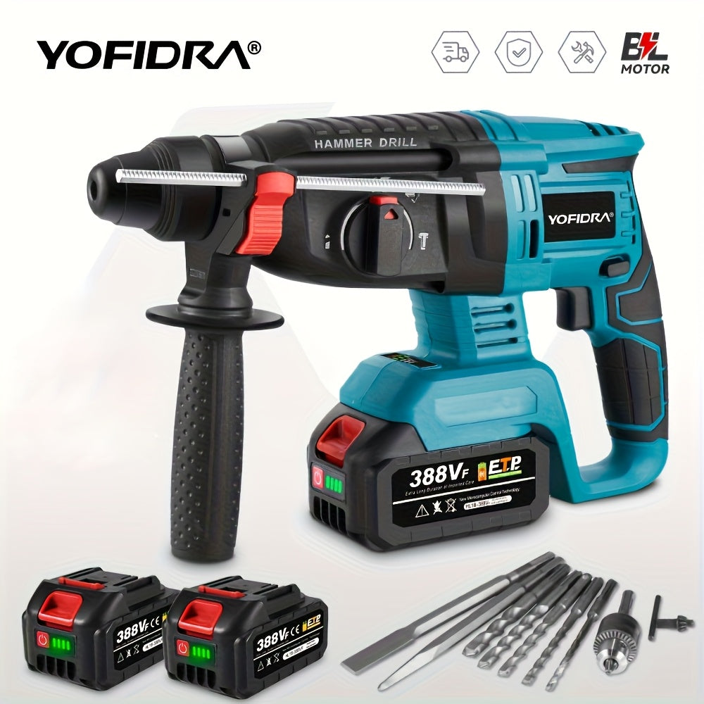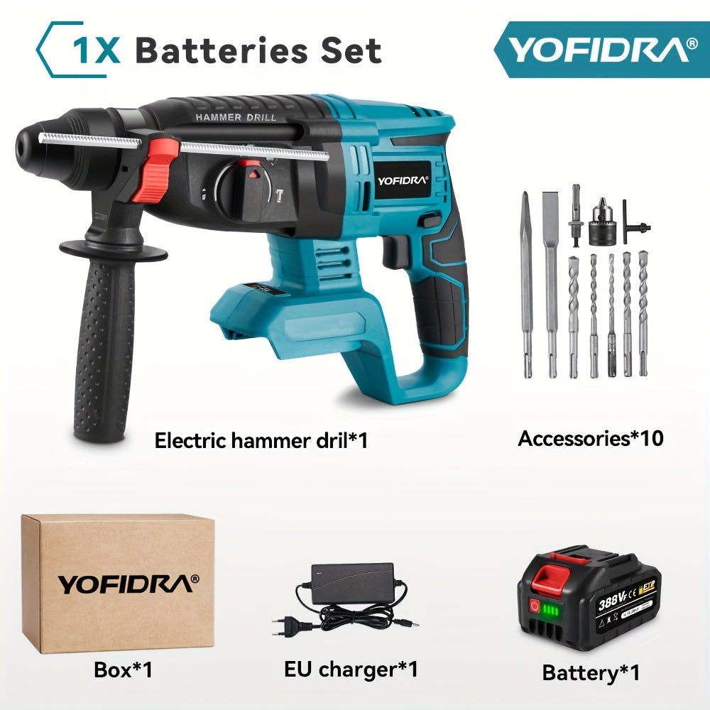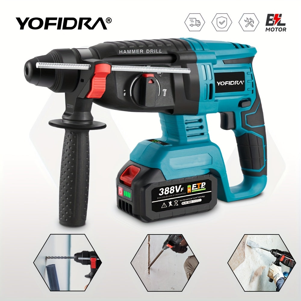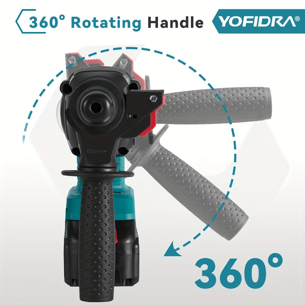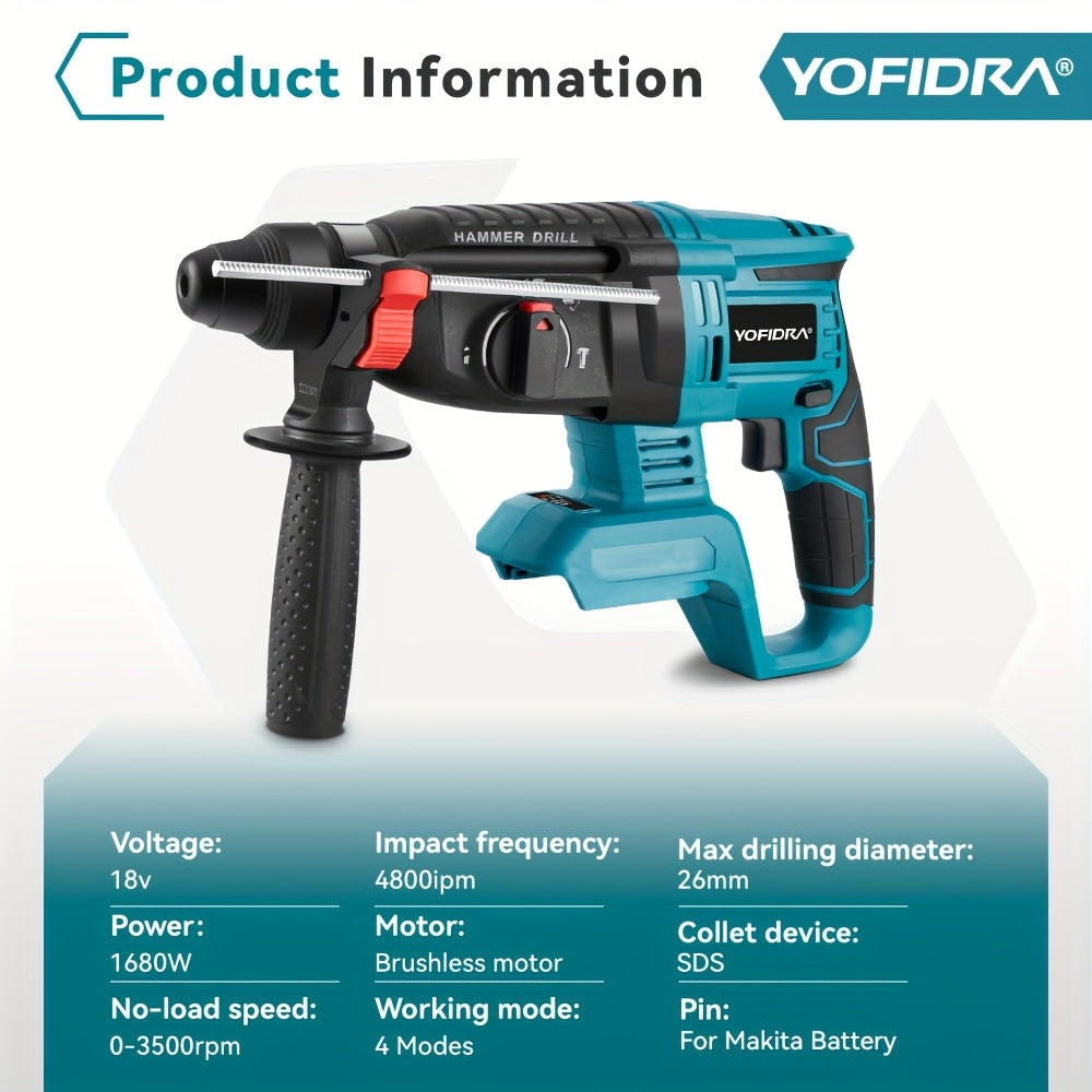 Trapano a Percussione Elettrico Senza Spazzole, 26mm con Punta da Trapano, Trapano Rotativo a Impatto Senza Fili 4 Velocità, Adatto per Cemento, Acciaio e Legno, Compatibile con Batterie YOFIDRA