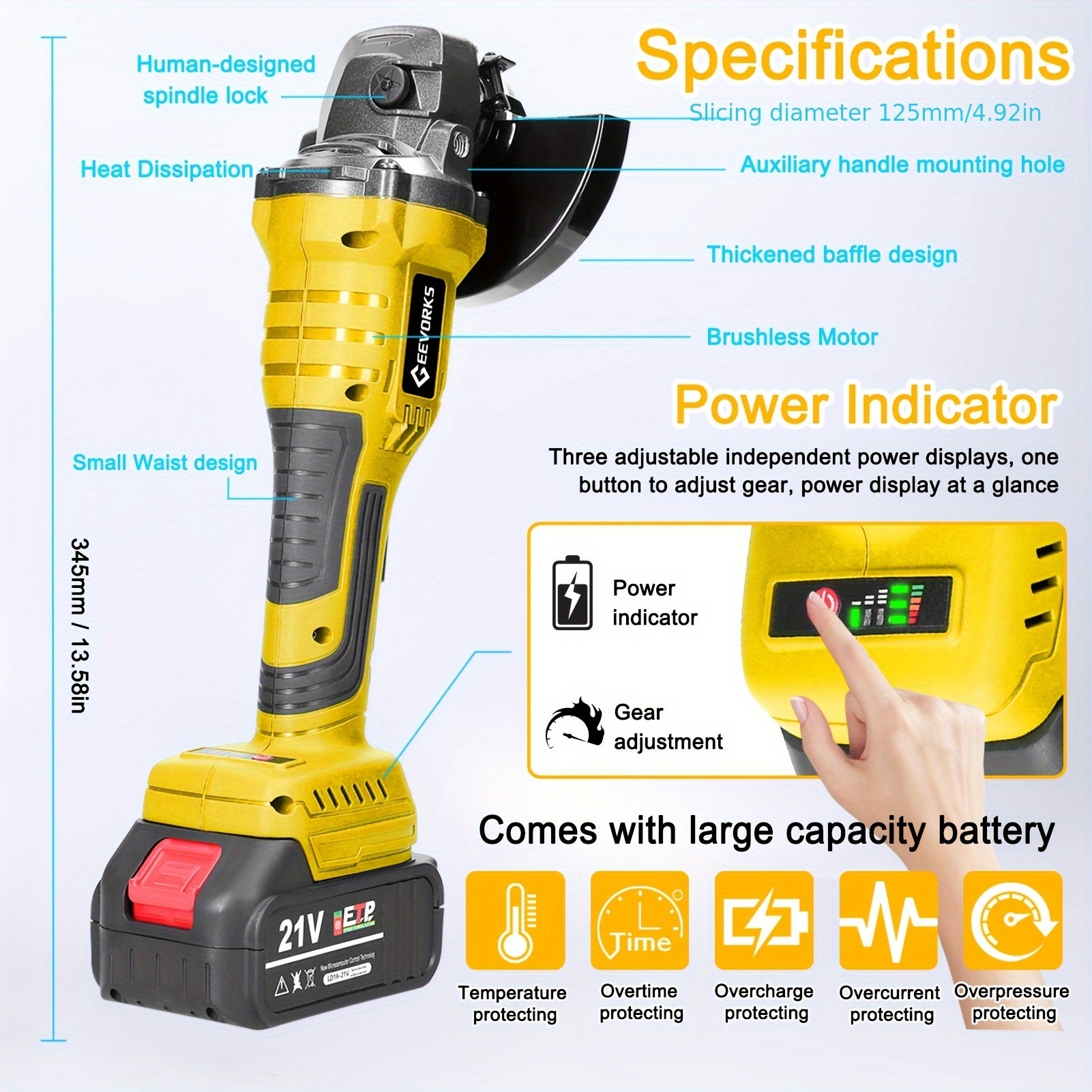 Trapano Angolare Lixada 21V 125mm M14 con Motore Brushless, Strumento Elettrico Multifunzione per Levigatura e Lucidatura di Piastrelle in Ceramica, Legno, Pietra e Acciaio