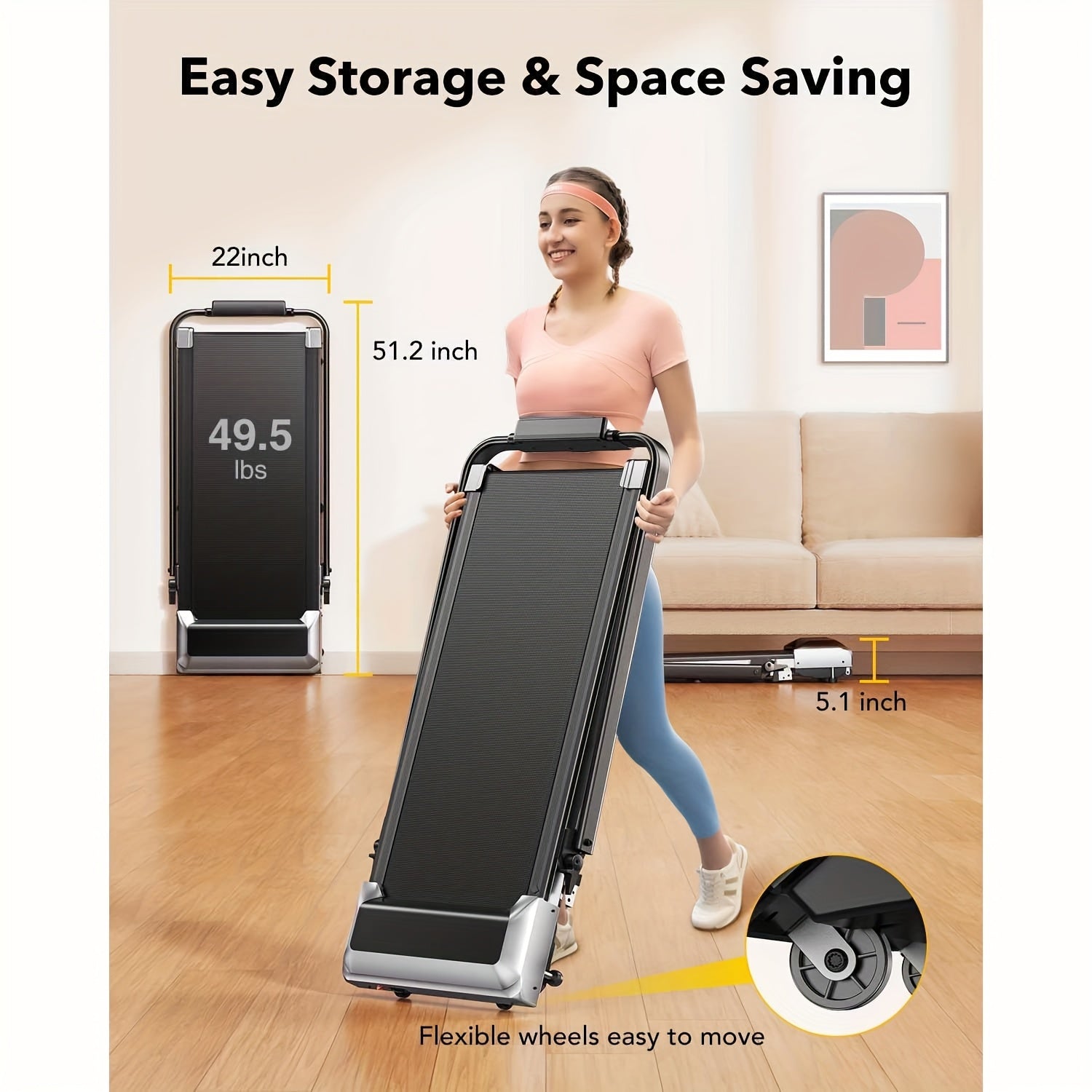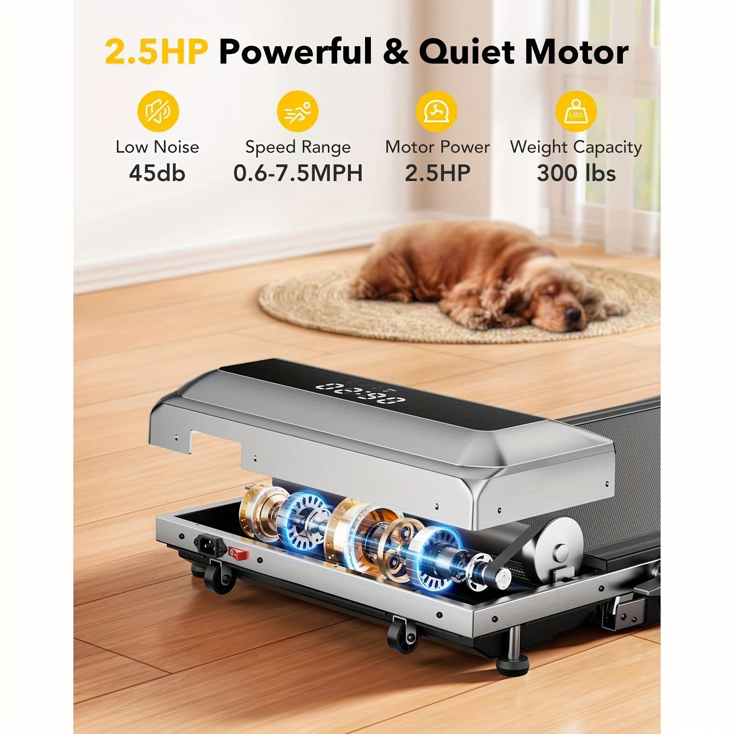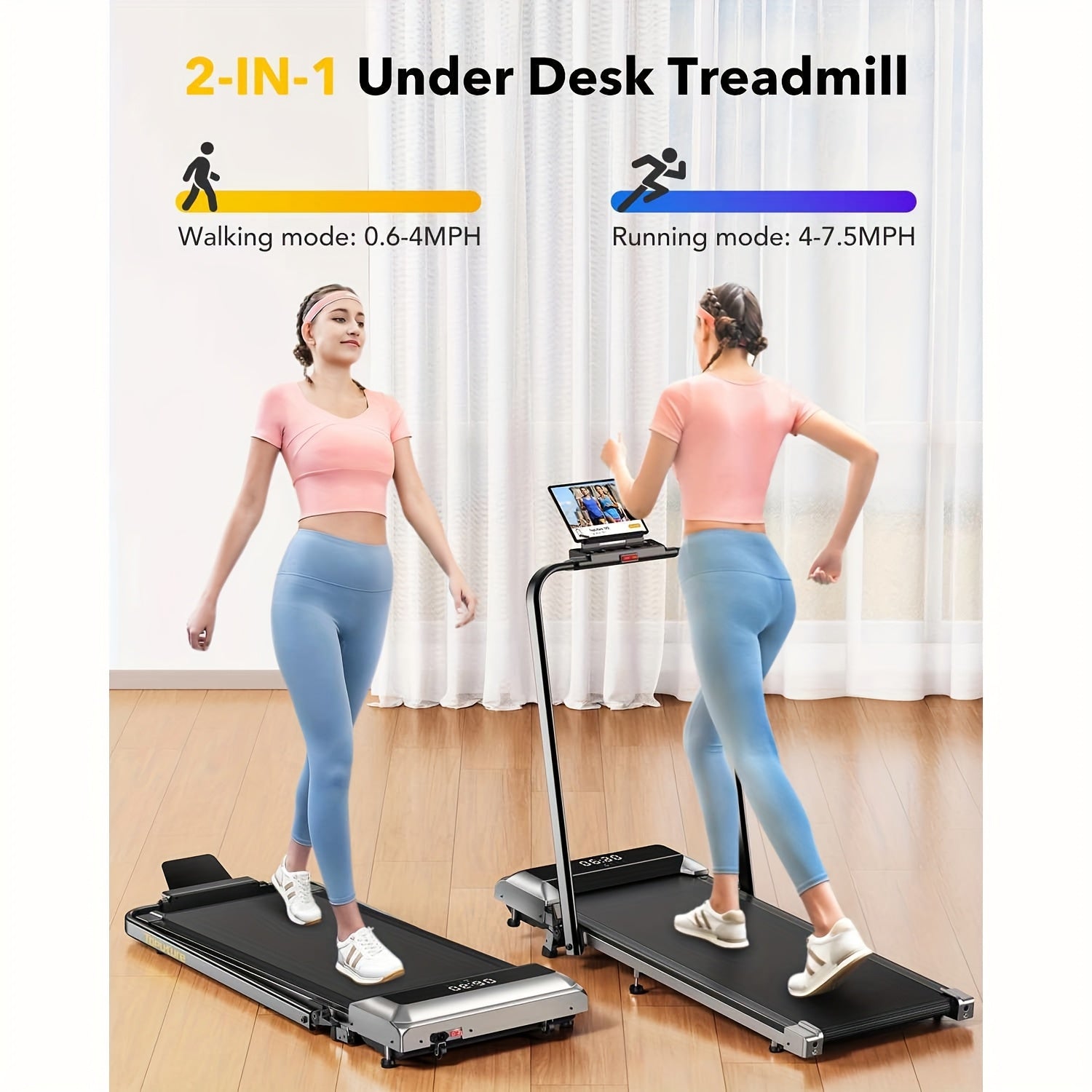 Treadmill Elettrico Pieghevole 2 In 1, Treadmill Sotto Il Treadmill Con Inclinazione, Treadmill Pieghevole Per Casa/ufficio, Treadmill Compatto Portatile Con Telecomando, APP E Display A LED Capacità 136.08KG, Senza Batteria