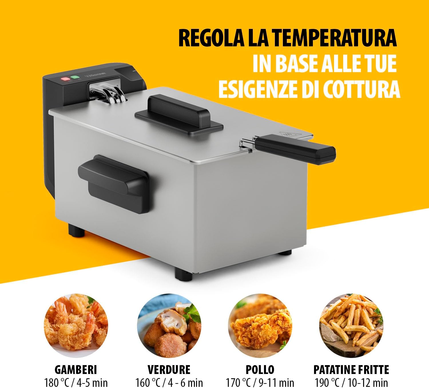 Tristar Friggitrice, 3L Capacità, 2000W, Tecnologia Cool Zone, Acciaio Inossidabile, Termostato Regolabile, Facile da Pulire, Parti Rimovibili, FR-9325