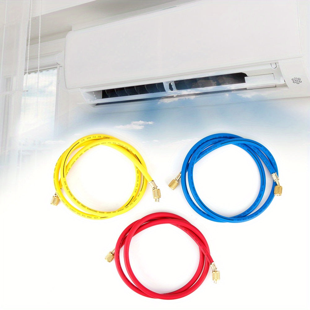 Tubo di Fluoruro per Aria Condizionata Aggiornato 3pz, Tubo di Fluoruro per Aria Condizionata da 1,5 m 600 psi 1/4 pollici Refrigerante Liquido Strumento di Aggiunta Accessorio Tubi di Carica Refrigerante per R22, R134a, R12, R50 e Altri Refrigeranti