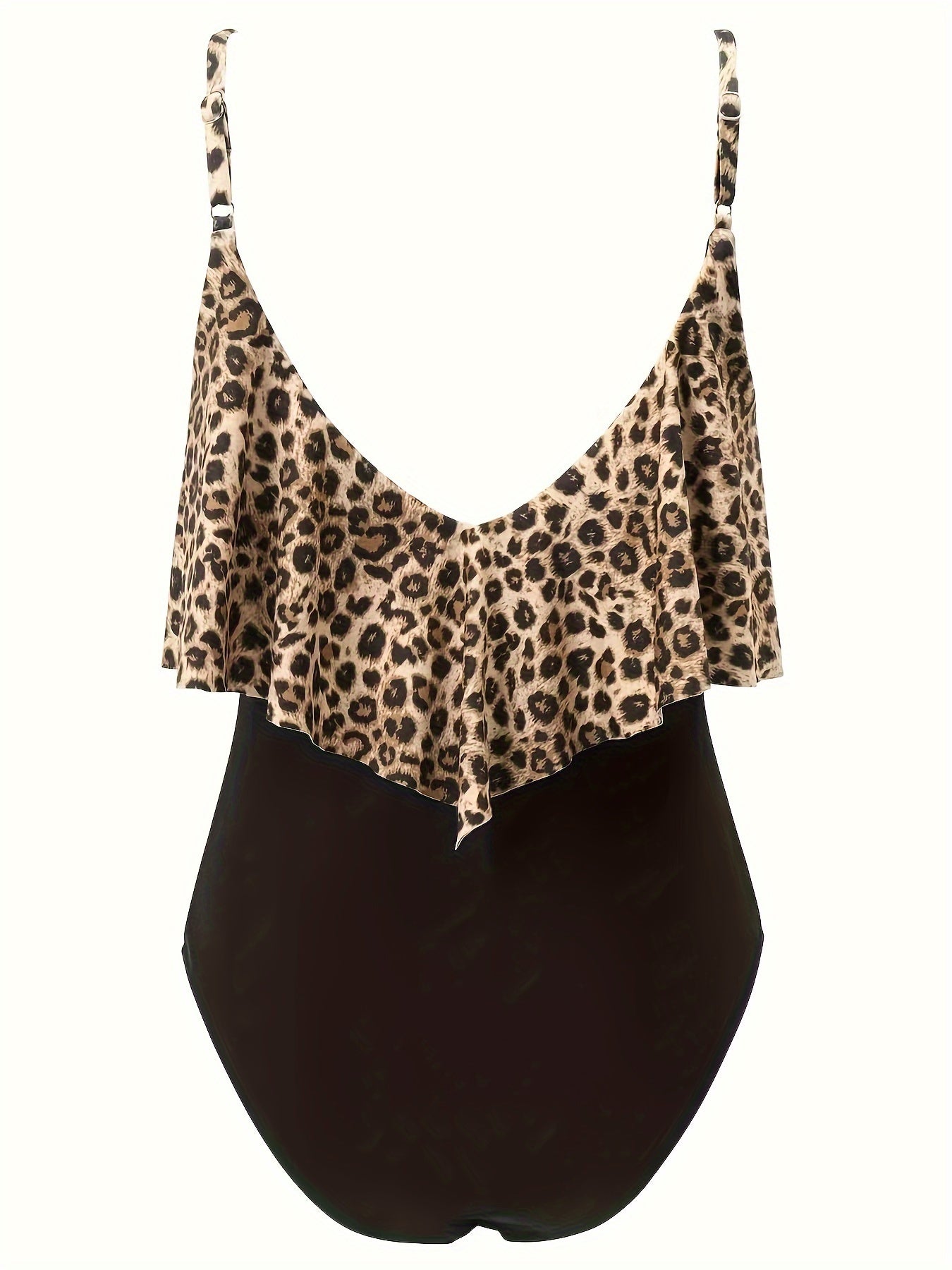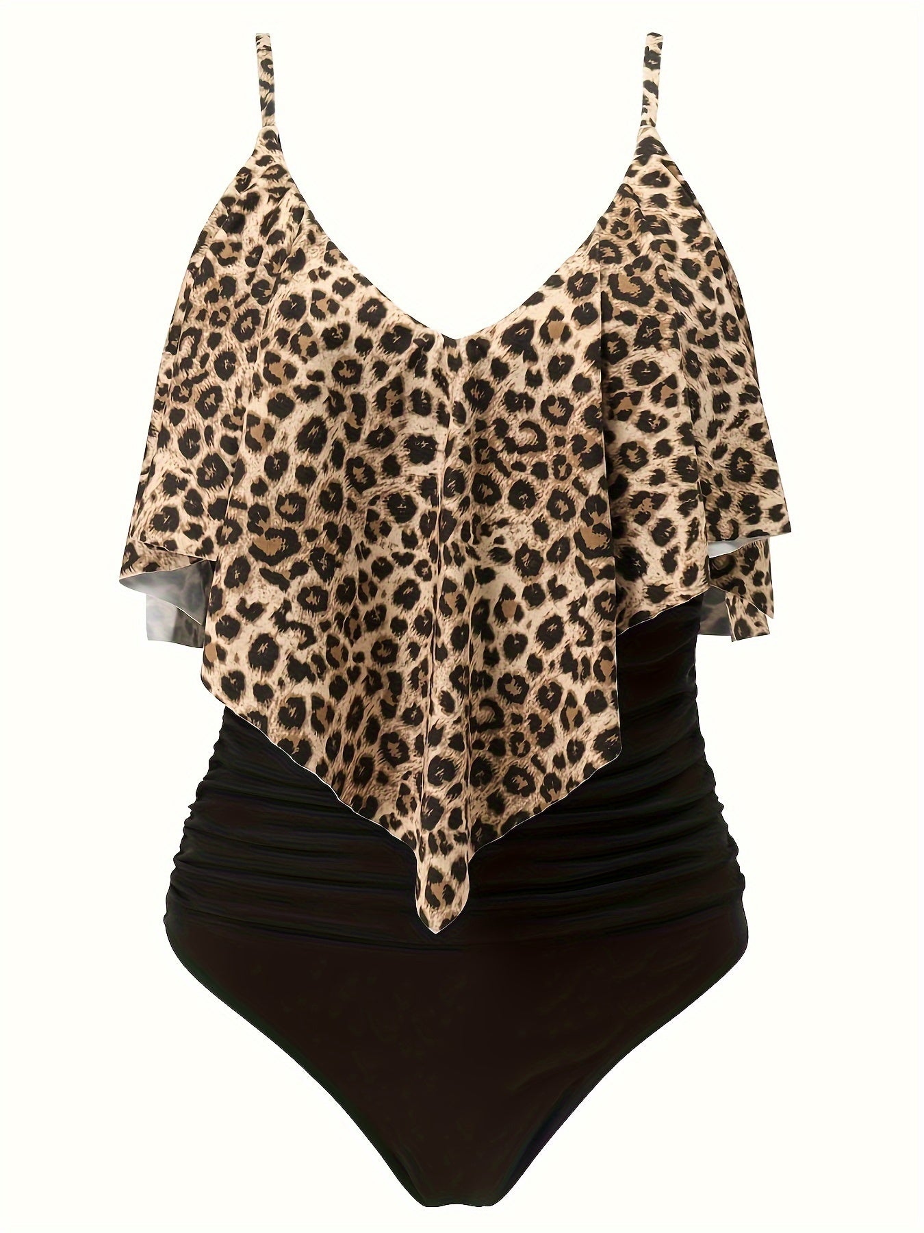 Tuta intera leopardata con scollo a V, schiena arricciata e controllo della pancia, costumi da bagno, abbigliamento e costumi da bagno da donna