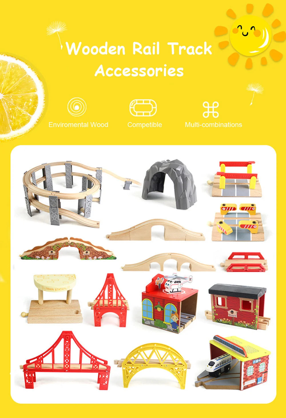 Tutti i tipi di binari del treno in legno Accessori Binari ferroviari in legno di faggio Ponte in legno Tunnel adatto per binari in legno Giocattoli per bambini