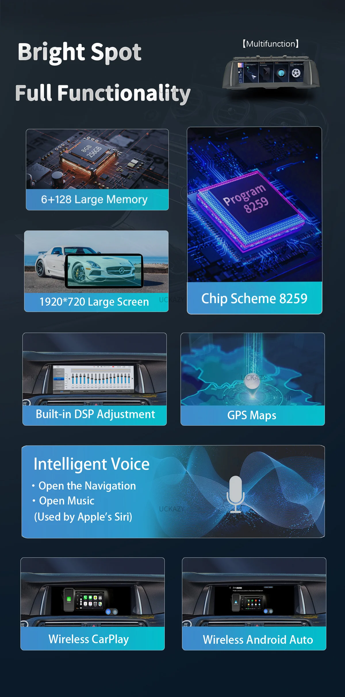 Uckazy 8 Core Wireless Carplay AutoRadio Android 14 For BMW 5 Series F10 F11 2010-2016 CIC NBT Car Multimedia Screen Player GPS Navigation Stereo Carplay Audio