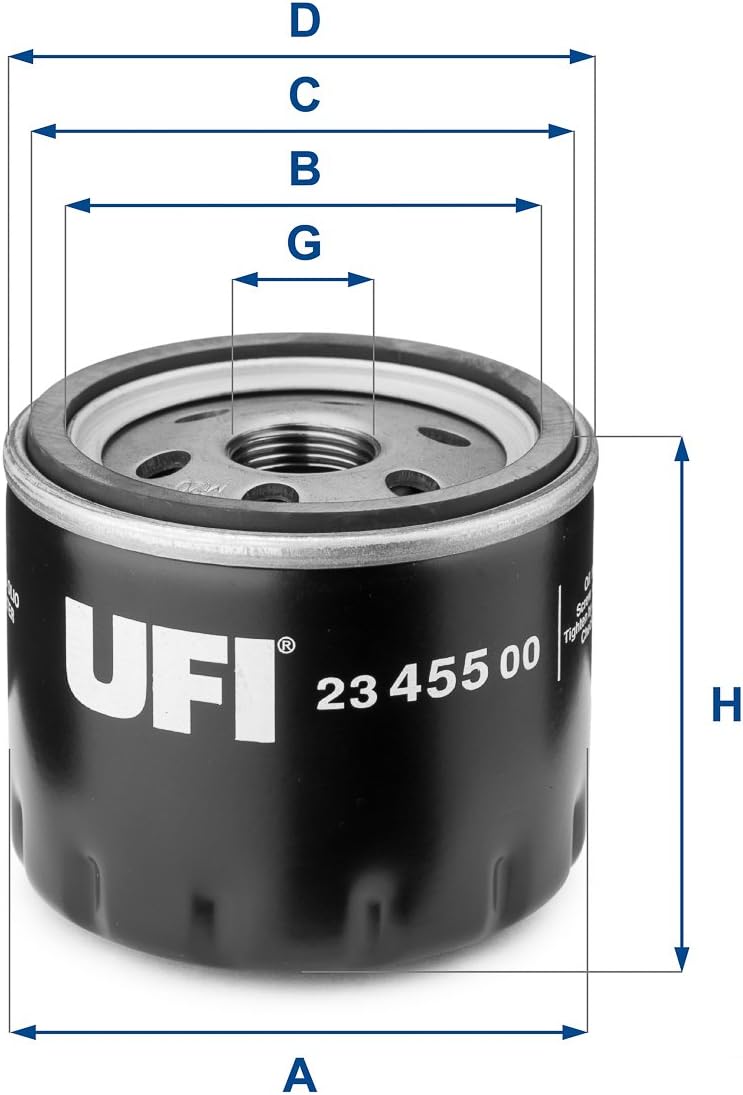 UFI Filters, Filtro Olio 23.455.00, Filtro Olio per Ricambio, Adatto a Auto, Applicabile su Diversi Modelli Alfa Romeo, Fiat e Lancia