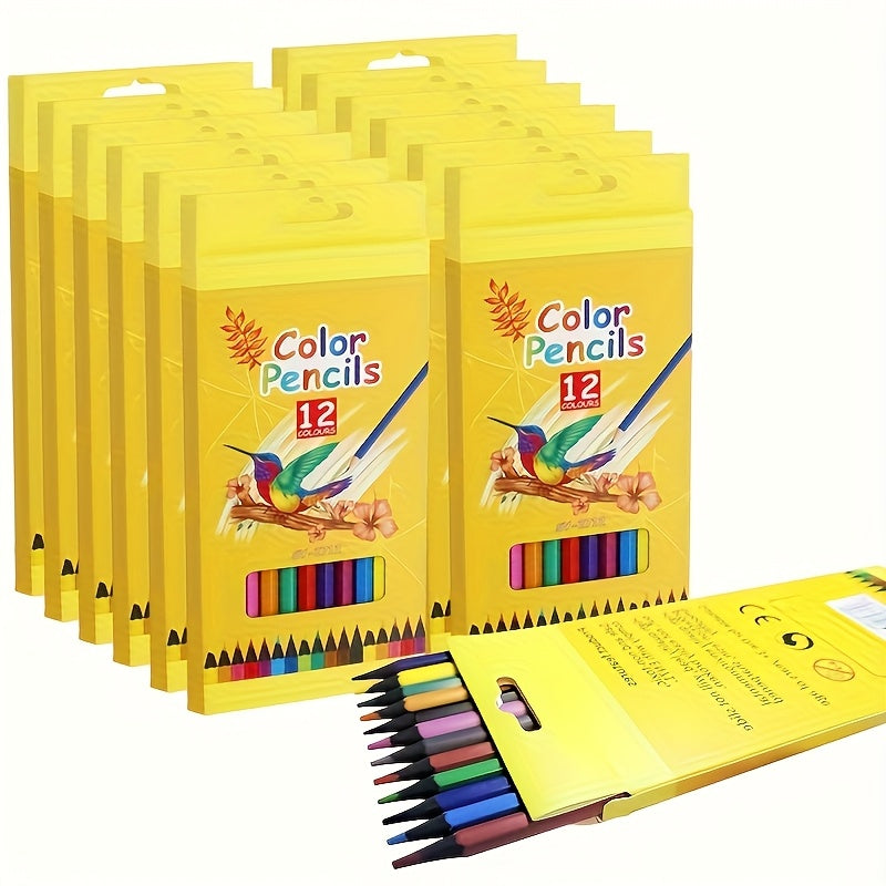 Un set di 12 scatole con 144 matite esagonali pre-affilate, colori e cancellabili per disegno professionale