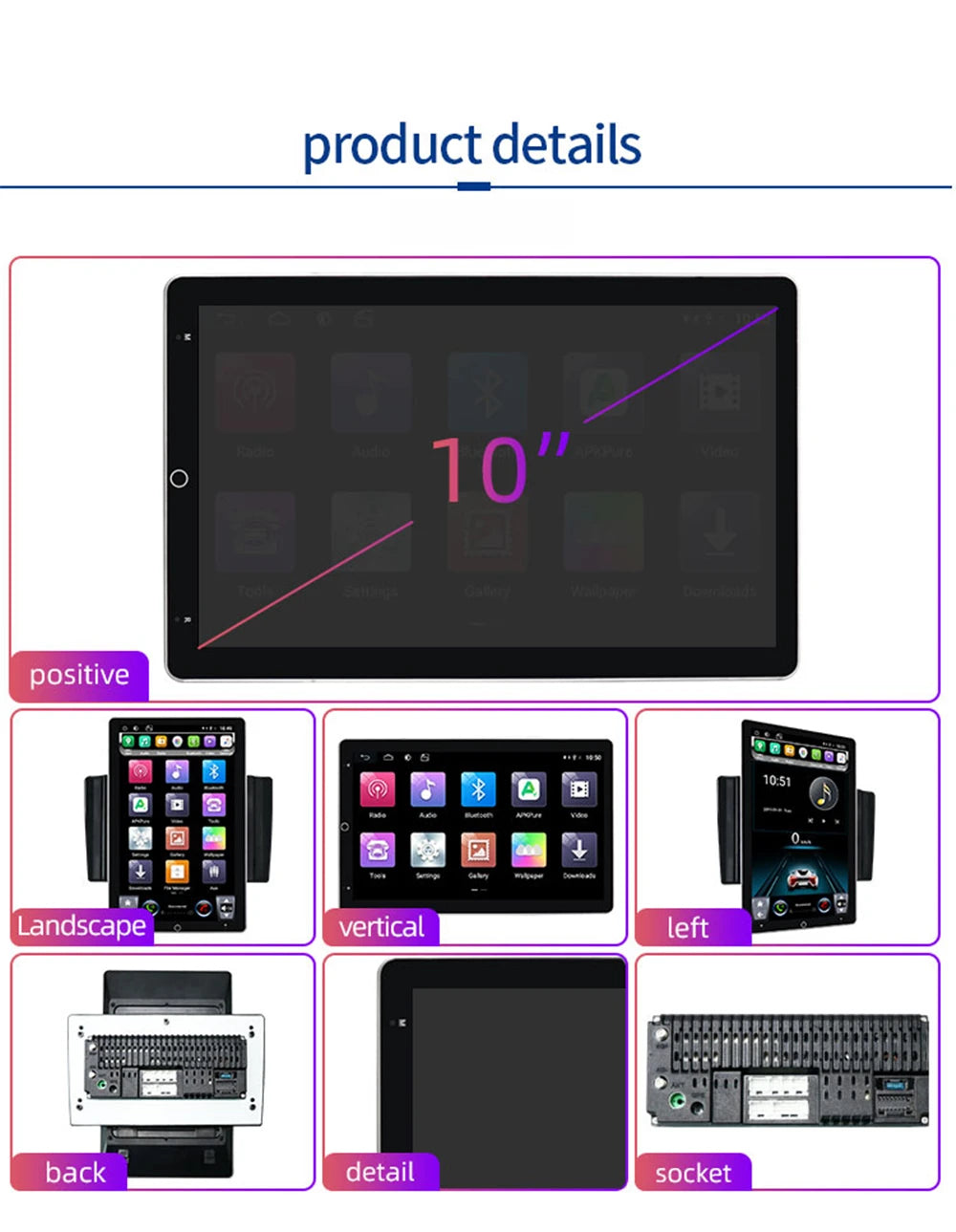 SPECIFICATIONSBrand Name: NoEnName_NullCertification: FCCDigital Media Format: Mp3,MP4,WMA,JPEGDin: Double DinDisplay Size: 10.1"Features -1: 2Din Car playerFeatures-2: Car Radio Multimedia PlayerFor Vehicle... Per saperne di più