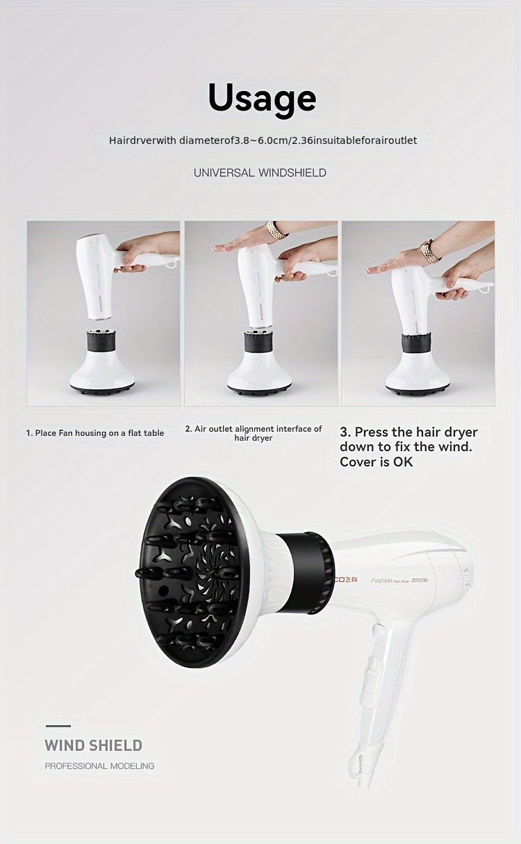 Universal 3.8-6cm Diameter Windshield Hair Dryer Attachment for Curl Enhancing - Professional Styling Tool for Textured Hair with Unscented Curly Hair Diffuser