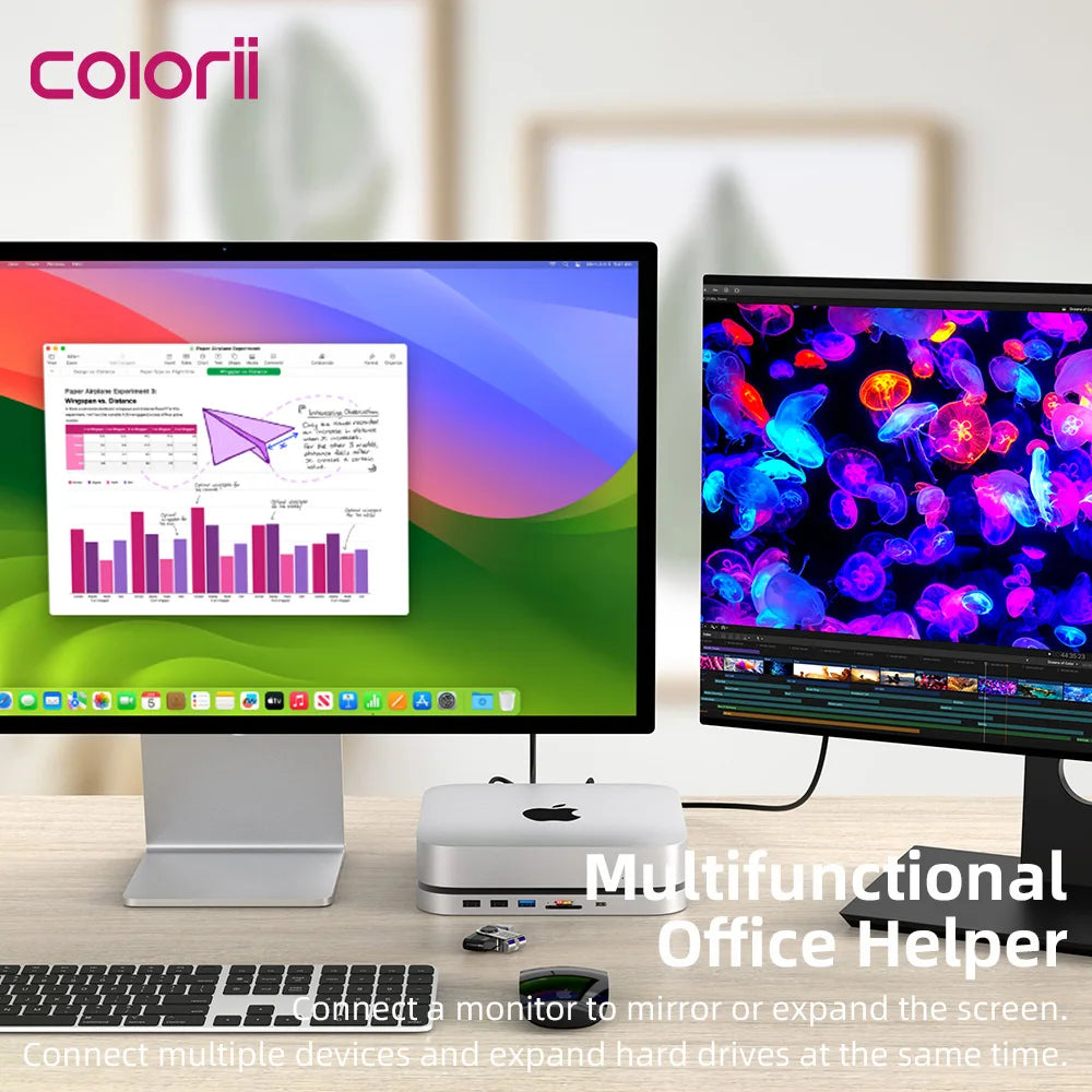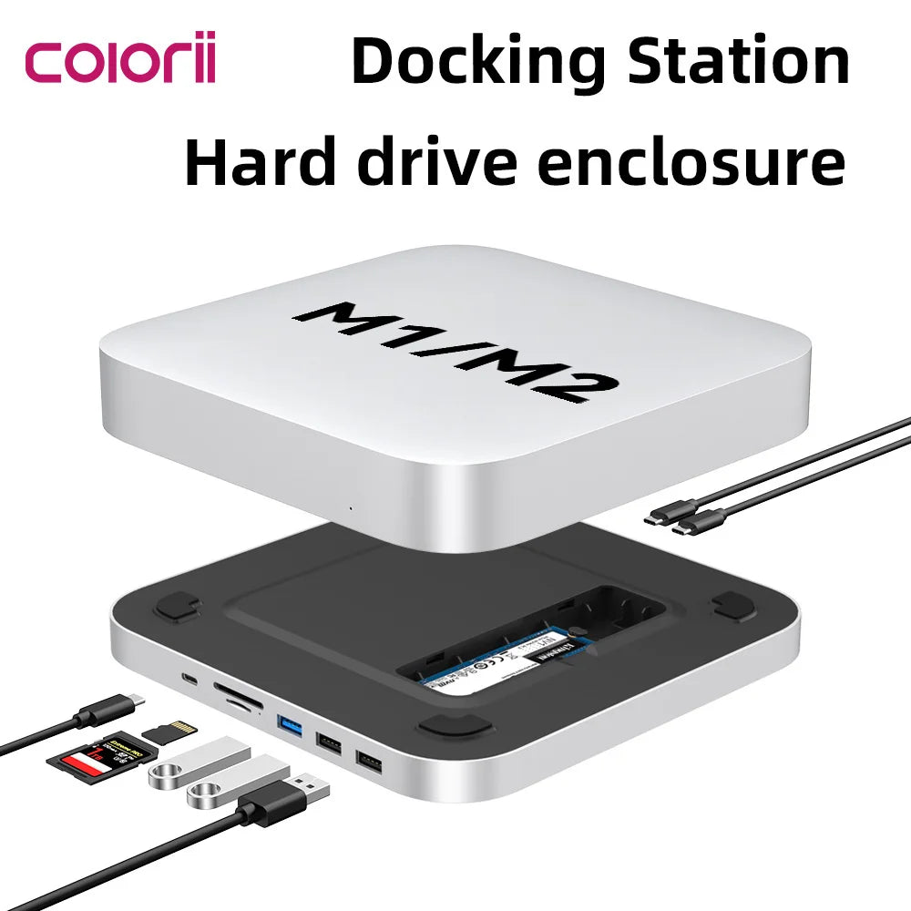 USB C Hub with Hard Drive Enclosure Type C Docking Station Supports NVME/SATA M.2 SSD Case 4K 10Gbps Data M1 M2 for Mac Mini