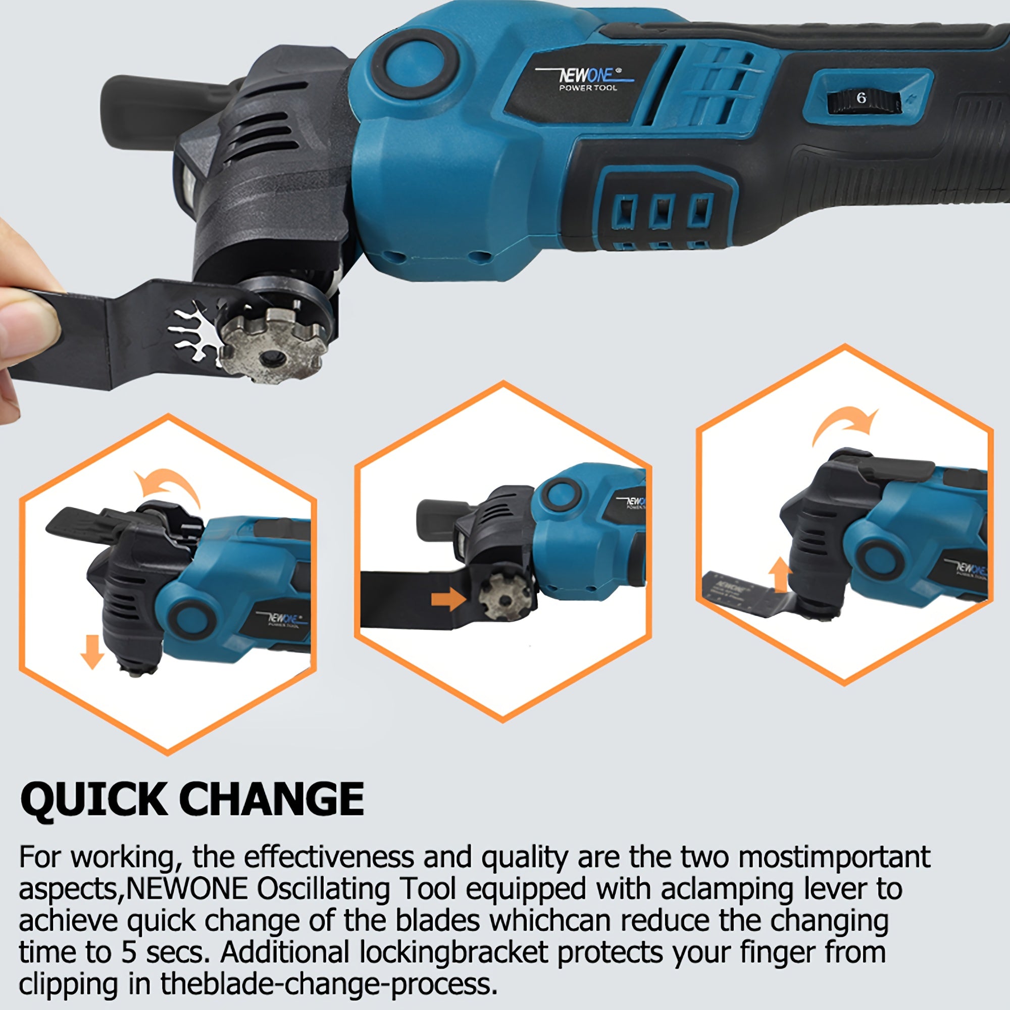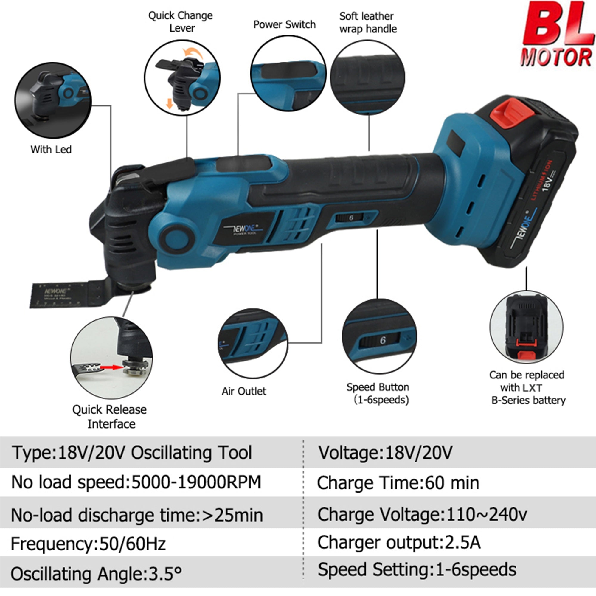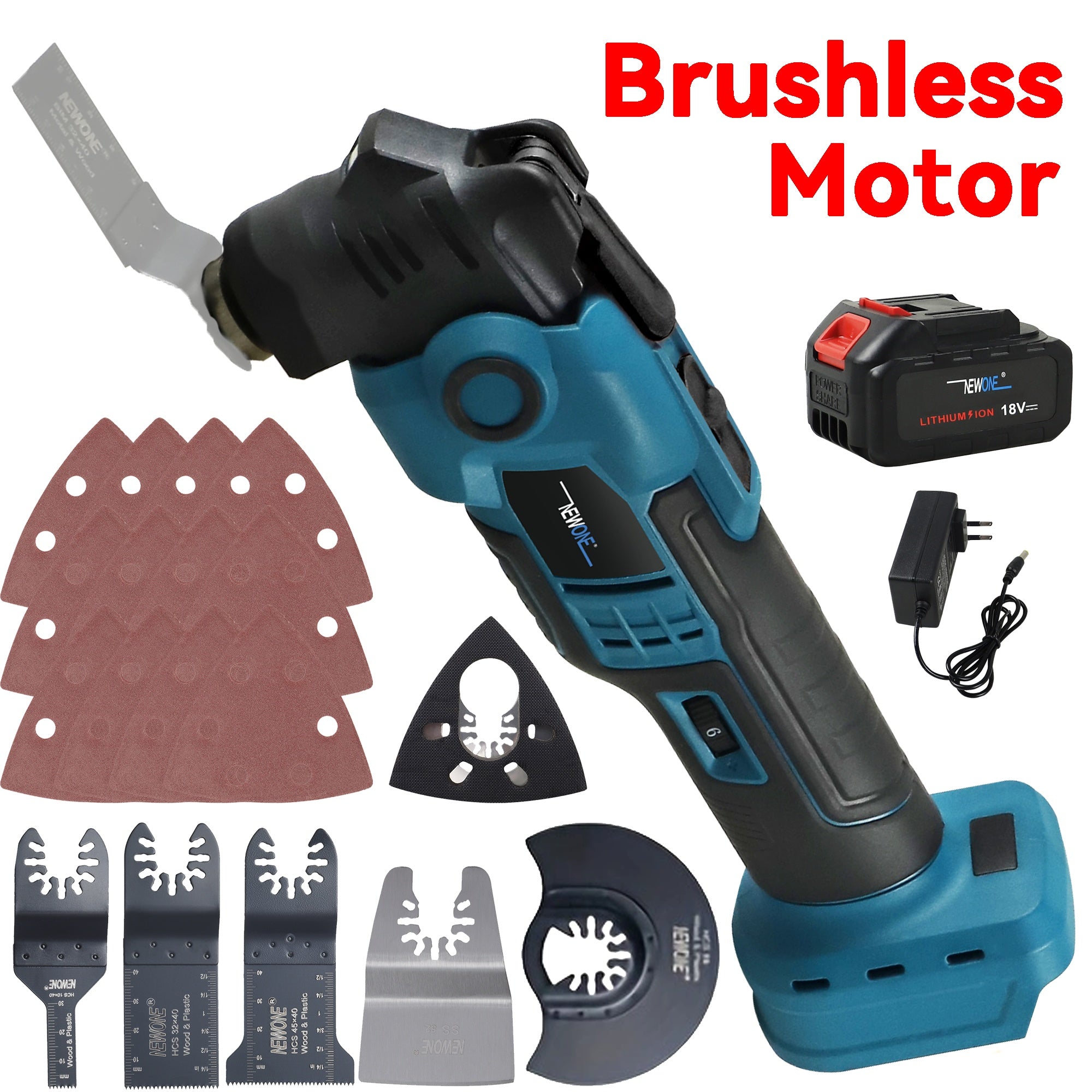 Utensile oscillante a batteria da 18V brushless ANTI-VIBRAZIONE, utensile oscillante a sgancio rapido, regolazione della velocità a 6 velocità, angolo di oscillazione di 3.5 °, adatto per progetti di lavorazione del legno e uso domestico