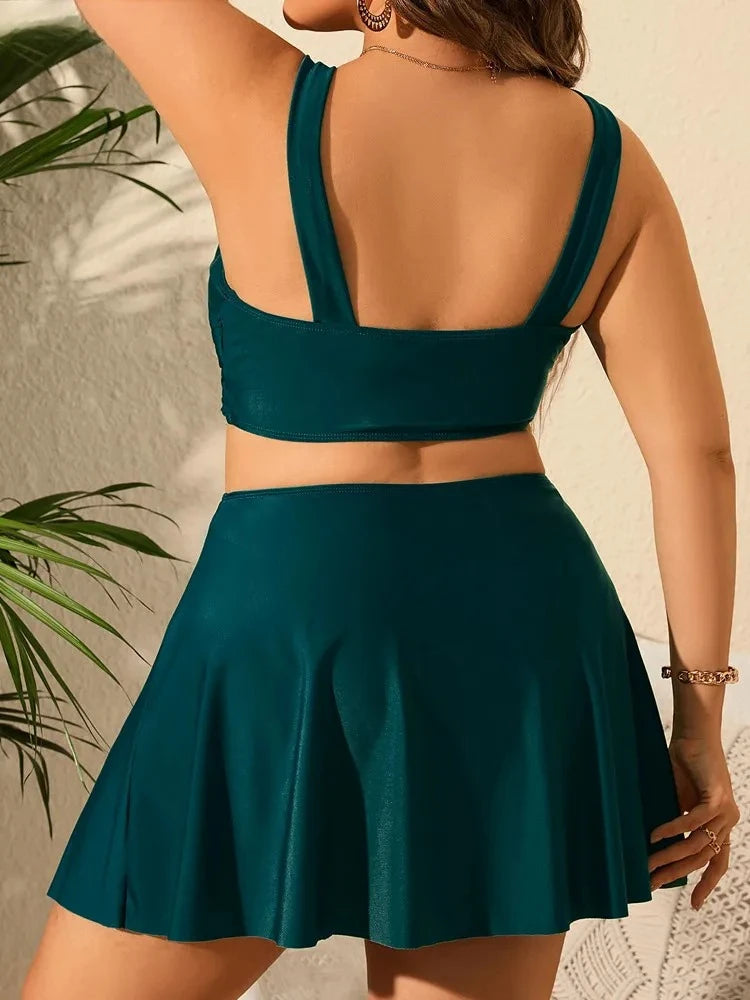 Valavalaking Solid 3 Piece High Waist Skirt Plus Size Strapped Bikini Set Women Sexy Big Swimsuit Curvy Chubby Bathing Suit