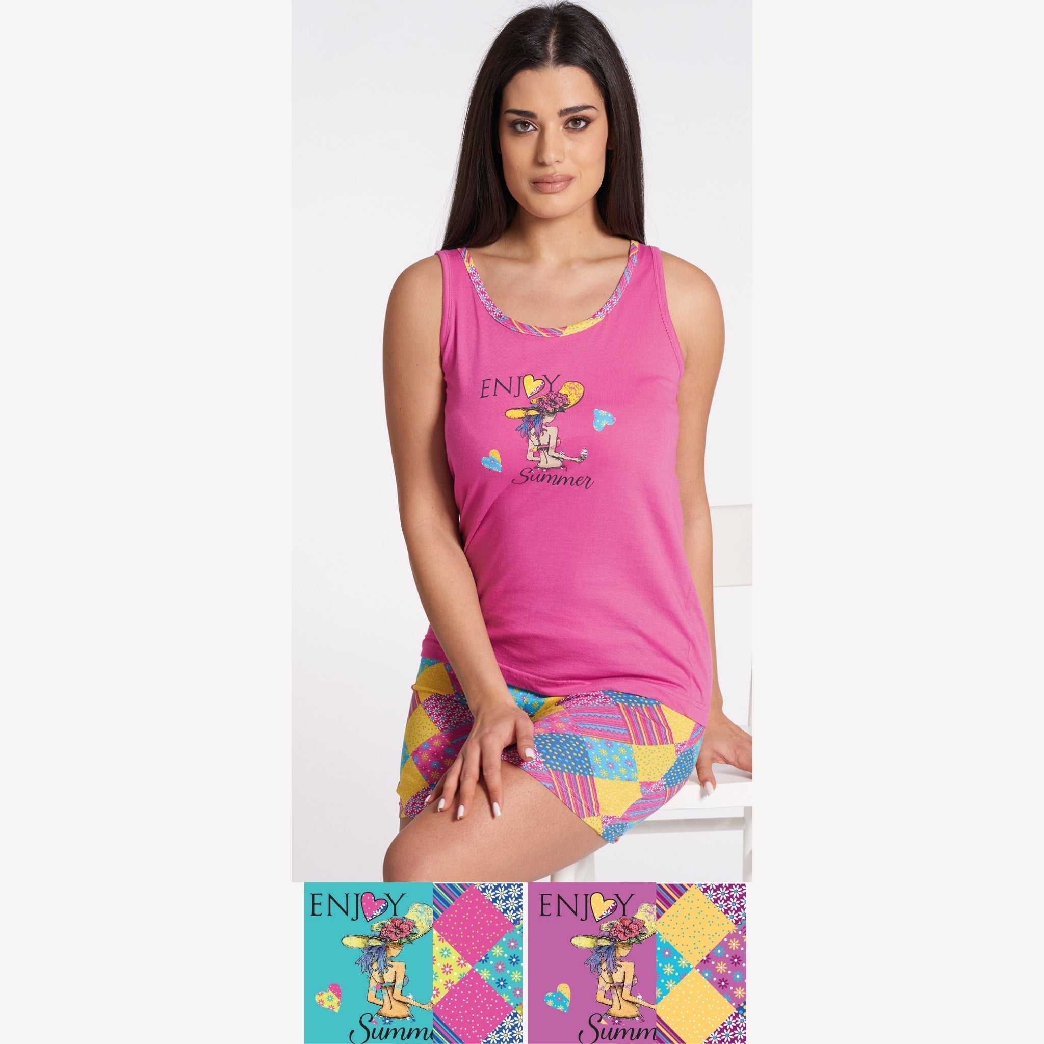 Vanue' Estate Pigiama Donna Corto Con Spalla Larga In Puro Cotone Con Stampa Art. Vs0142pgd