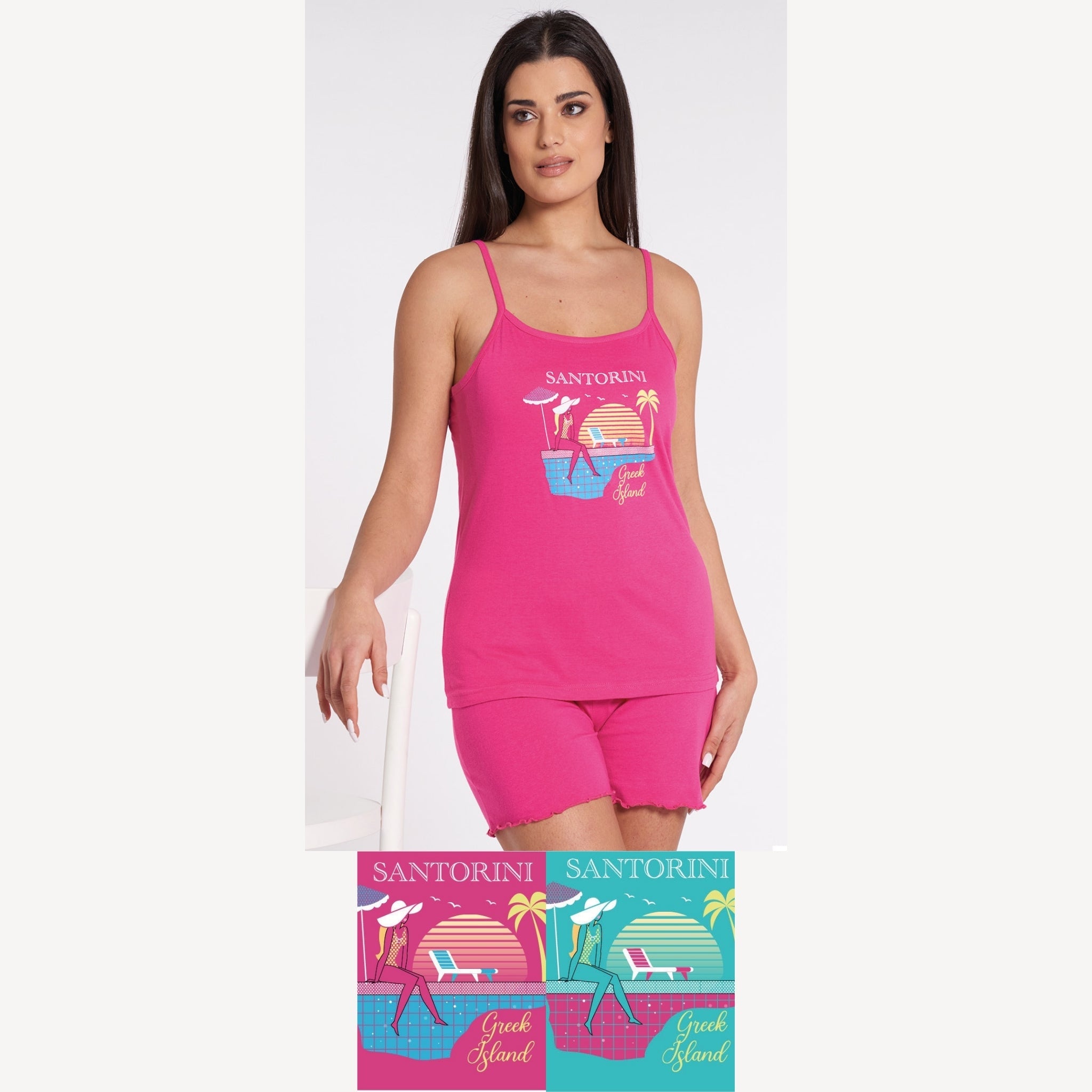 Vanue' Estate Pigiama Donna Corto Con Spalla Stretta In Puro Cotone Con Stampa Art. Vs0340
