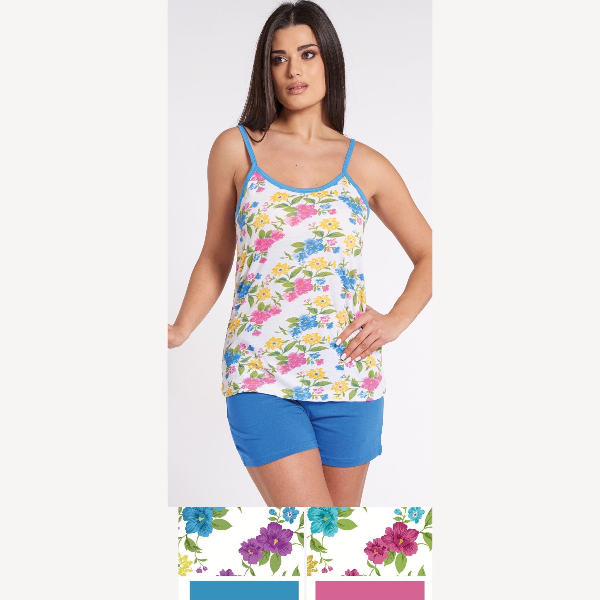 Vanue' Estate Pigiama Donna Corto Spalla Stretta Fantasia In Puro Cotone Art. Vs0113pb