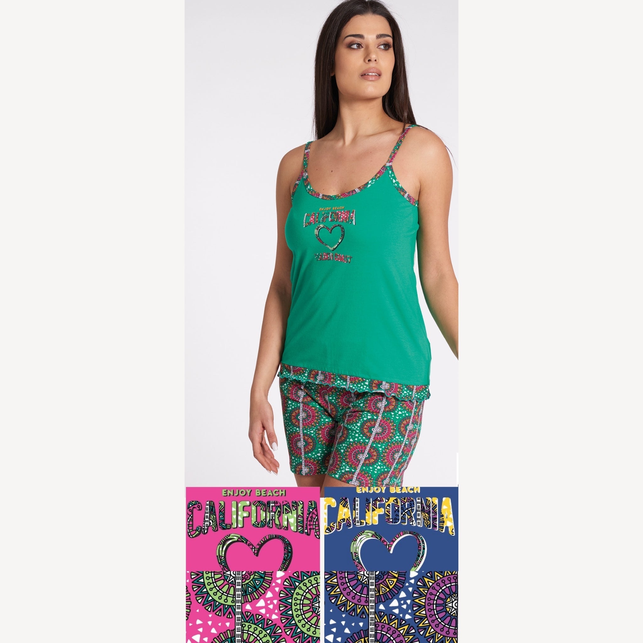 Vanue' Estate Pigiama Donna Corto Spalla Stretta In Puro Cotone Con Stampa Art. Vs0167pb