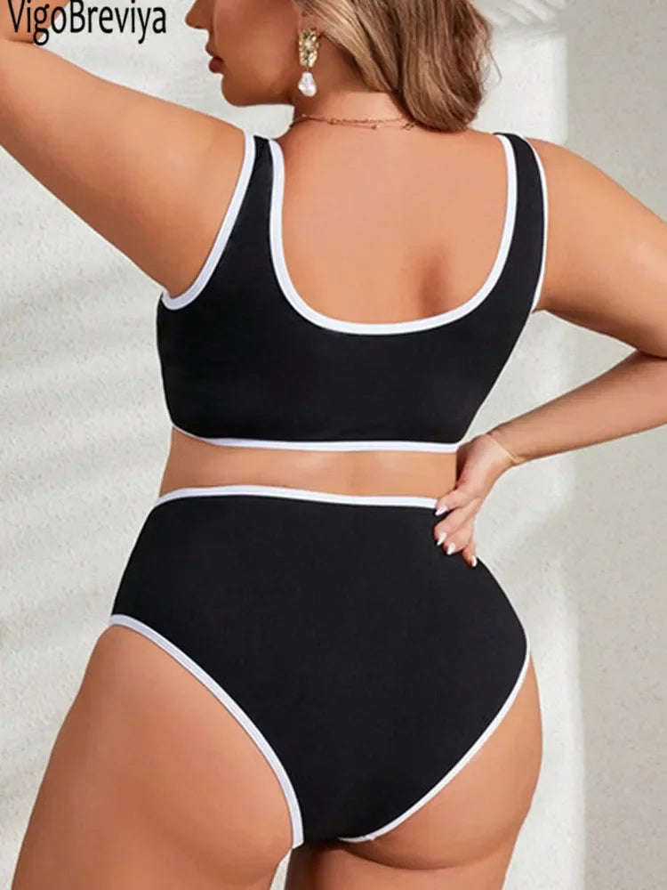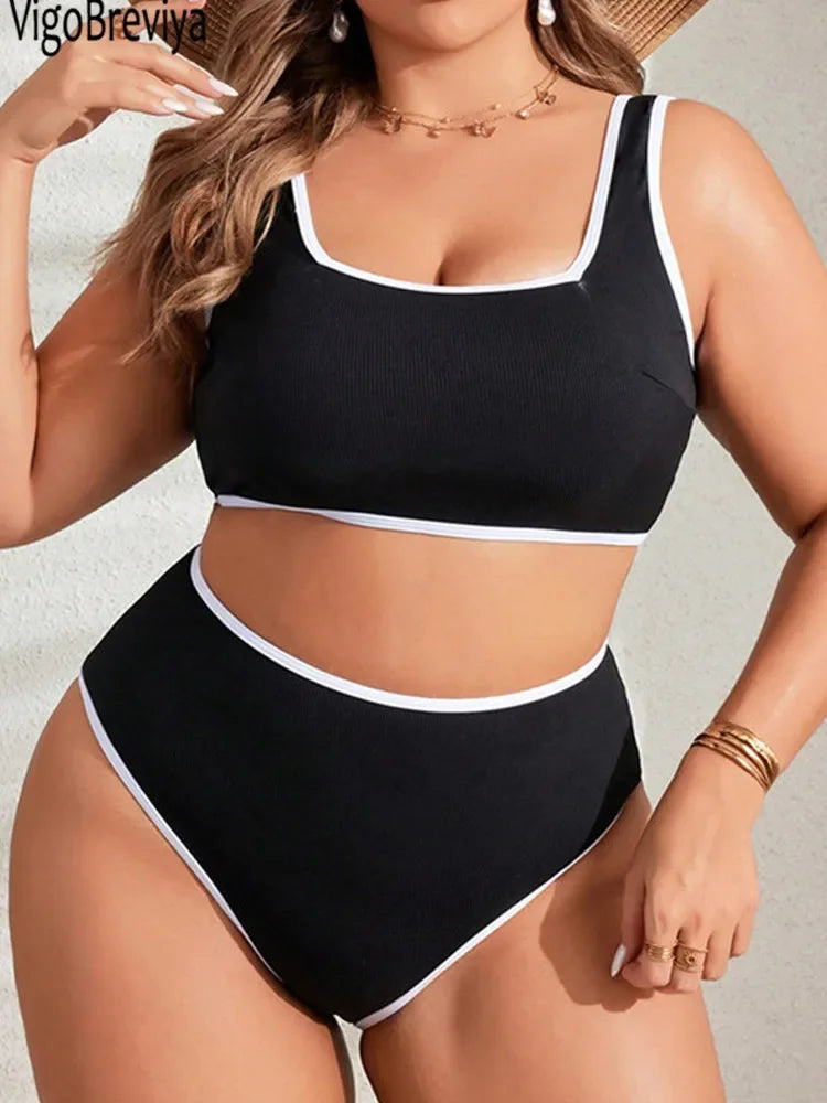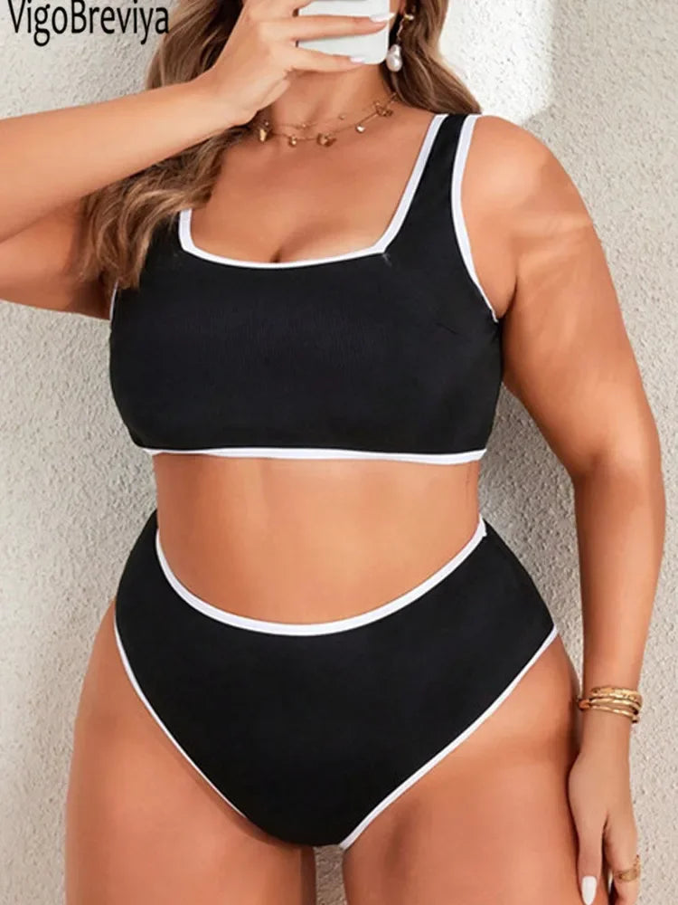 VigoBreviya 2025 Solid Strapped 2 Piece Plus Size Bikini Women High Waist Curvy Swimsuit Brazilian Beach Lady Big Bathing Suit