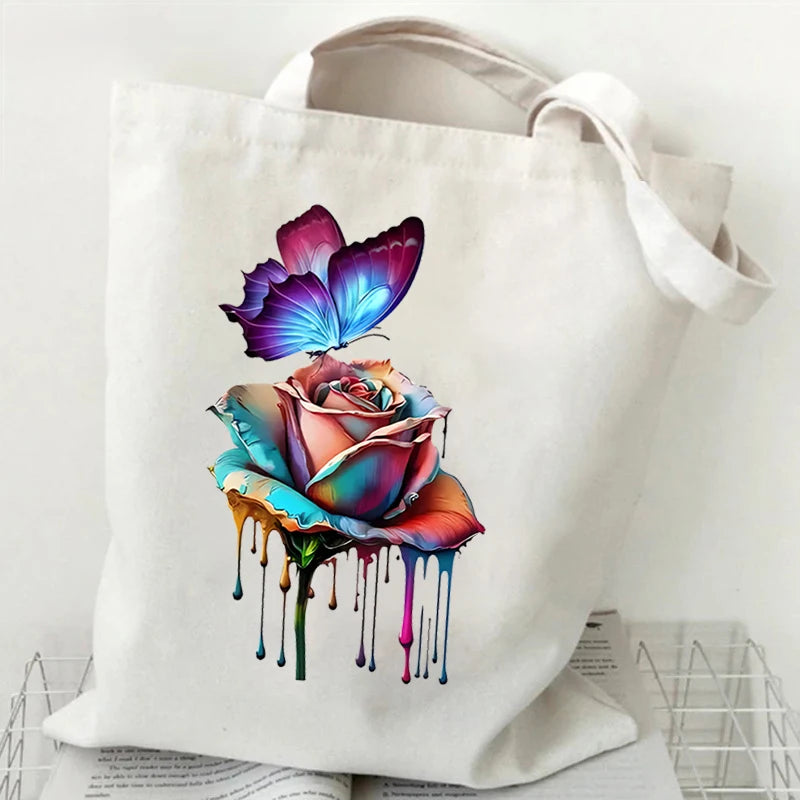 This bag is perfect for stashing all your everyday essentials. Whether you're headed to class, hitting up the coffee shop with your bestie, or just running errands around town, this bag has got you covered. It’s not too big, not too small - it’s just right, a perfect size for everyday use. The canvas material is sturdy and durable, so you can be sure that this bag will last you for seasons to come. It’s totally worth the investment. Also, did we mention how cute the floral print is? It’s the perfect way to add a touch of personality to any outfit. It's a whole serve. We're talking about sustainable fashion with this bag, less waste for a better earth. It's not just a purchase; it's a commitment to looking good and feeling good about your impact. Snag one, you won't regret it, period!
