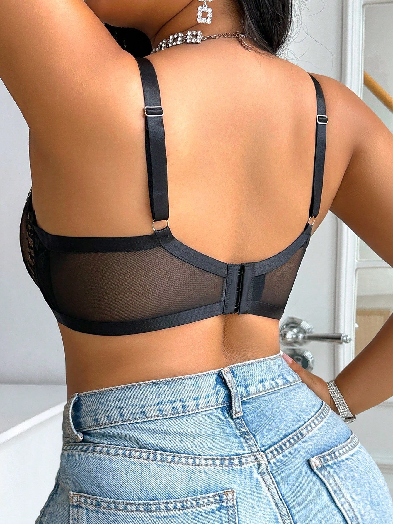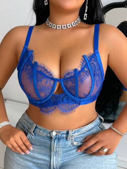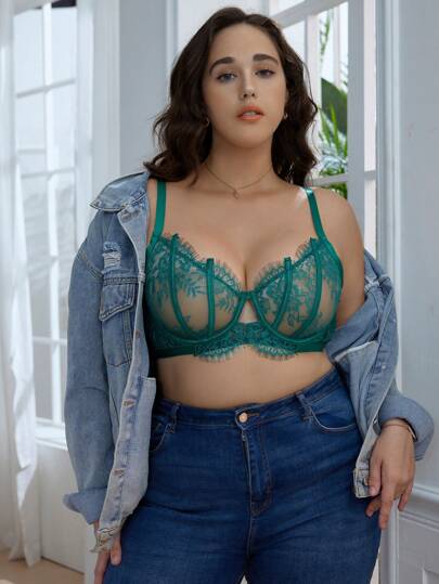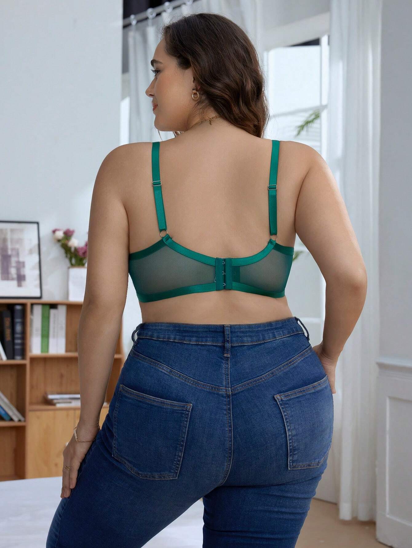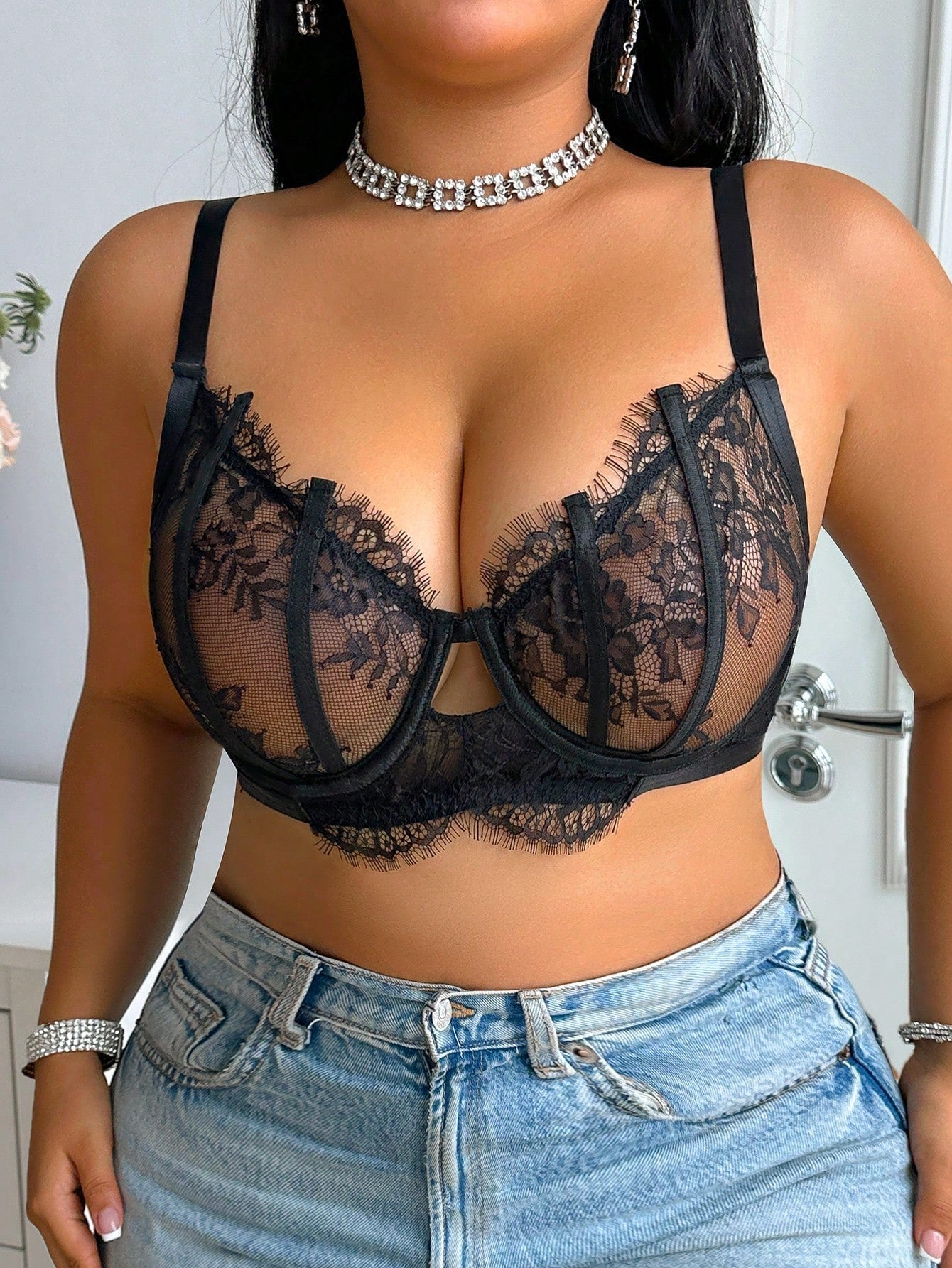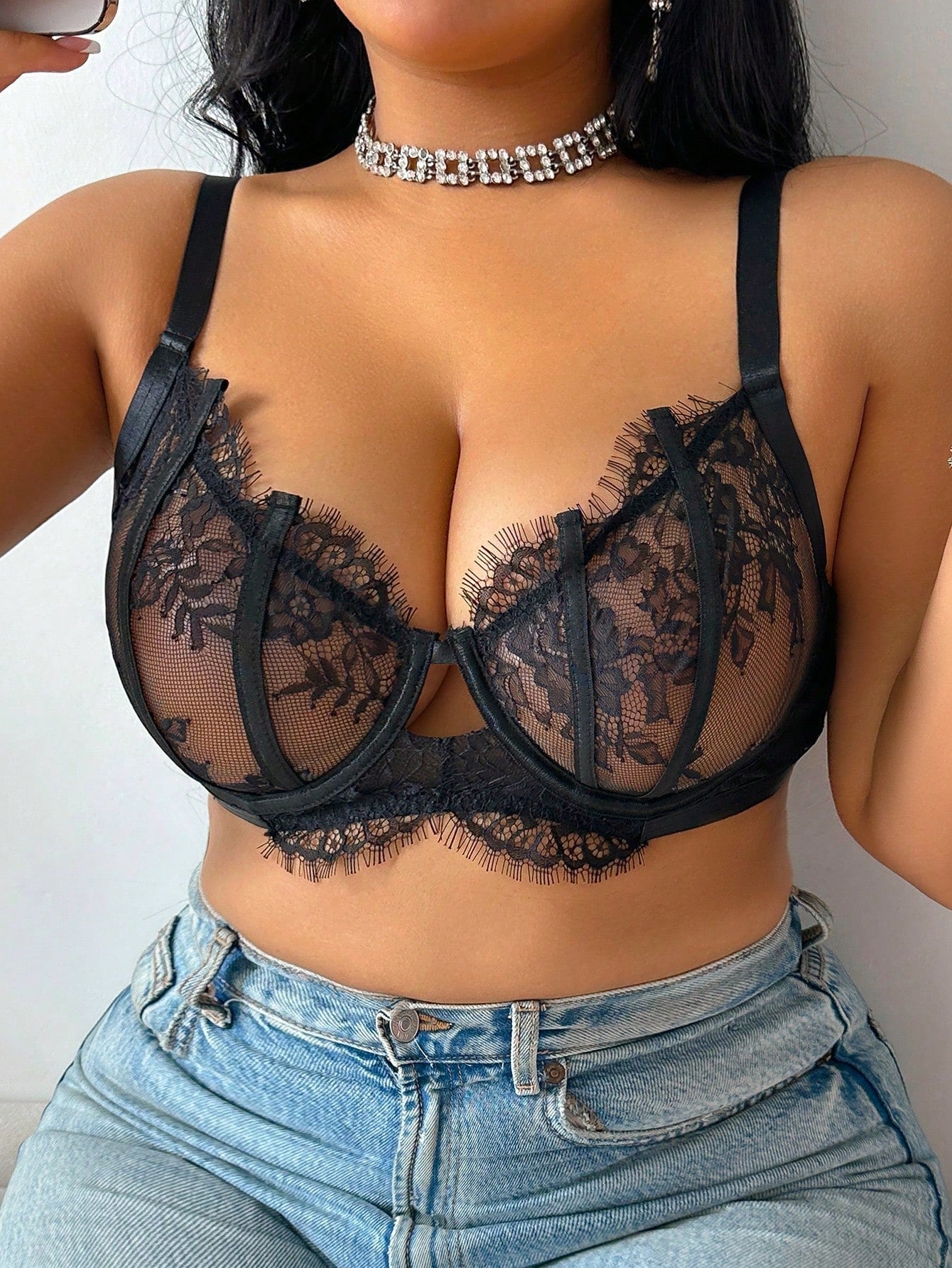 Vintage Full-Coverage Plus Size Bra With Wire, Romantic French Contrast Lace, Everyday Wear Lingerie