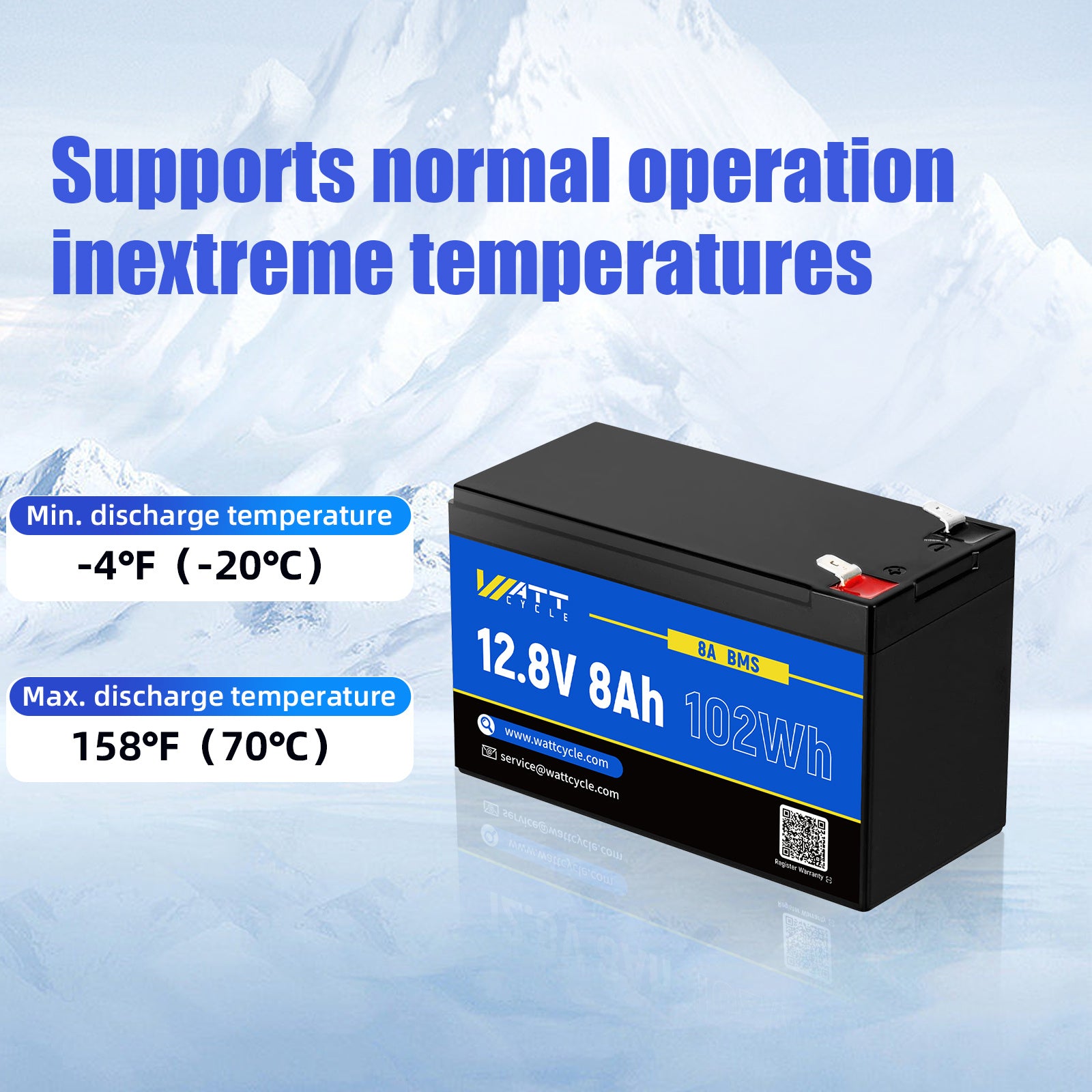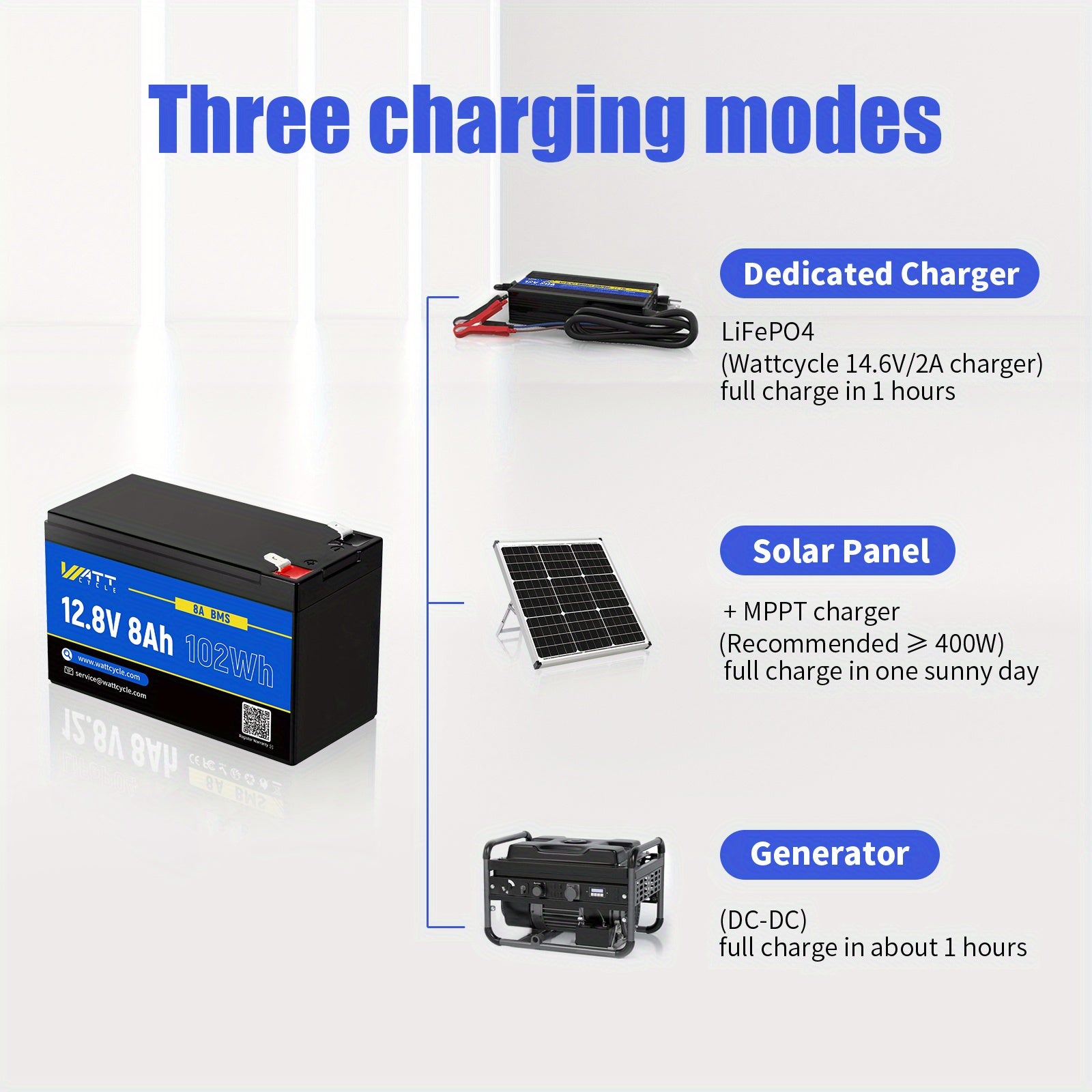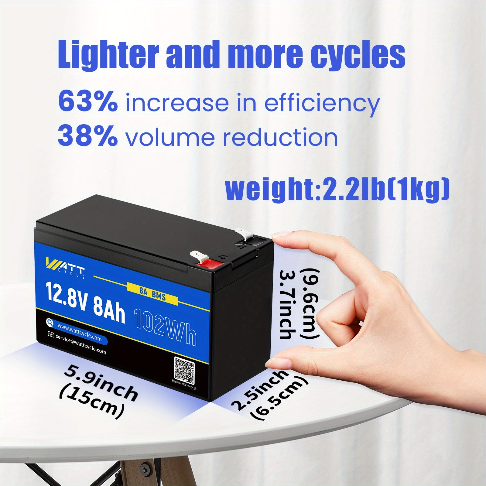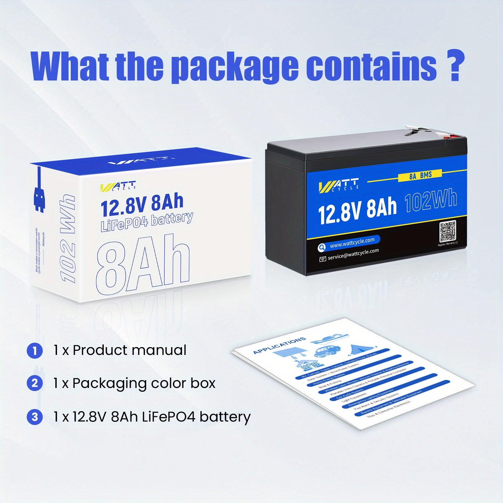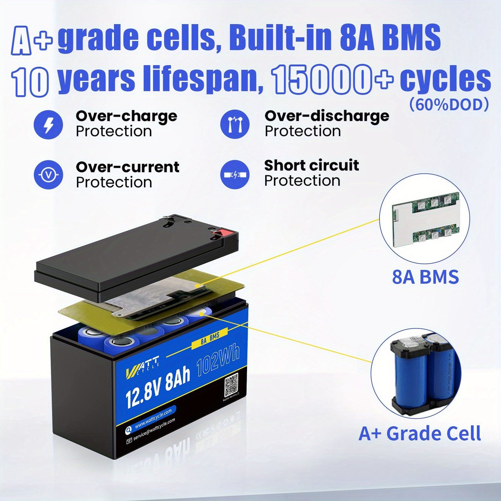 WattCycle 12V 8AH/ 12AH Batteria LiFePO4, Fino A 20000 Cicli, Protezione Integrata 8A/ 12A BMS, Perfetta Per Campeggio All'aperto, Automobili, Marine, Carri Da Golf, Supporta La Ricarica Solare
