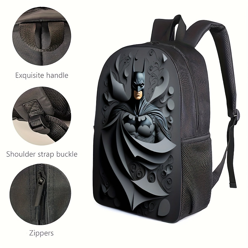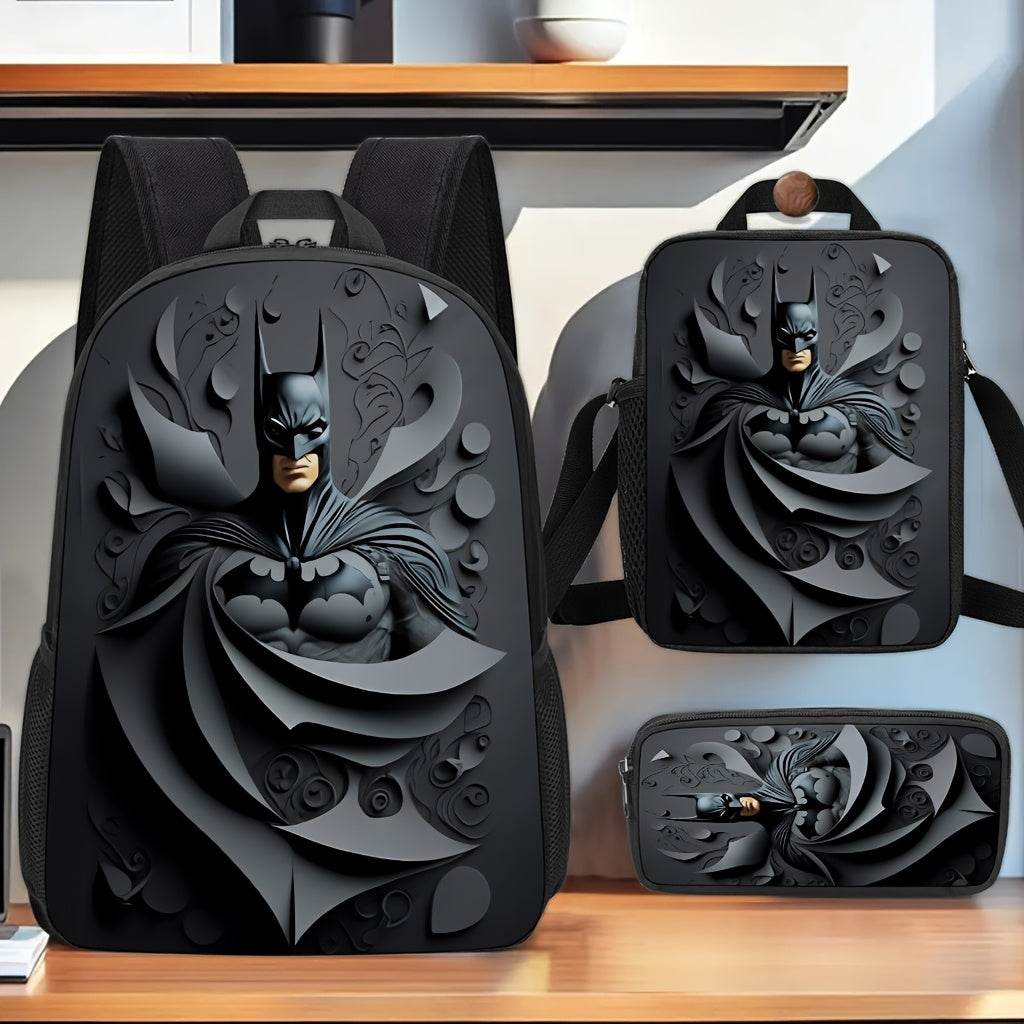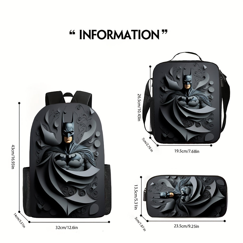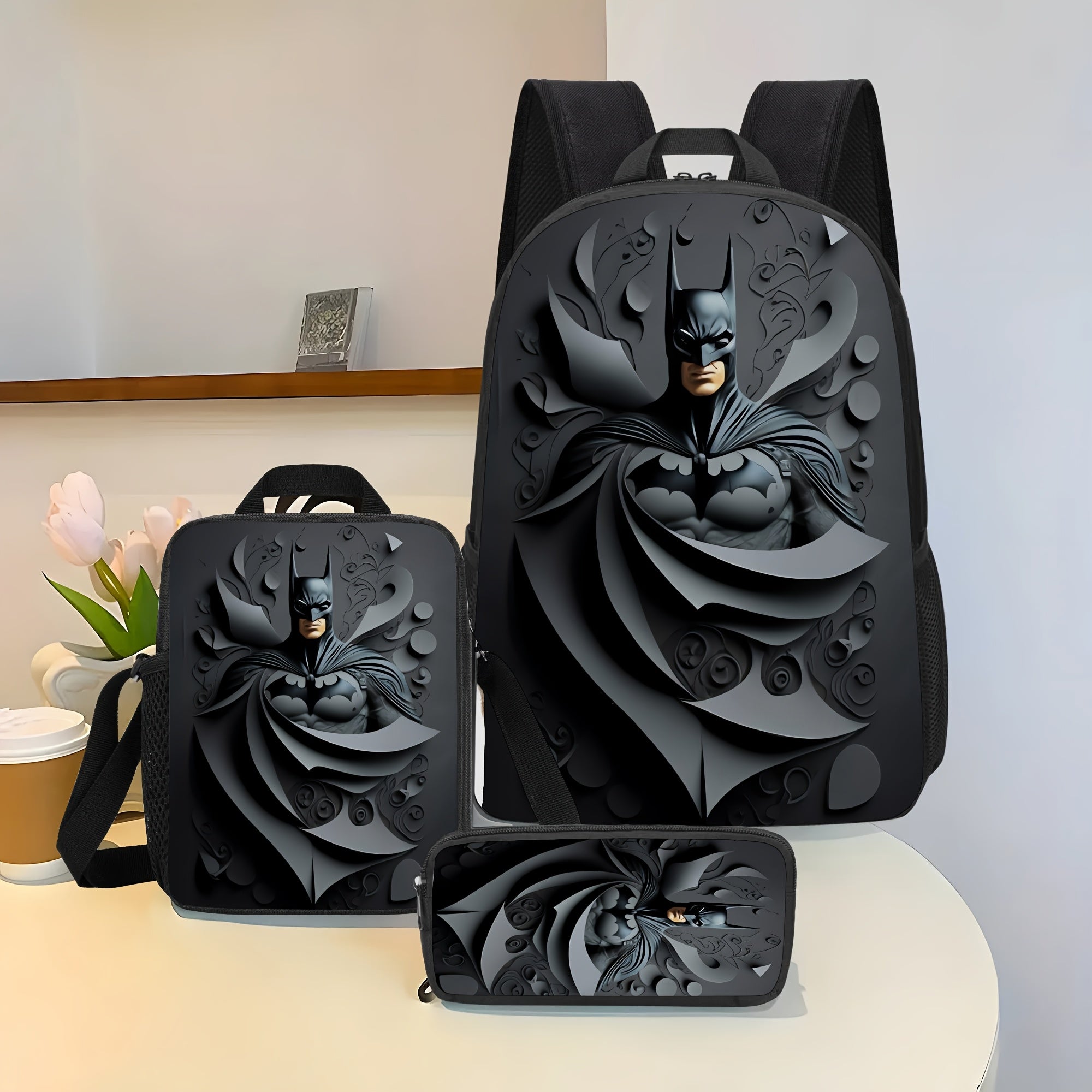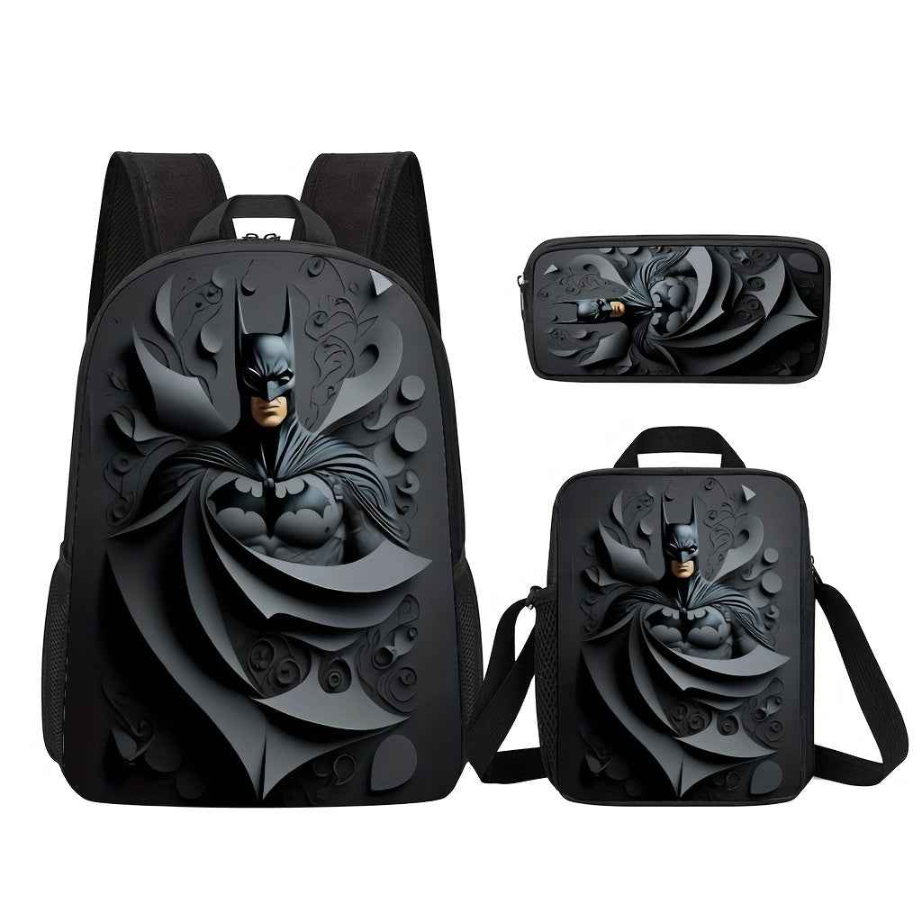WB Set di 3 Pezzi Zaino Batman Cartoon per Uomini e Donne, Inclusa Borsa Scolastica, Astuccio Portapenne e Lunch Box. Zaino Studentesco Adatto a Entrambi i Generi, Grande Capacità per Pendolarismo Quotidiano Non Contatto Alimentare