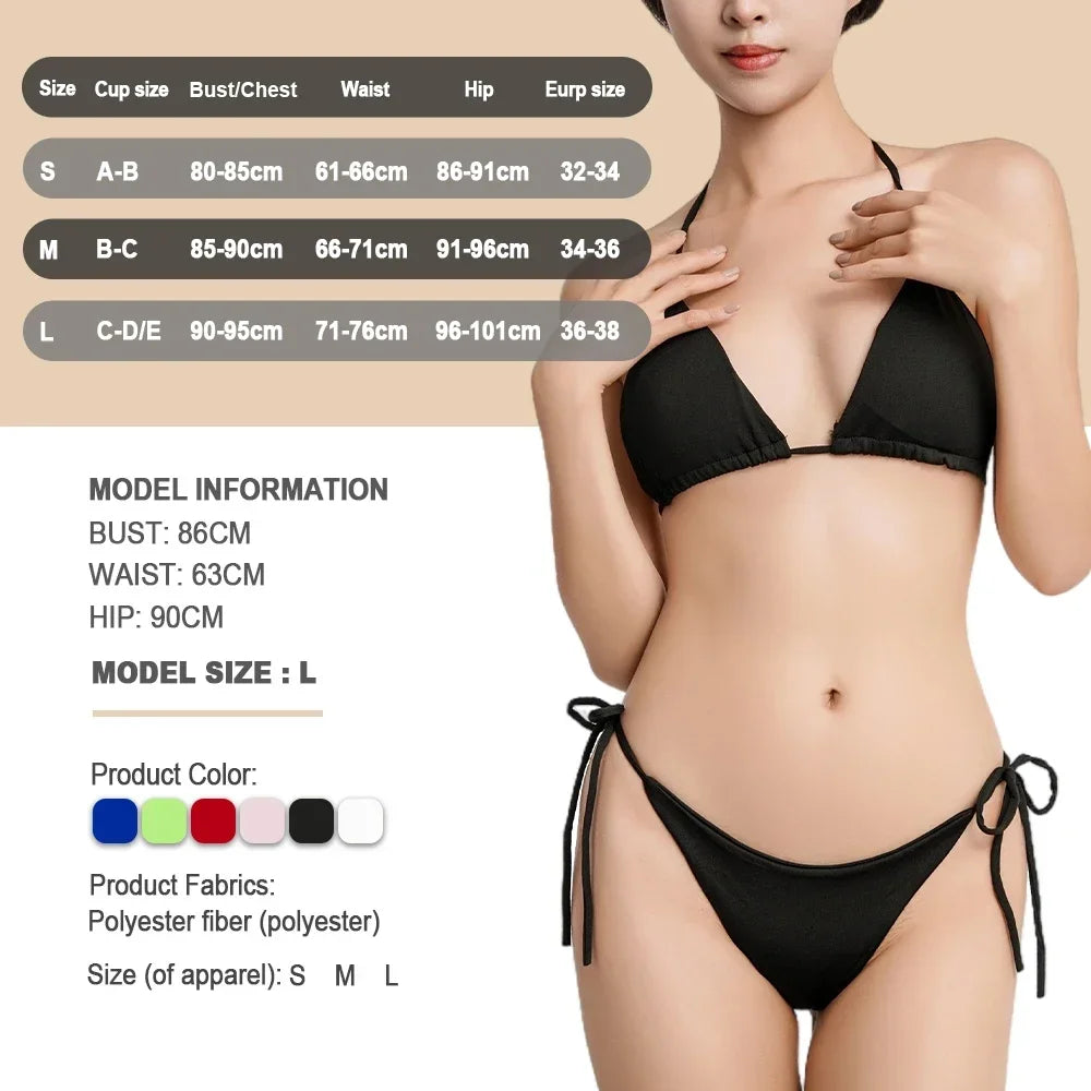 Women Two Pieces Padded Bikini Set Sexy Bra Side Tie Thong Swimsuit Three-point Bandage Brazilian Style Swimwear Biquinis