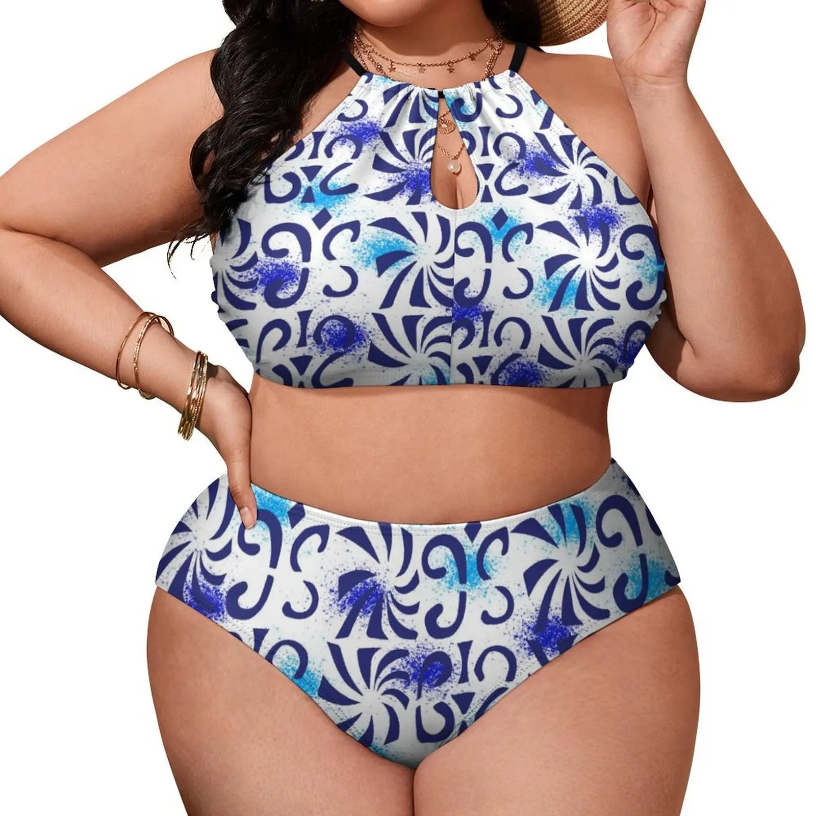Women'S Summer Must-Have Swimming Fashion Set Polynesian Custom Wholesale Vintage Print Design Plus-Size Halter Bikini