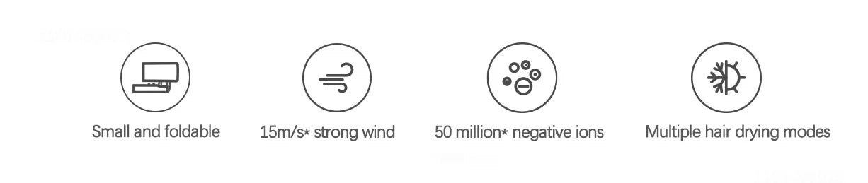 Can be folded and stored | 15M/S strong wind power | 50 million negative ions | multiple hair drying modes