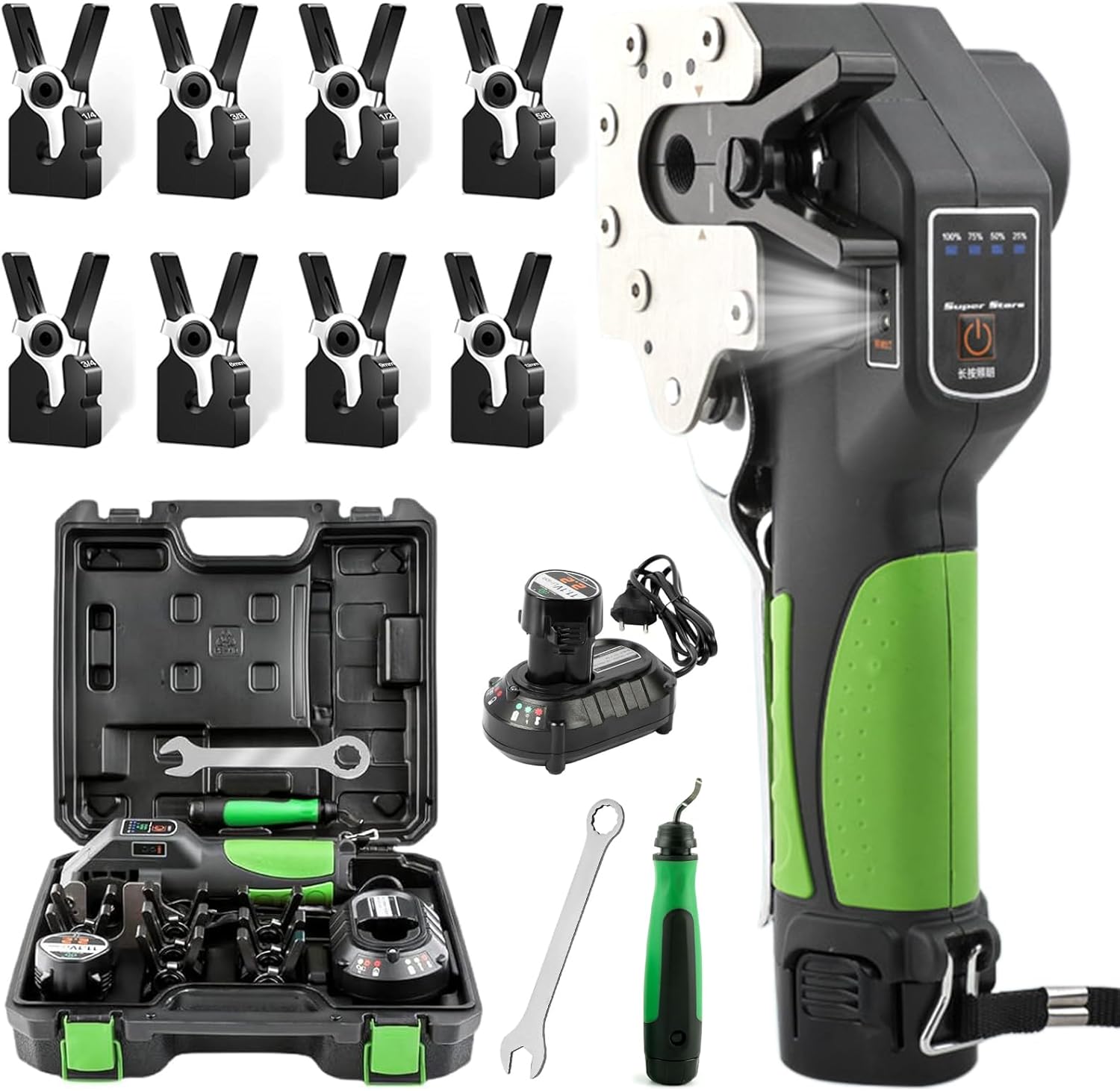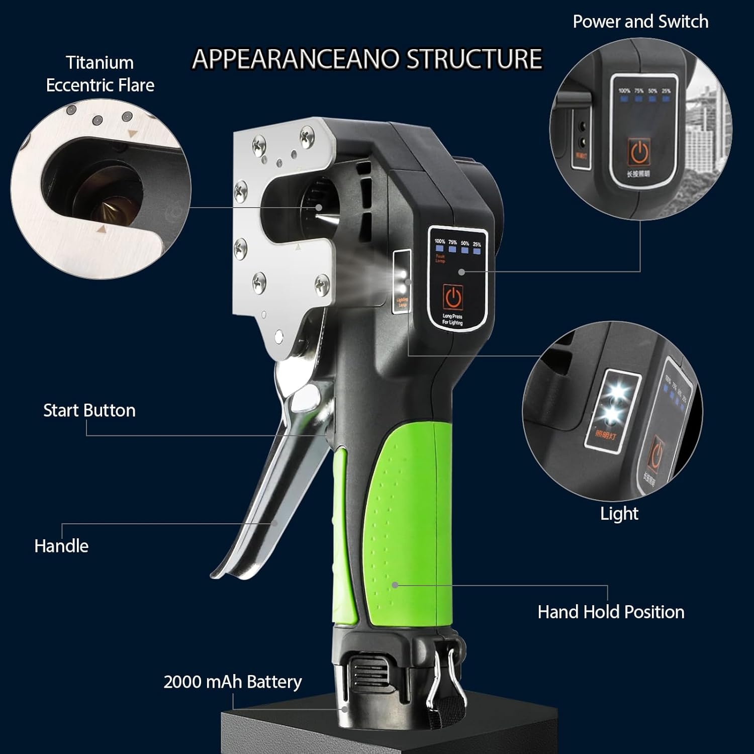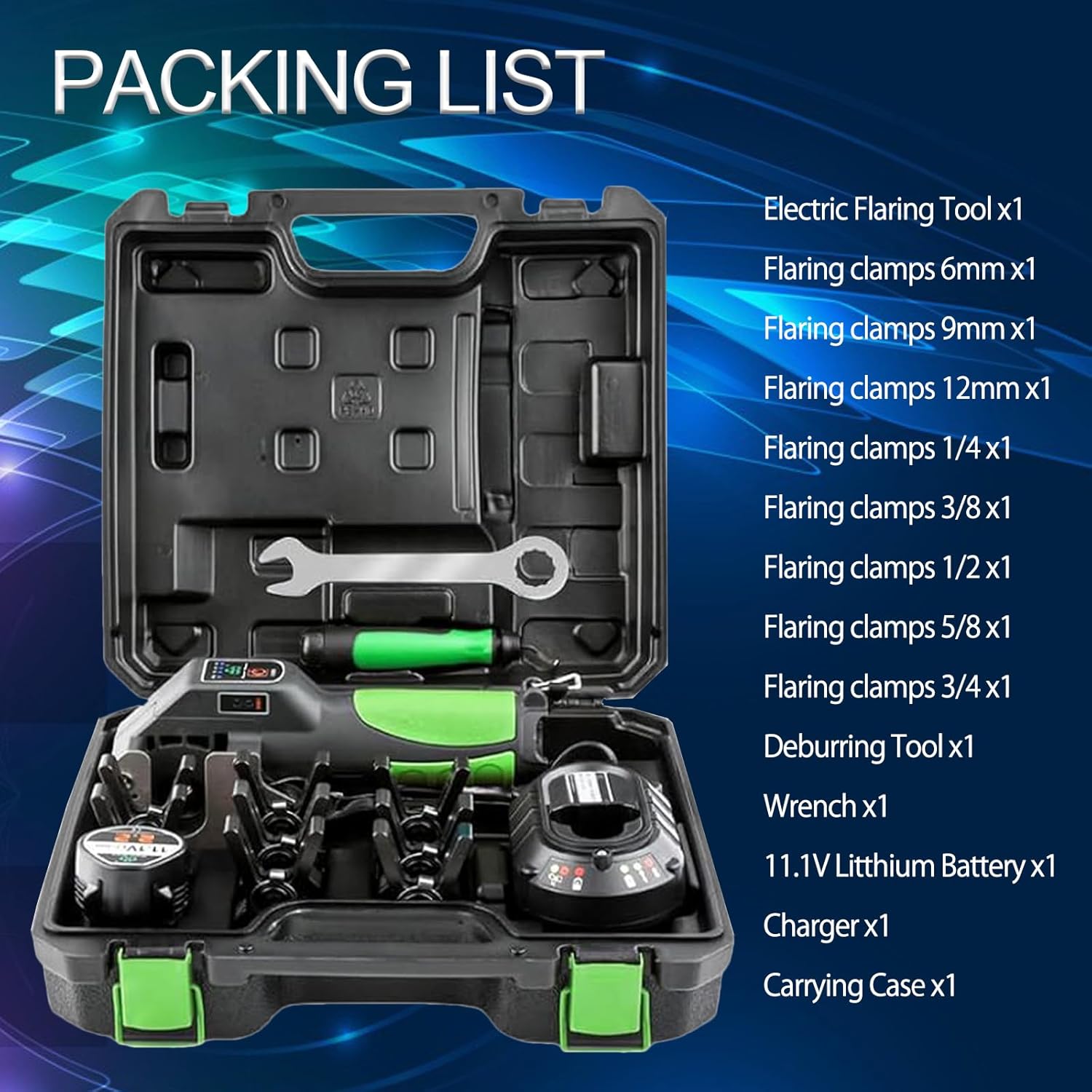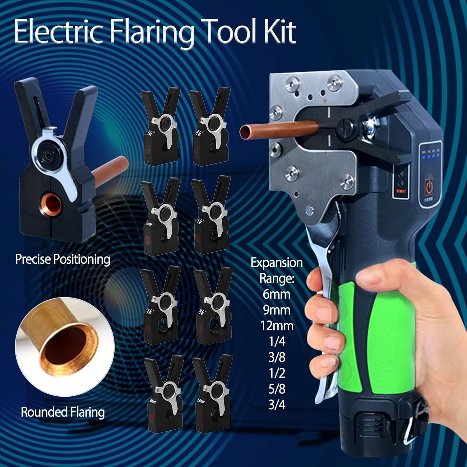 YCKJXSMA Cartellatrice Elettrica per Condizionamento, Tubo Eccentrico a 45°, Attrezzo Professionale, 8 Misure Morsetti e Batteria da 2200 mAh con Grande capacità per Tubi in Alluminio in Ottone
