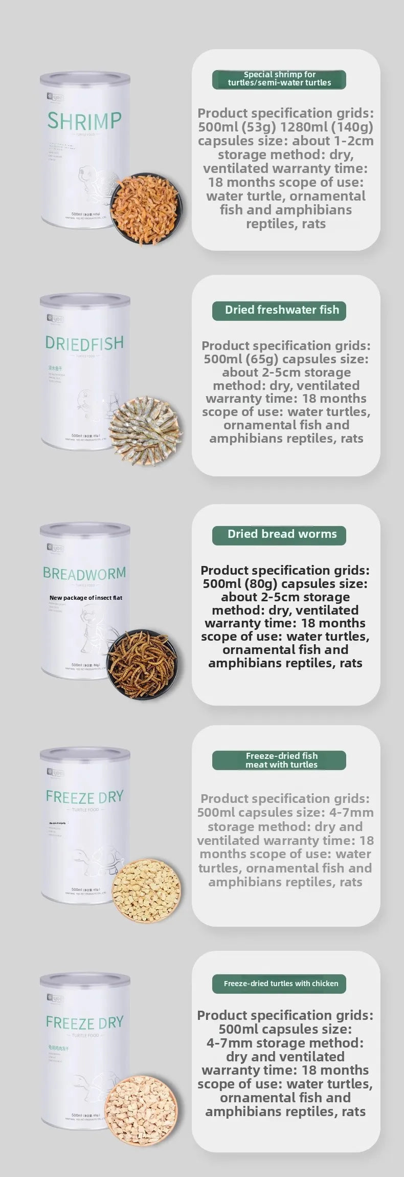 SPECIFICATIONSBrand Name: NoEnName_NullHign-concerned Chemical: NoneOrigin: Mainland China YEE Turtle Food 1.5/3/5.5mm High Protein Floating Pallets for Alligator Snapper,Red-Eared Slider&Aquatic Turtles... Per saperne di più